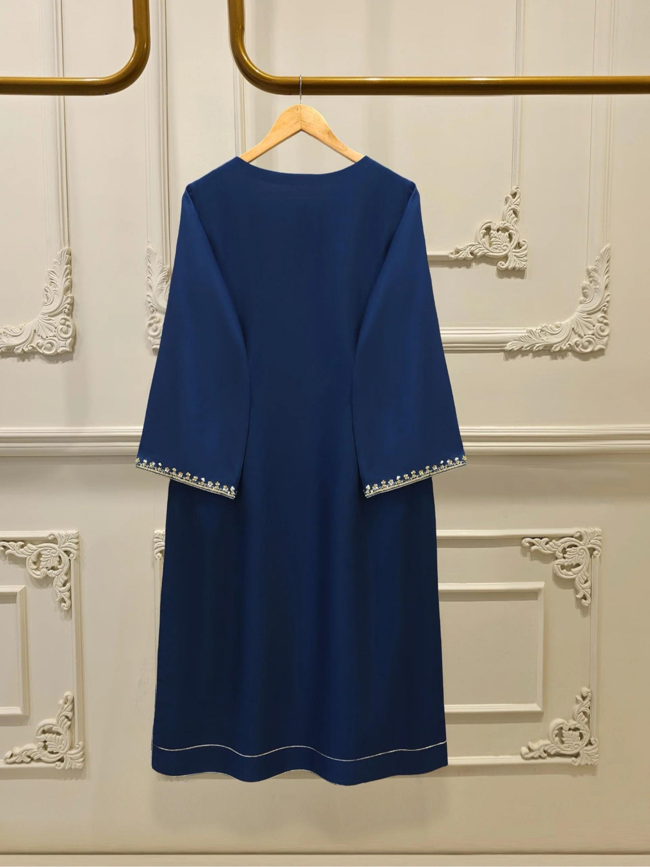 Dry clean recommended. Iron the clothes at moderate temperature. Do not use any type of bleach or stain removing chemicals