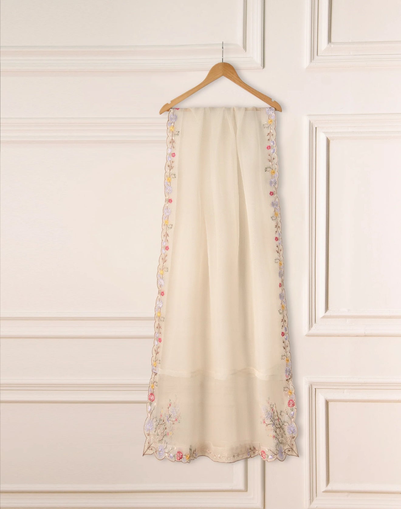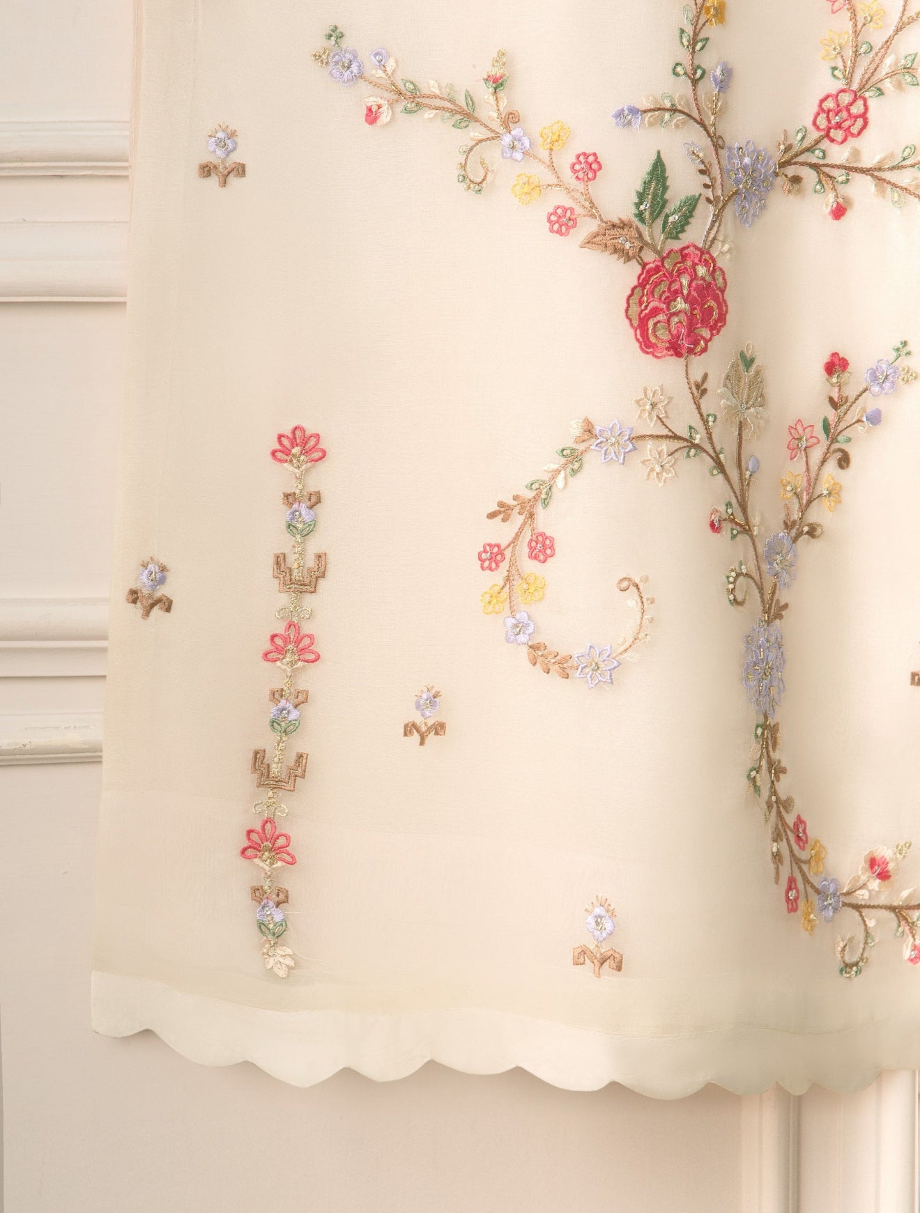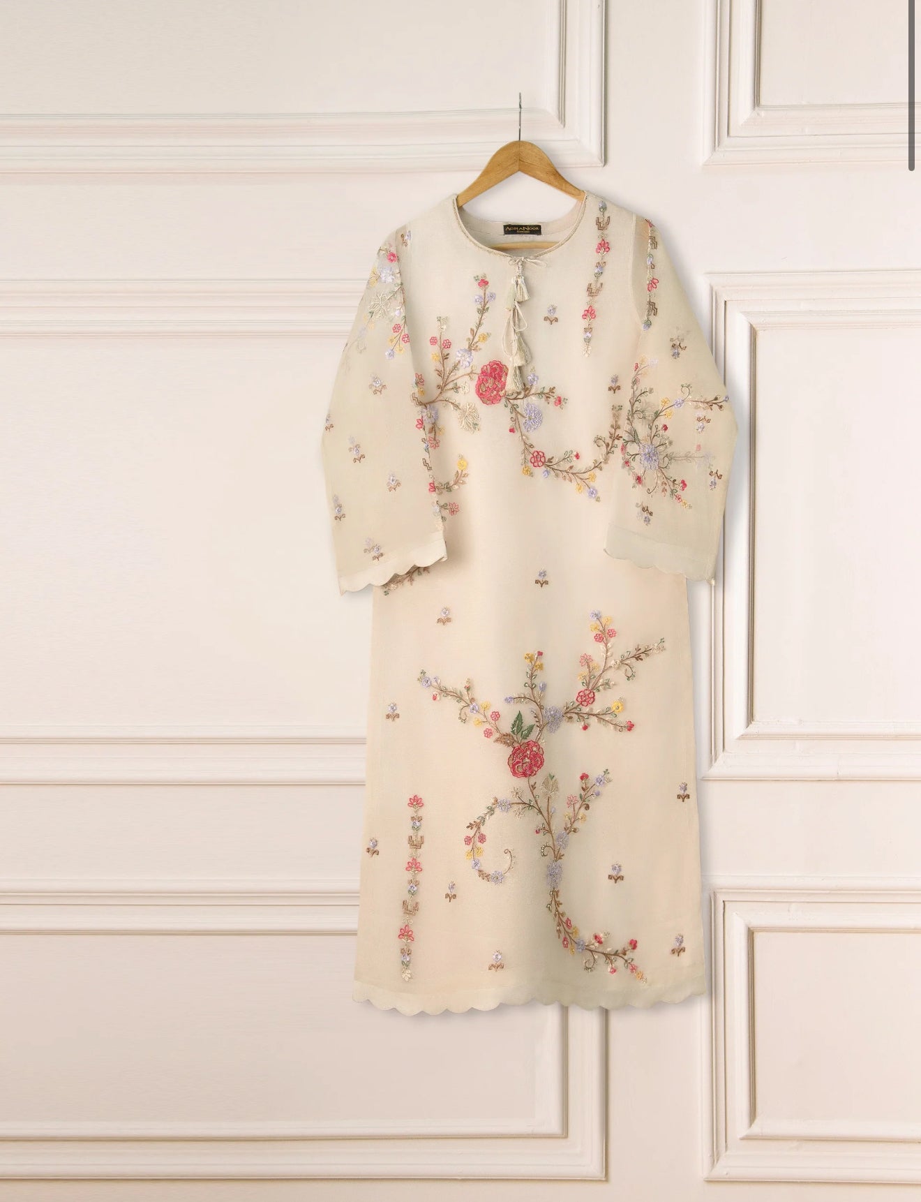 Shirt:Organza Embroidered (Attached Lining )**No sleeves lining **