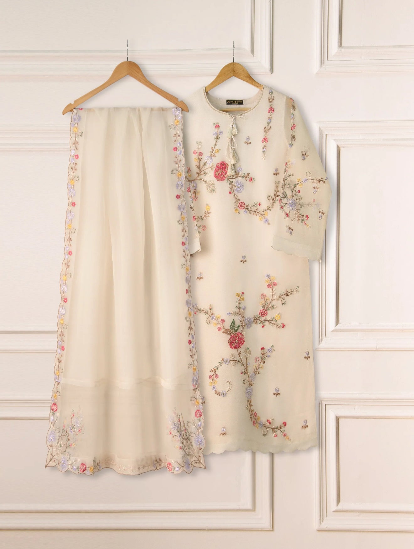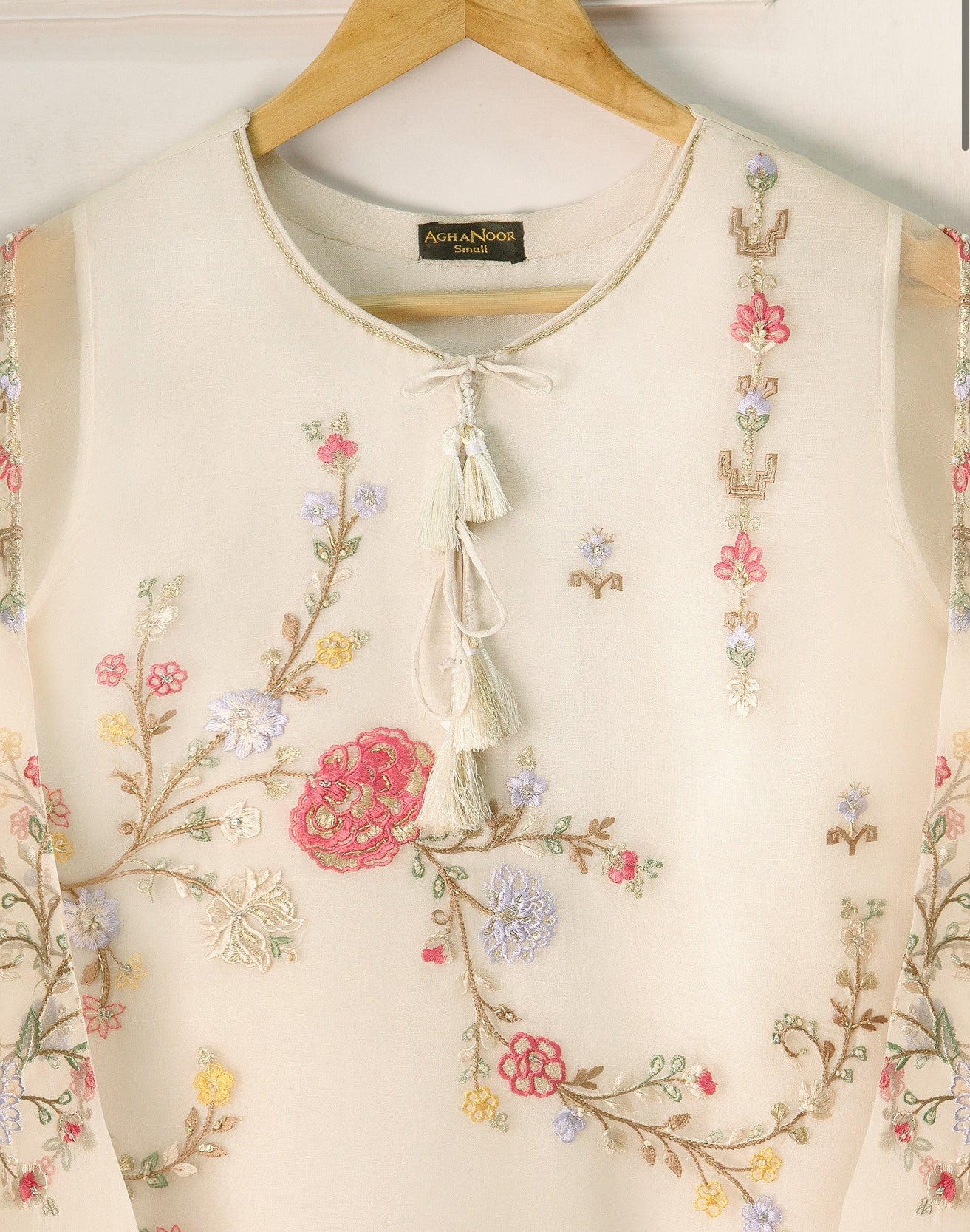 Agha Noor 3 Piece - Pure Organza Embroidered Dress