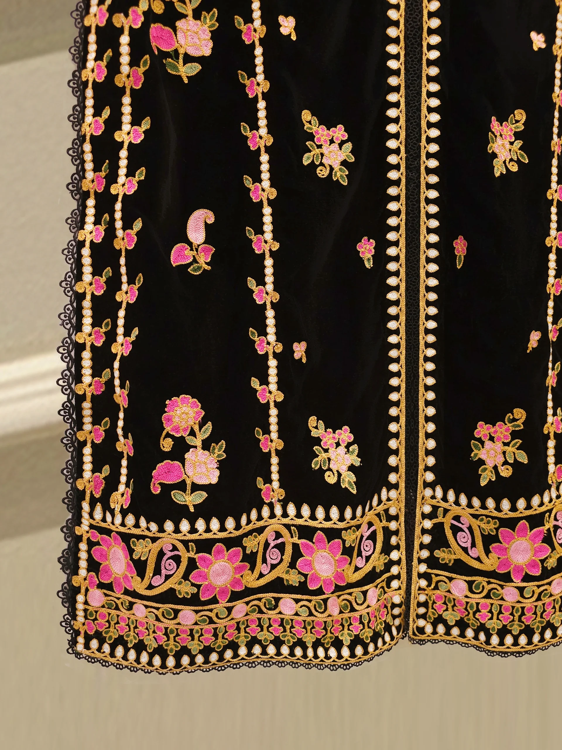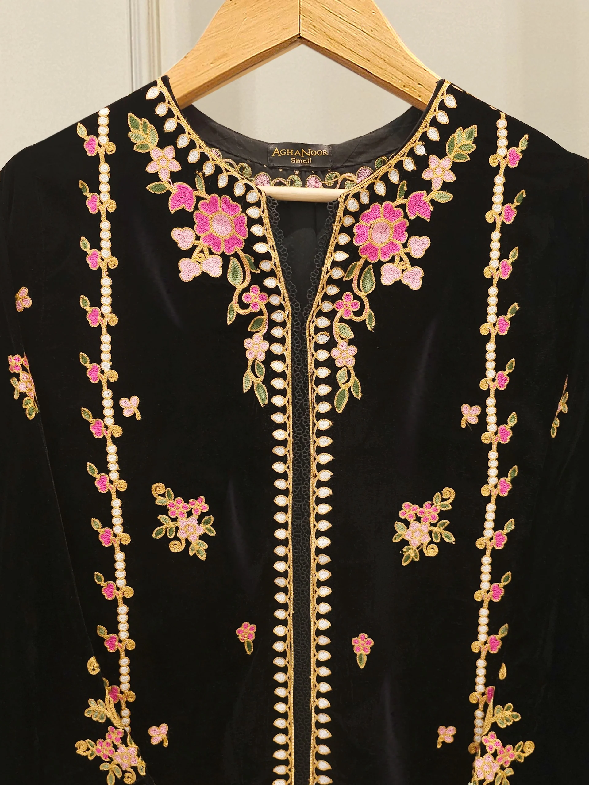 Agha Noor 3 Piece-Velvet Embroidered Suit