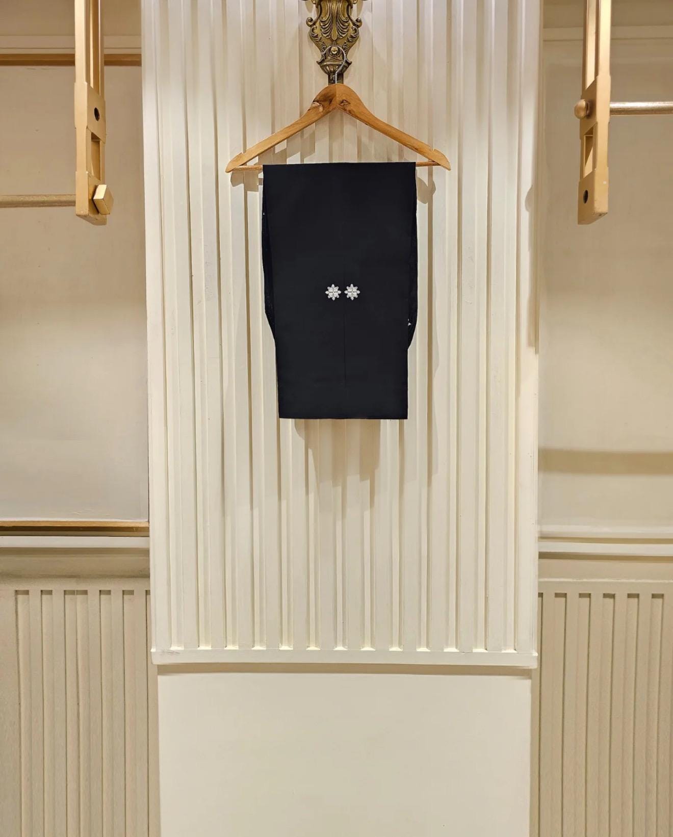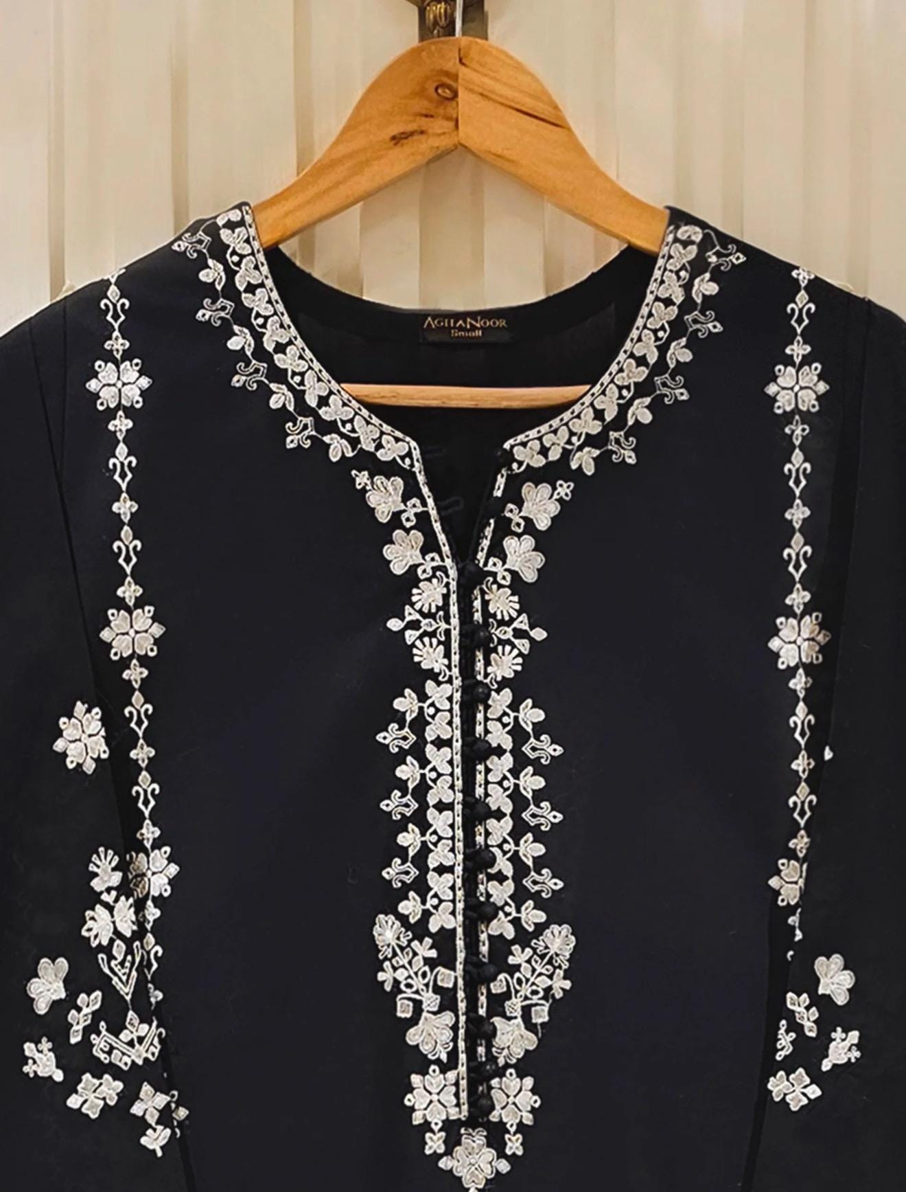 Dry clean recommended. Iron the clothes at moderate temperature. Do not use any type of bleach or stain removing chemicals