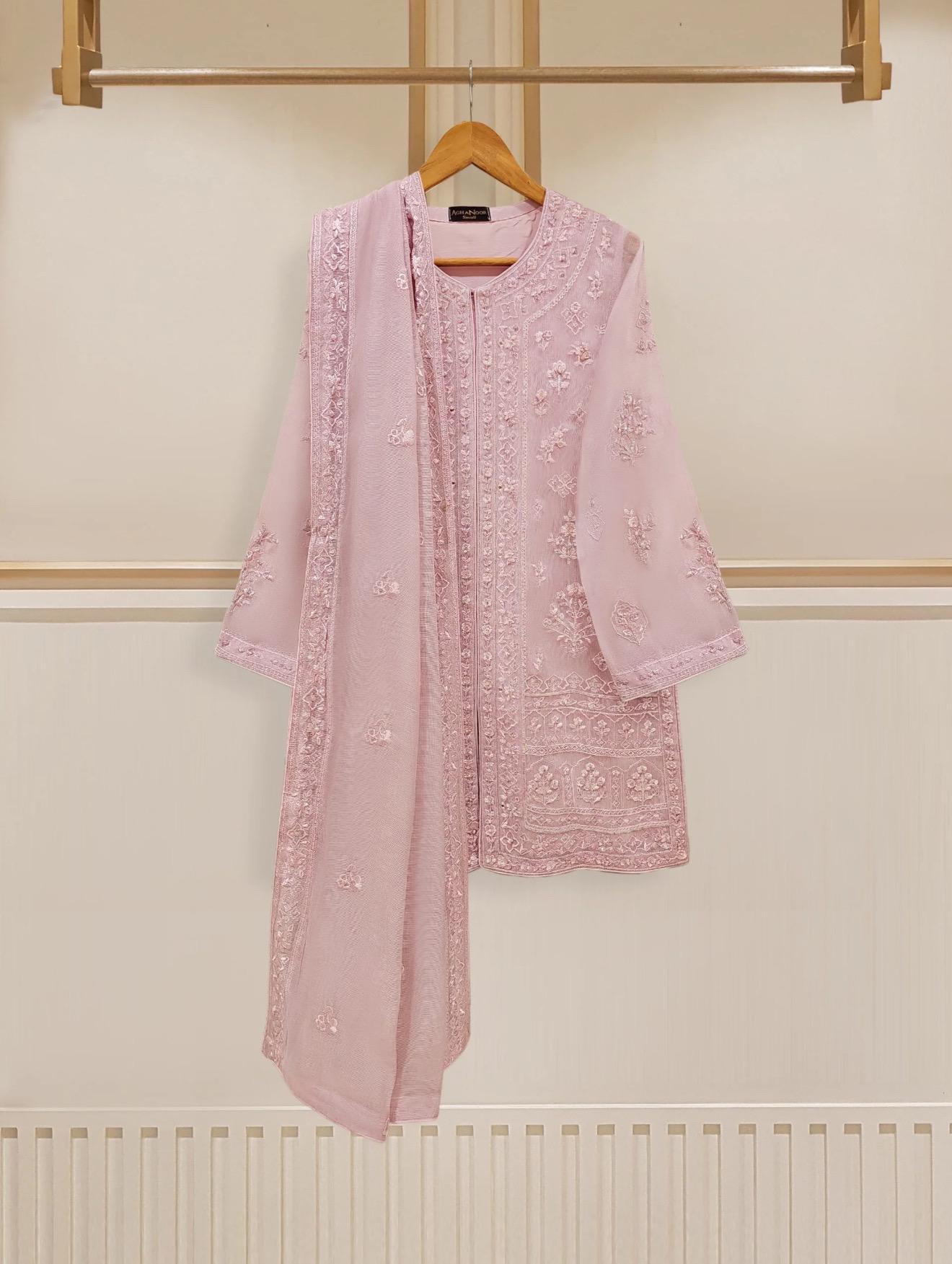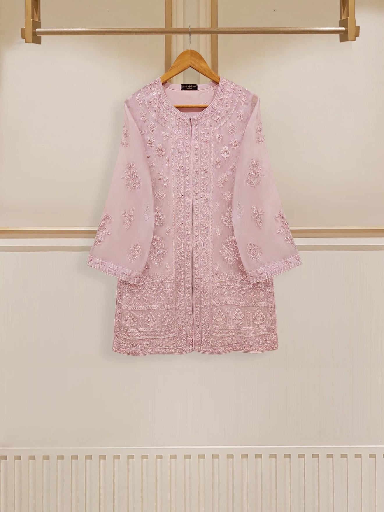Shirt:Pure Cotton Net Embroidered (Attached Lining )**No sleeves lining **