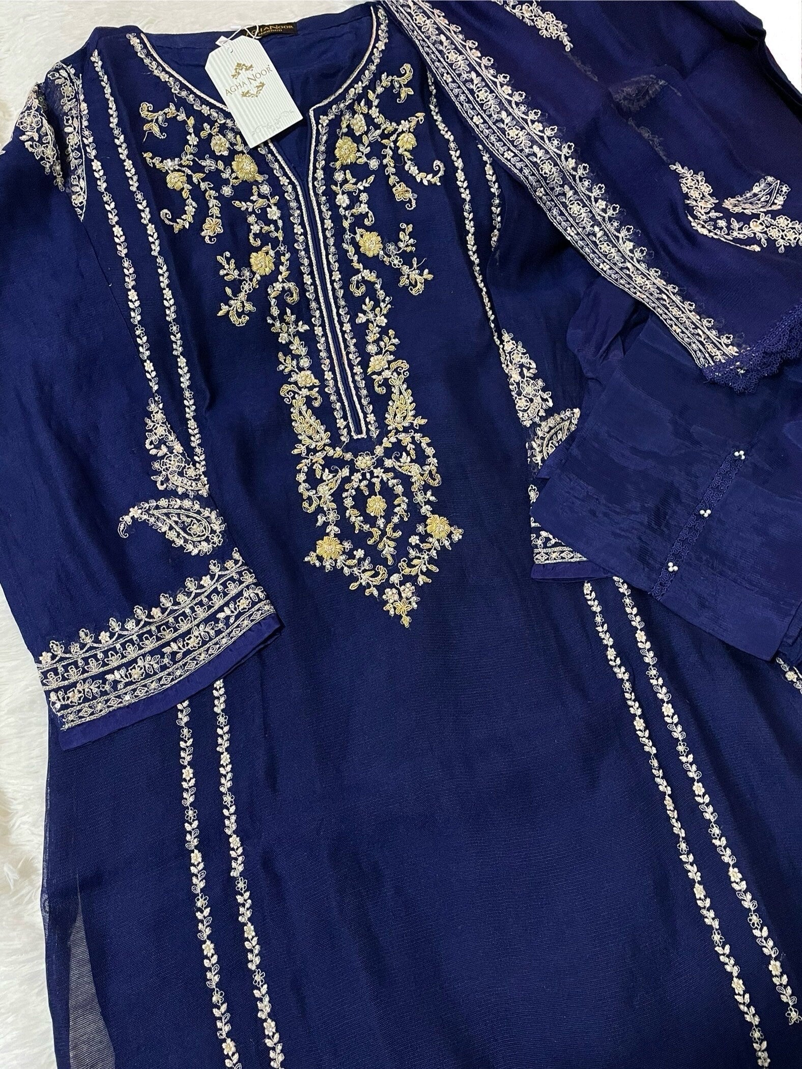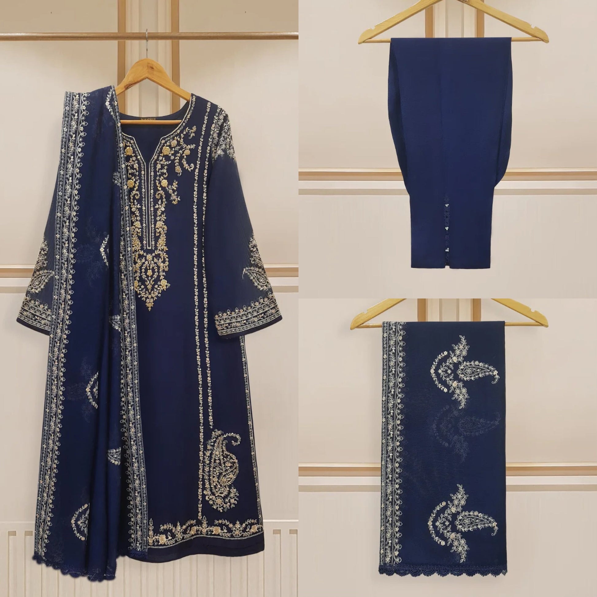 Agha Noor 3 Piece -Pure Cotton Net Embroidered
