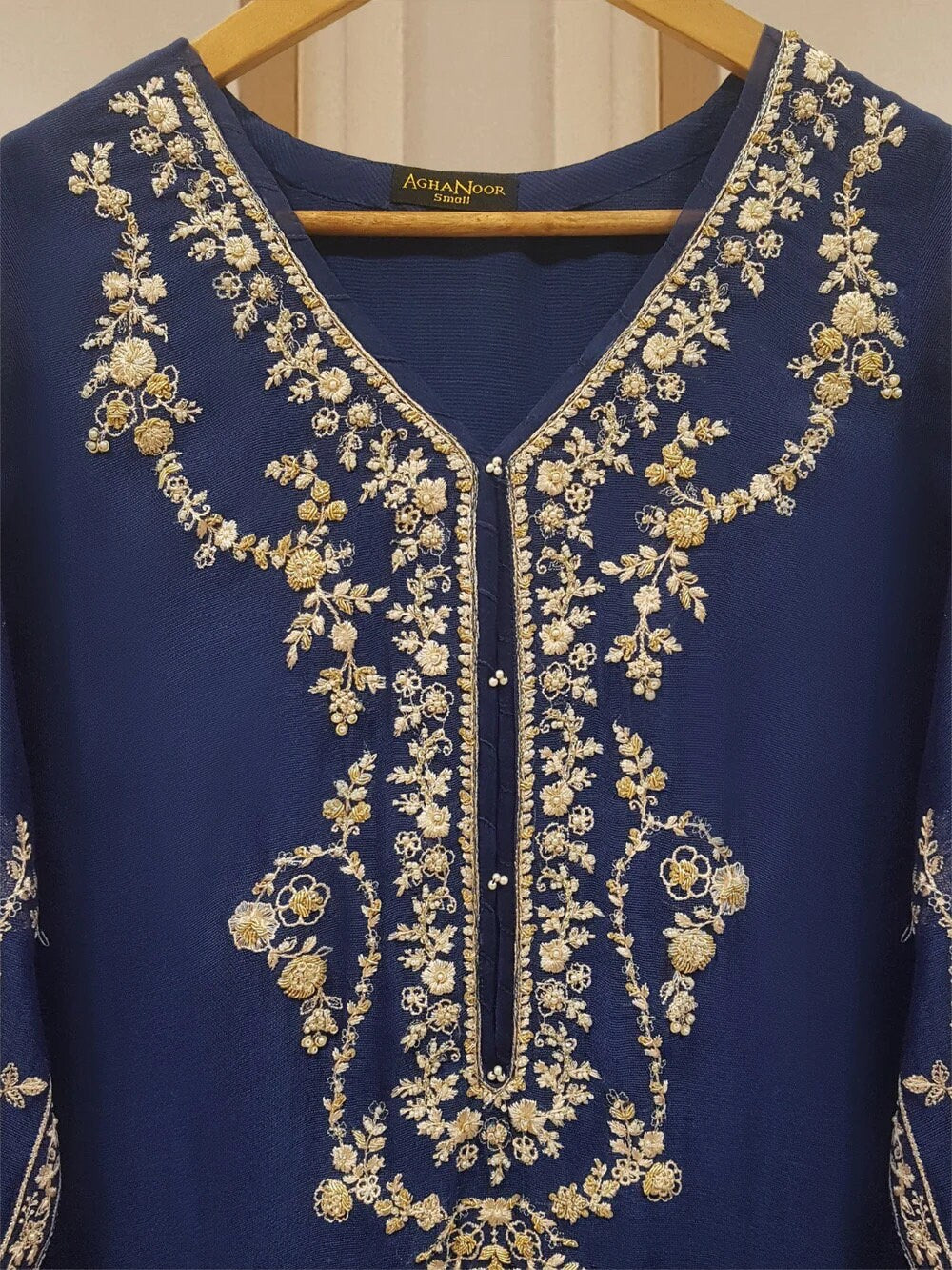 Dry clean recommended. Iron the clothes at moderate temperature. Do not use any type of bleach or stain removing chemicals