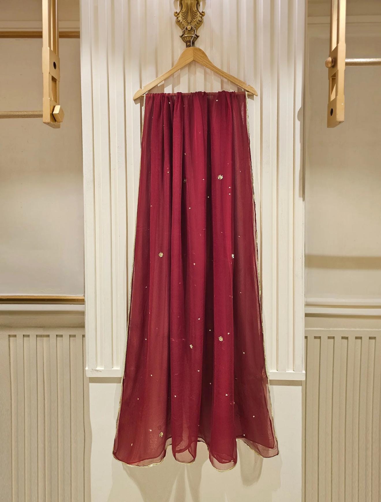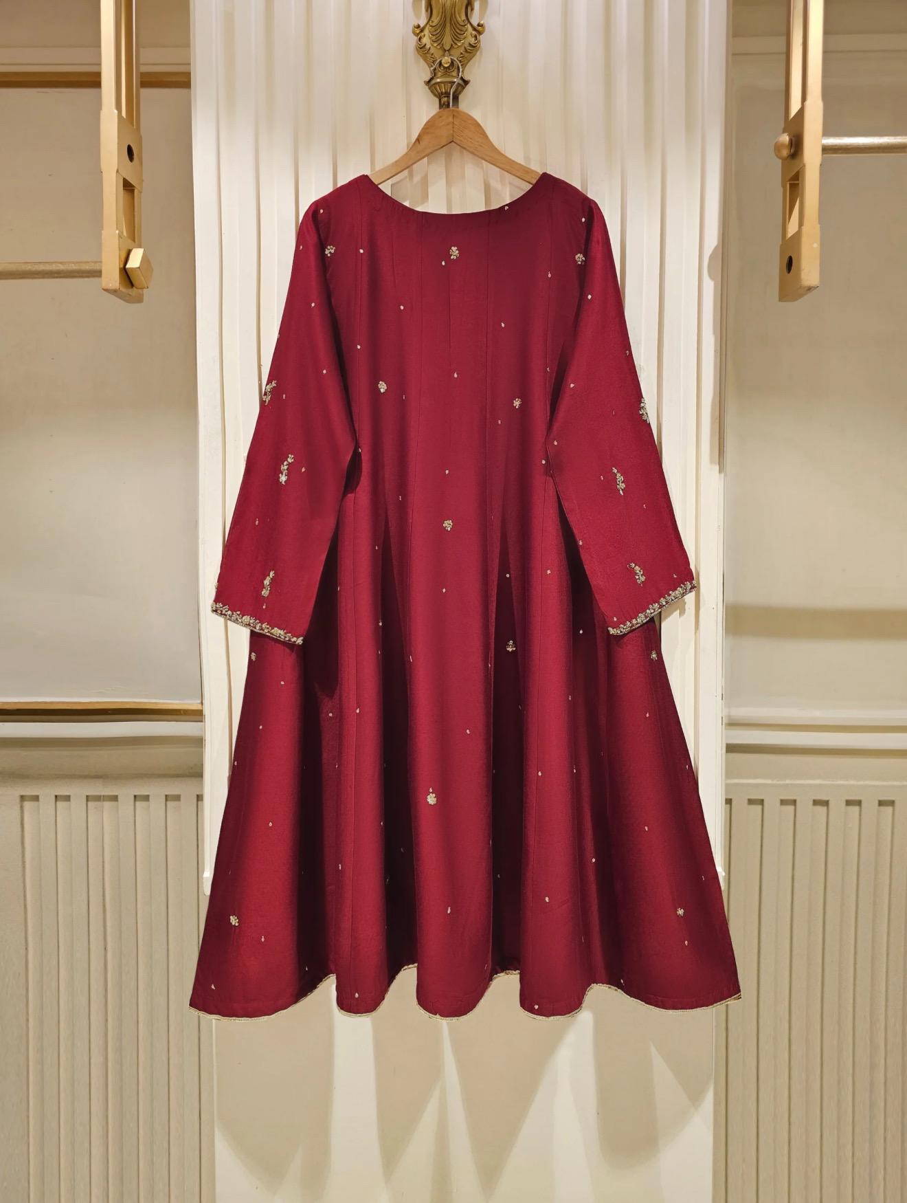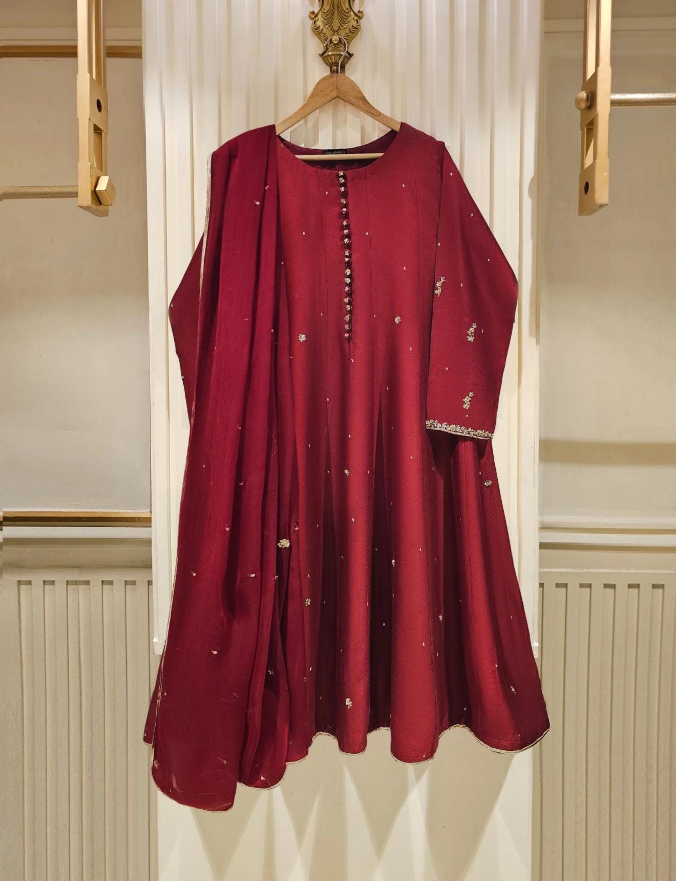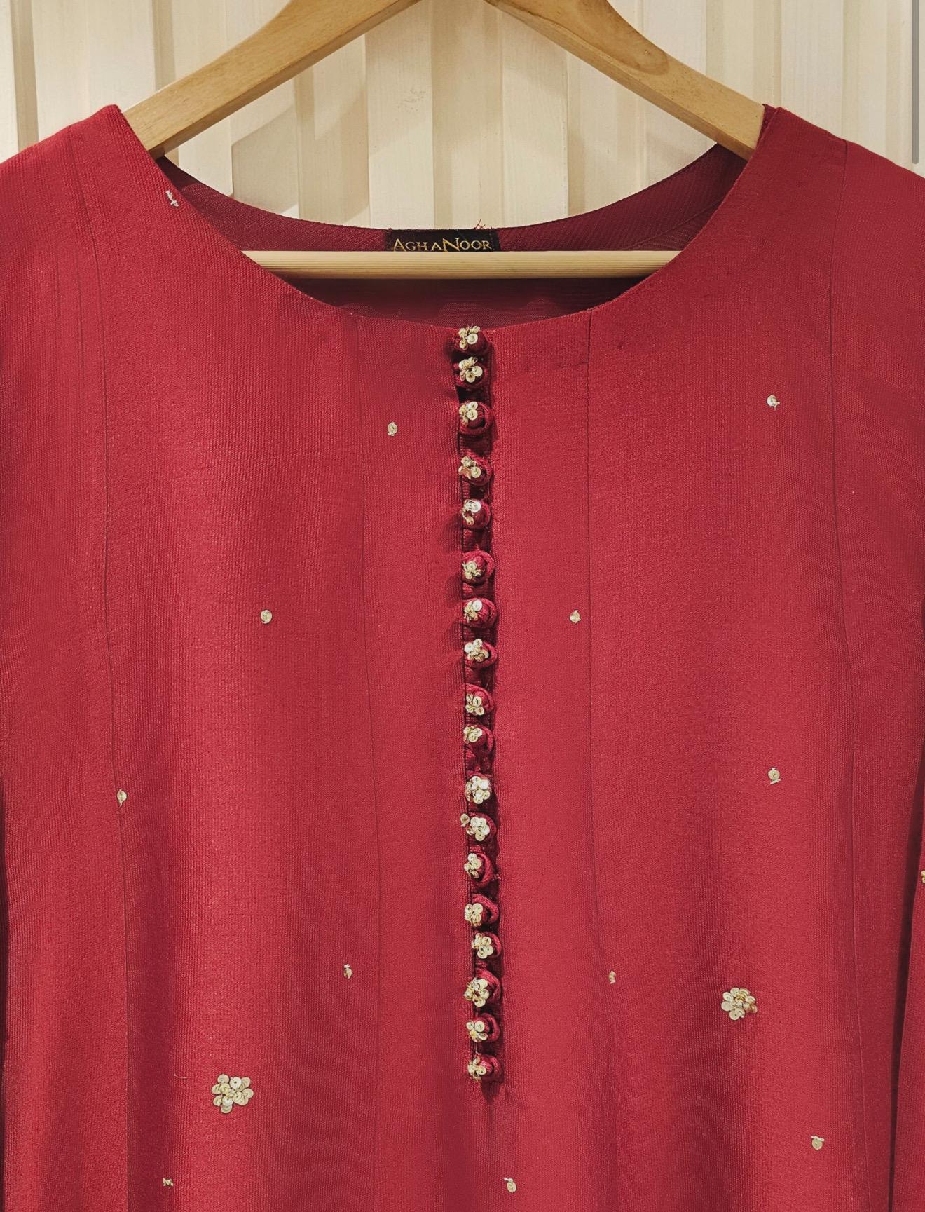 Agha Noor Dress Original 3 Piece Pure Cotton Net Dress Maroon