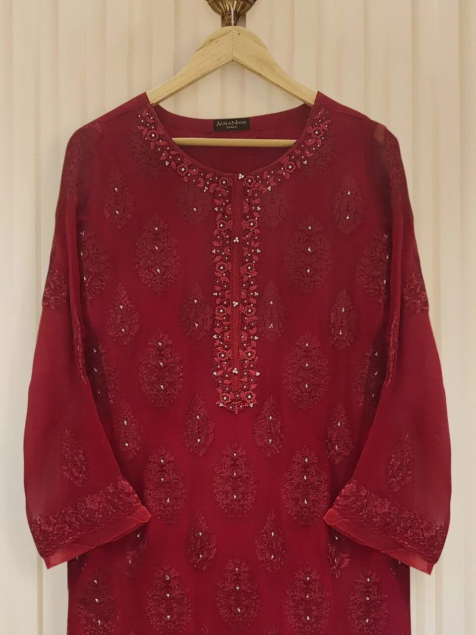 Agha Noor 3 Piece Chiffon Embroidered Dress