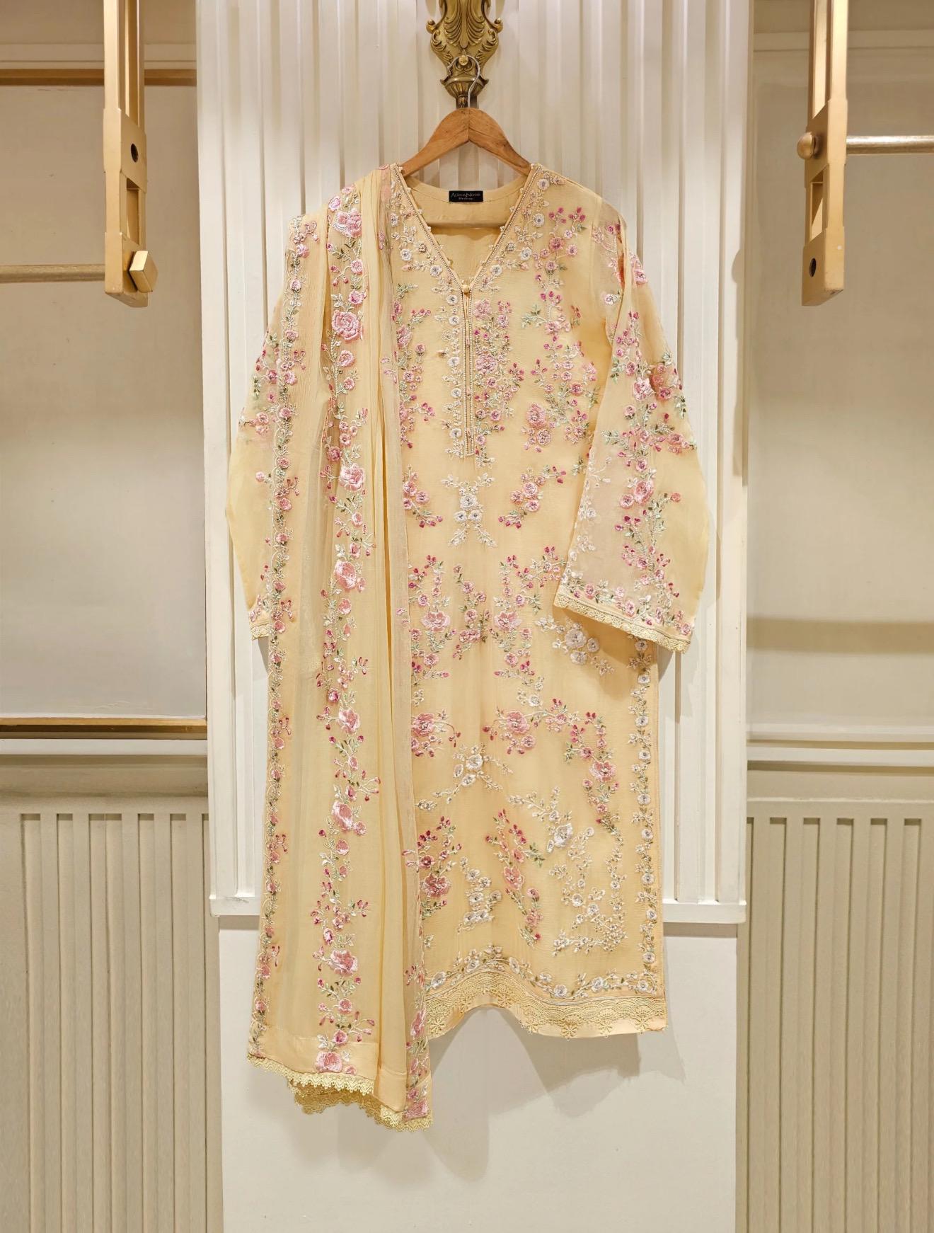 Agha Noor Dress Original Pure 3 Piece Chiffon Embroidered