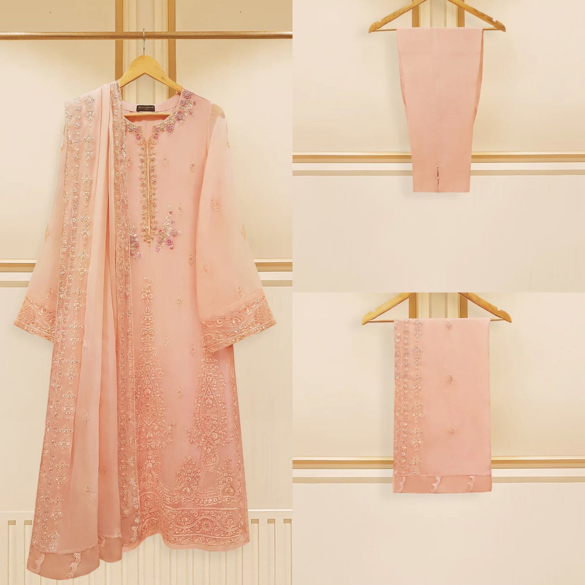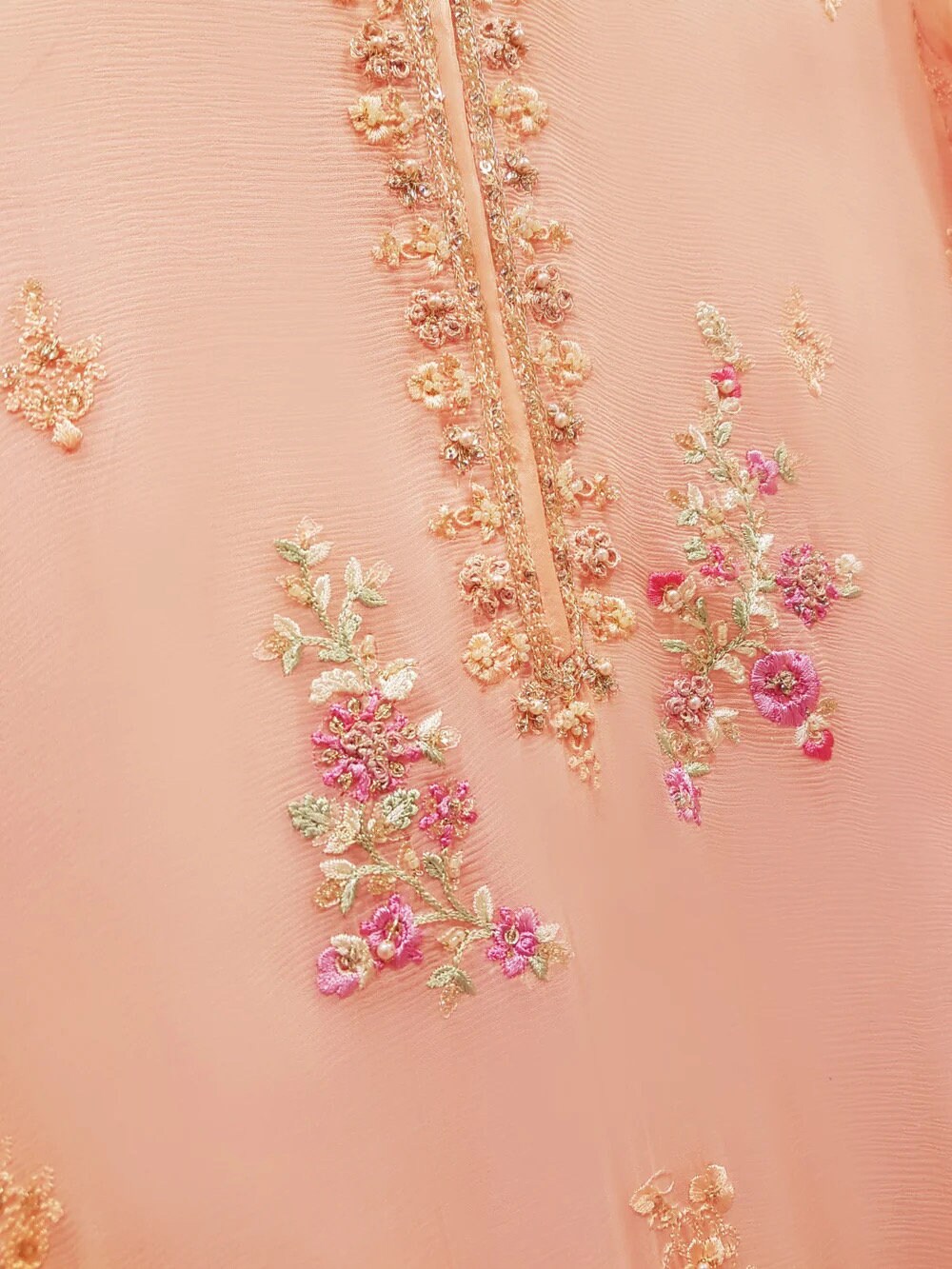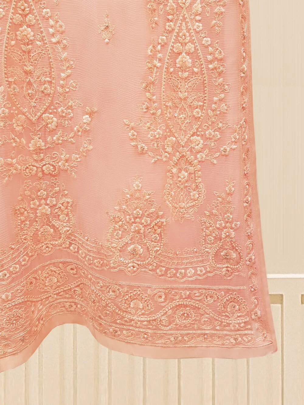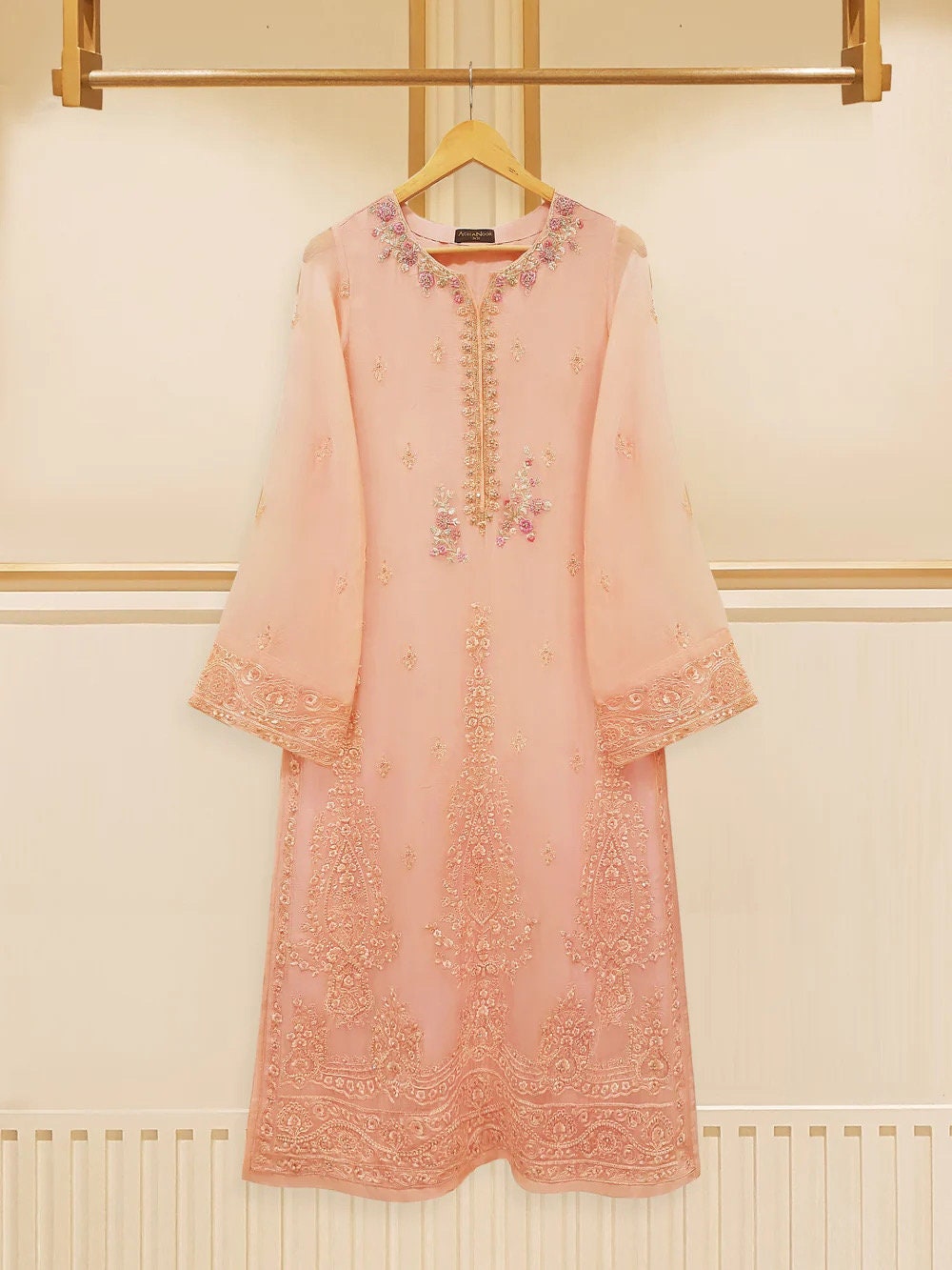 Shirt:Pure Chiffon Embroidered Dabka & Sequins Work (Attached Lining )**No sleeves lining **