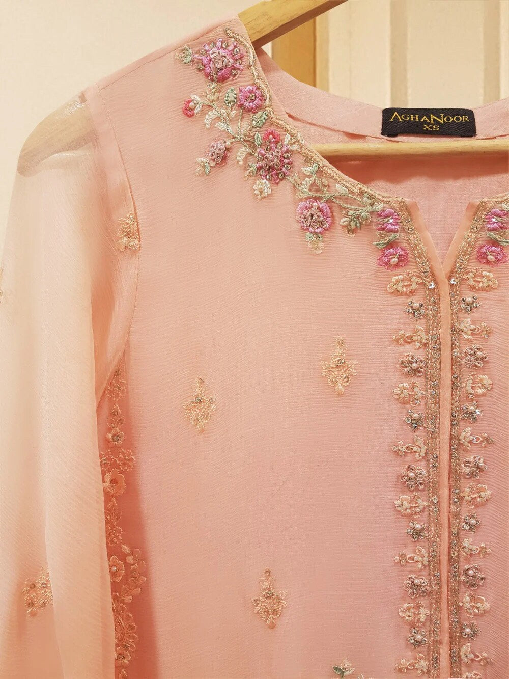 Agha Noor Original Pure 3 Piece Chiffon Embroidered Dress