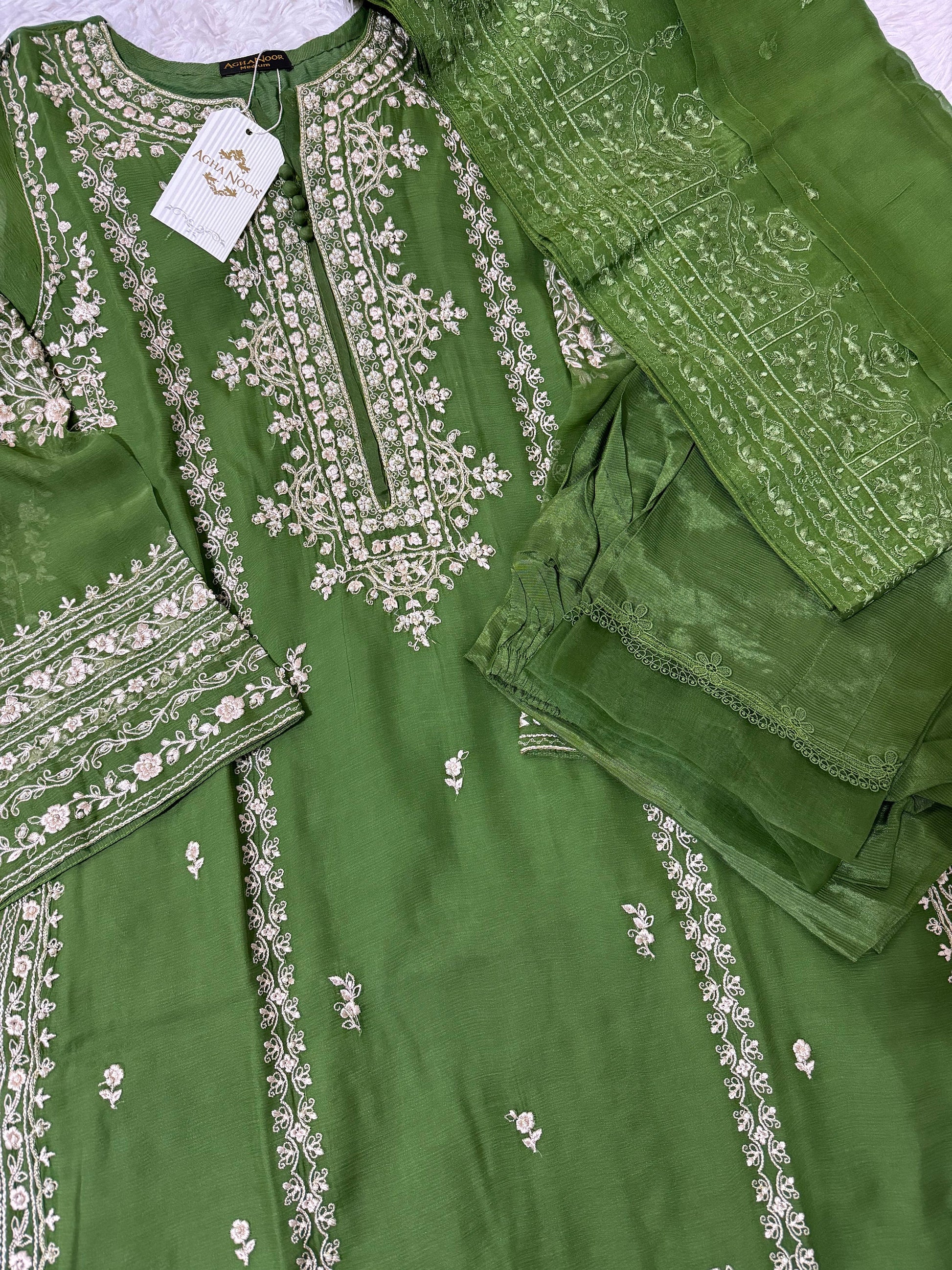 Agha Noor Dress Original Pure 3 Piece Chiffon Embroidered