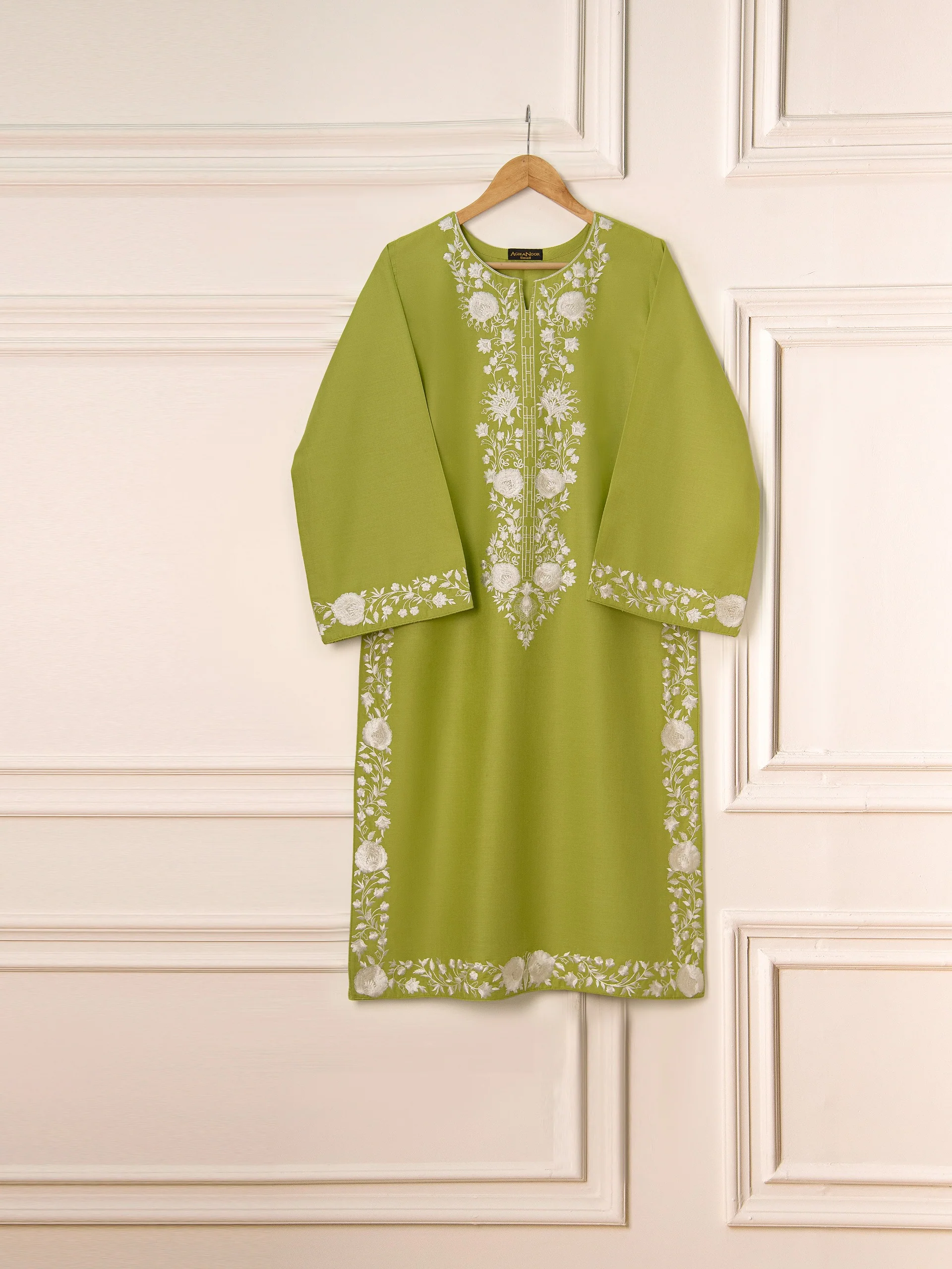 Dry clean recommended. Iron the clothes at moderate temperature. Do not use any type of bleach or stain removing chemicals