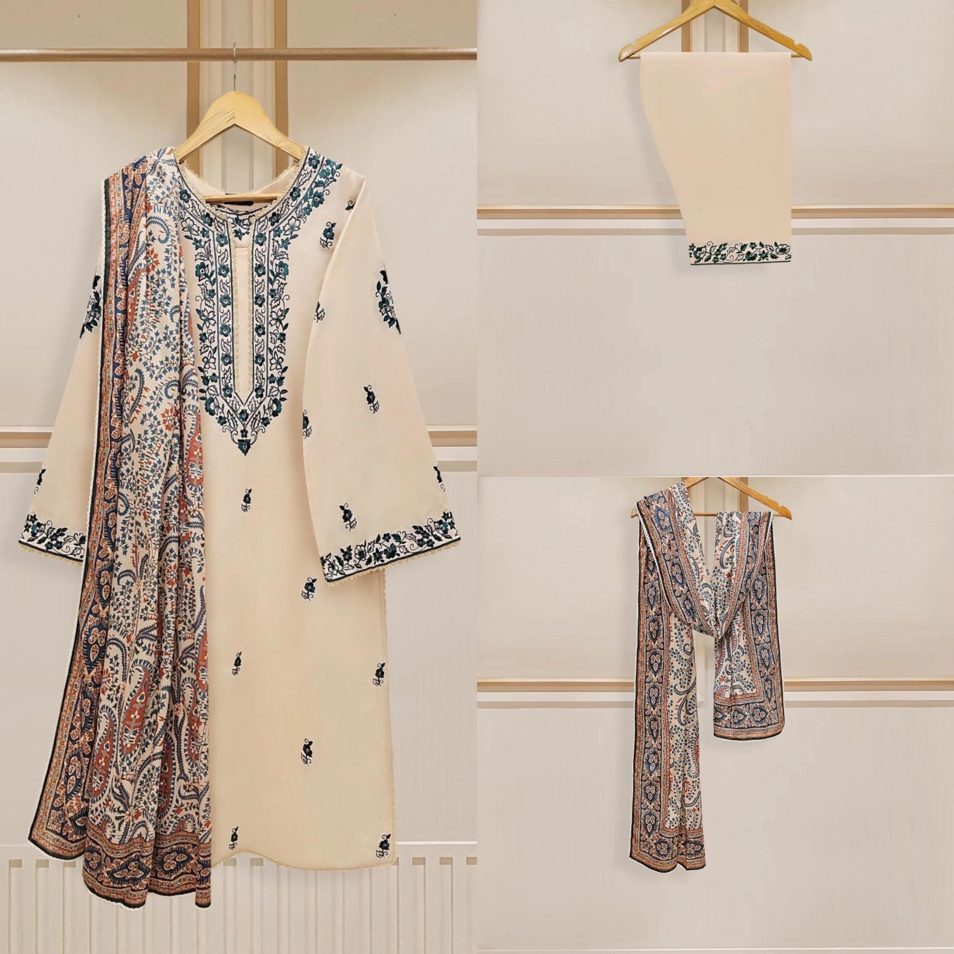 Dry clean recommended. Iron the clothes at moderate temperature. Do not use any type of bleach or stain removing chemicals