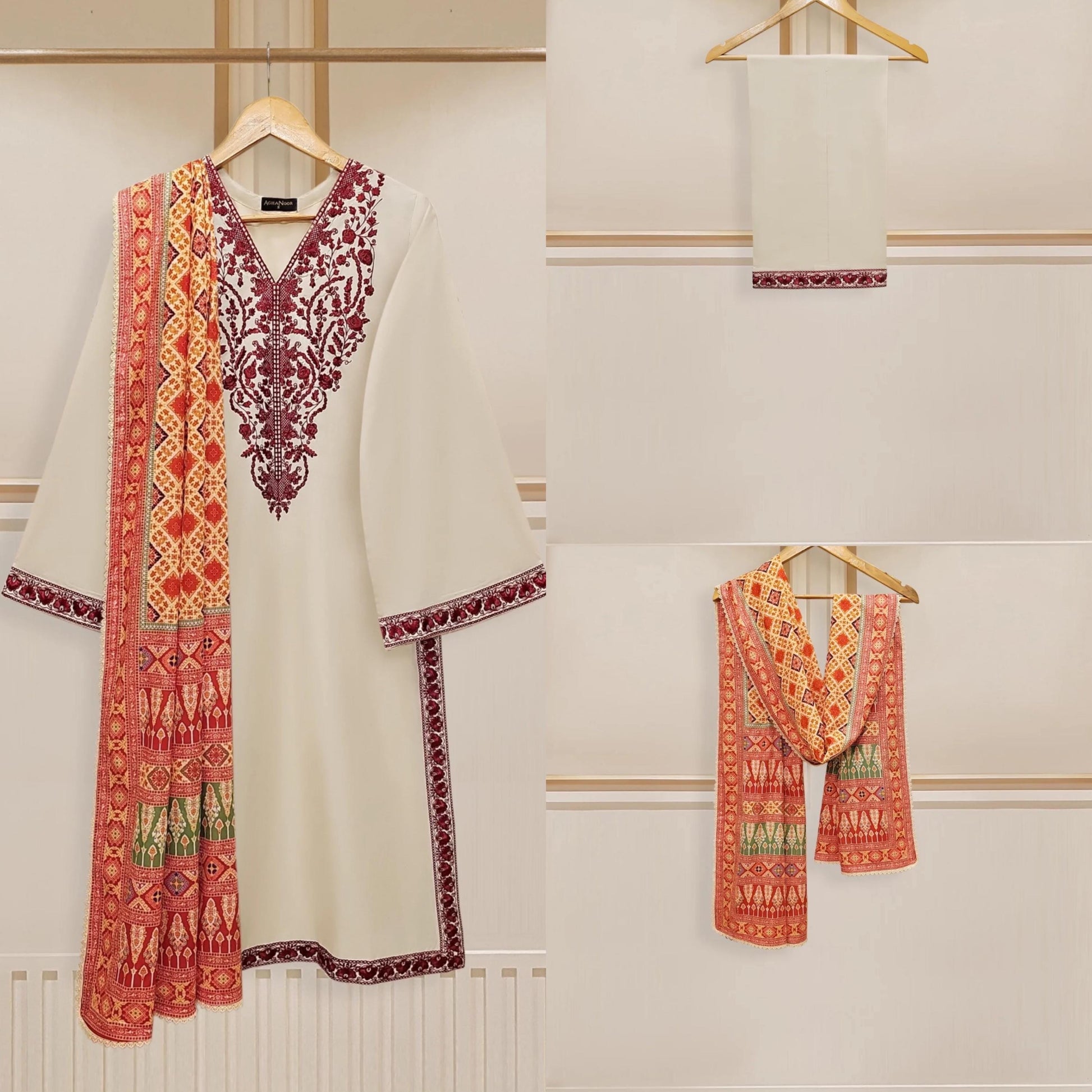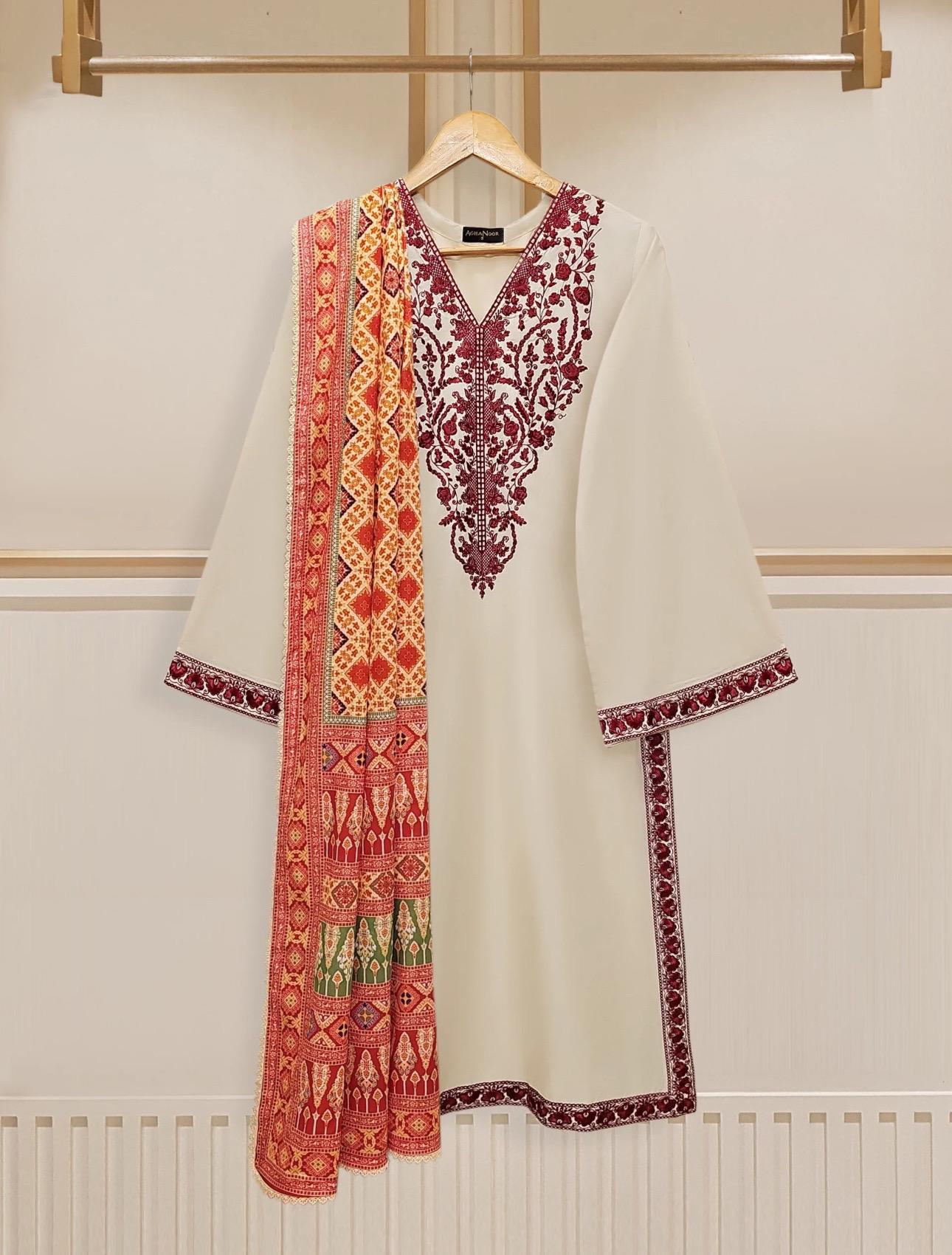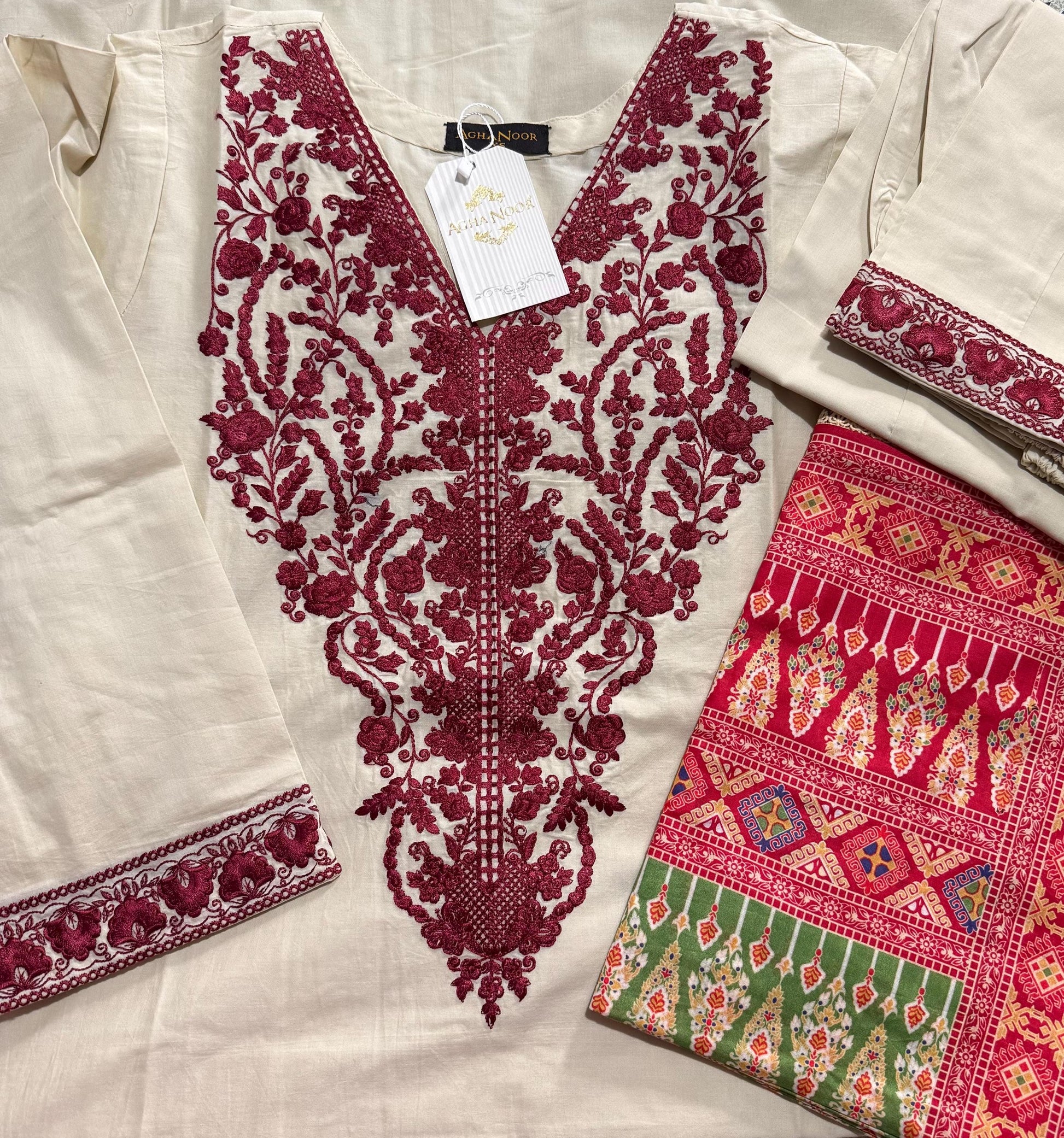 Agha Noor Original 3 Piece Cambric Embroidered Dress
