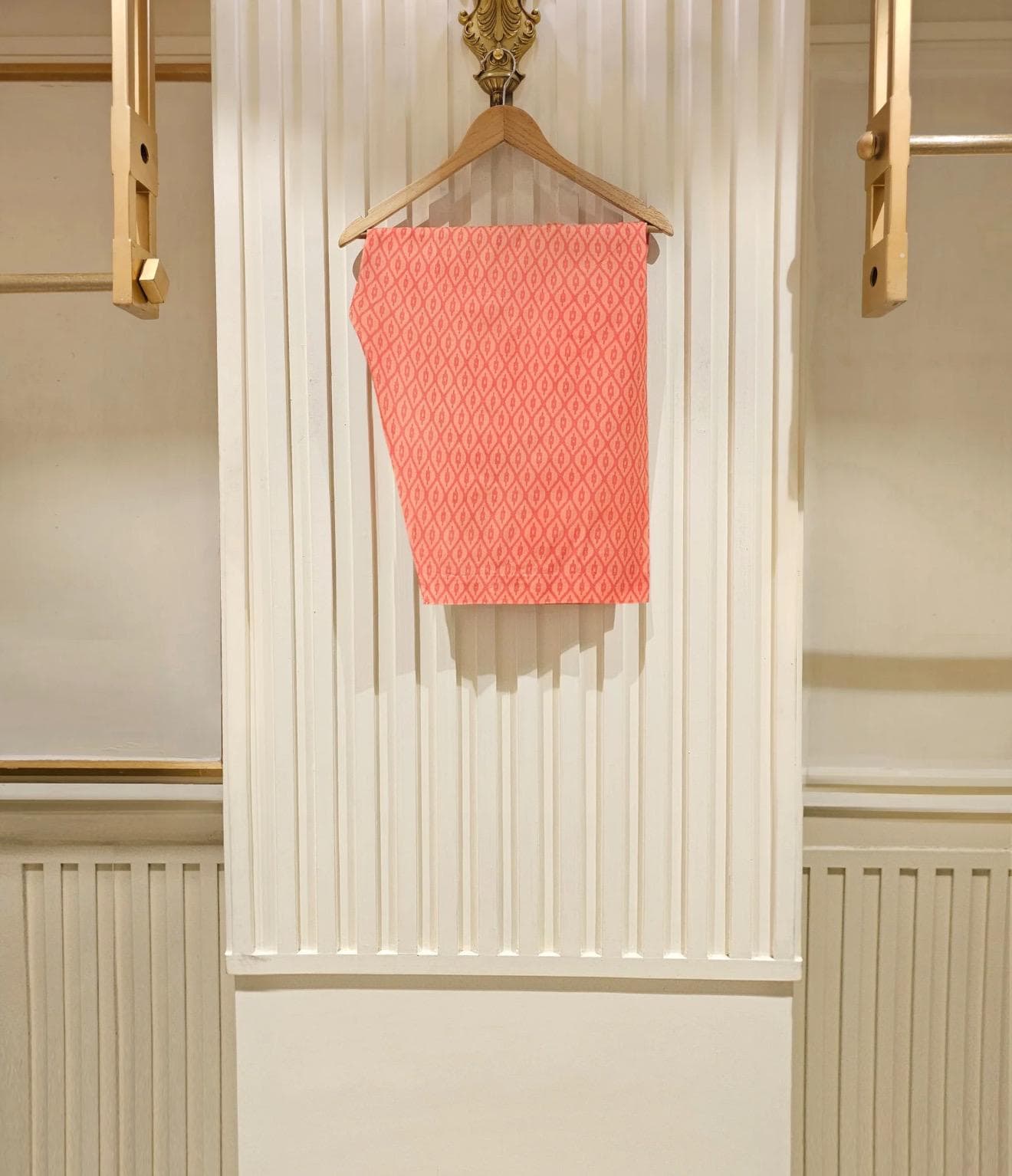 Dry clean recommended. Iron the clothes at moderate temperature. Do not use any type of bleach or stain removing chemicals