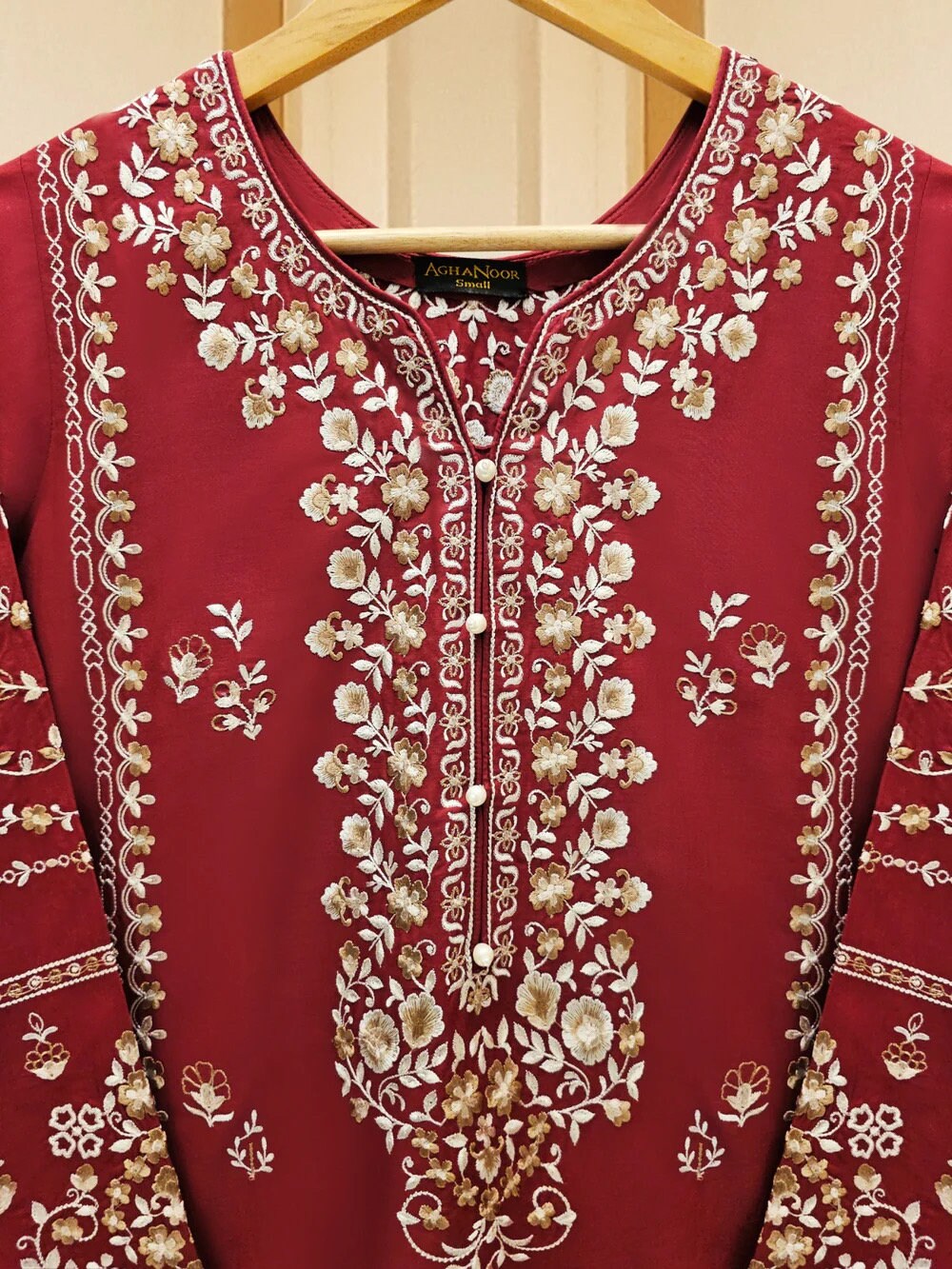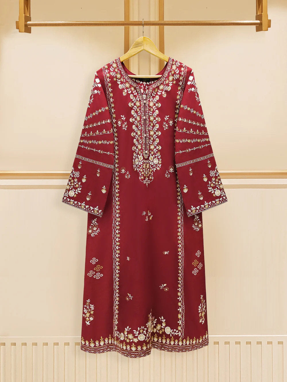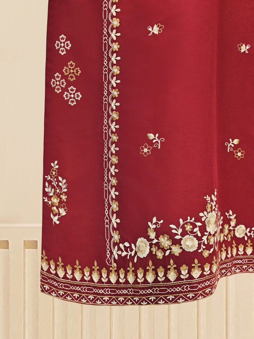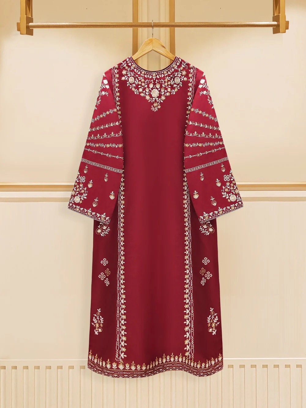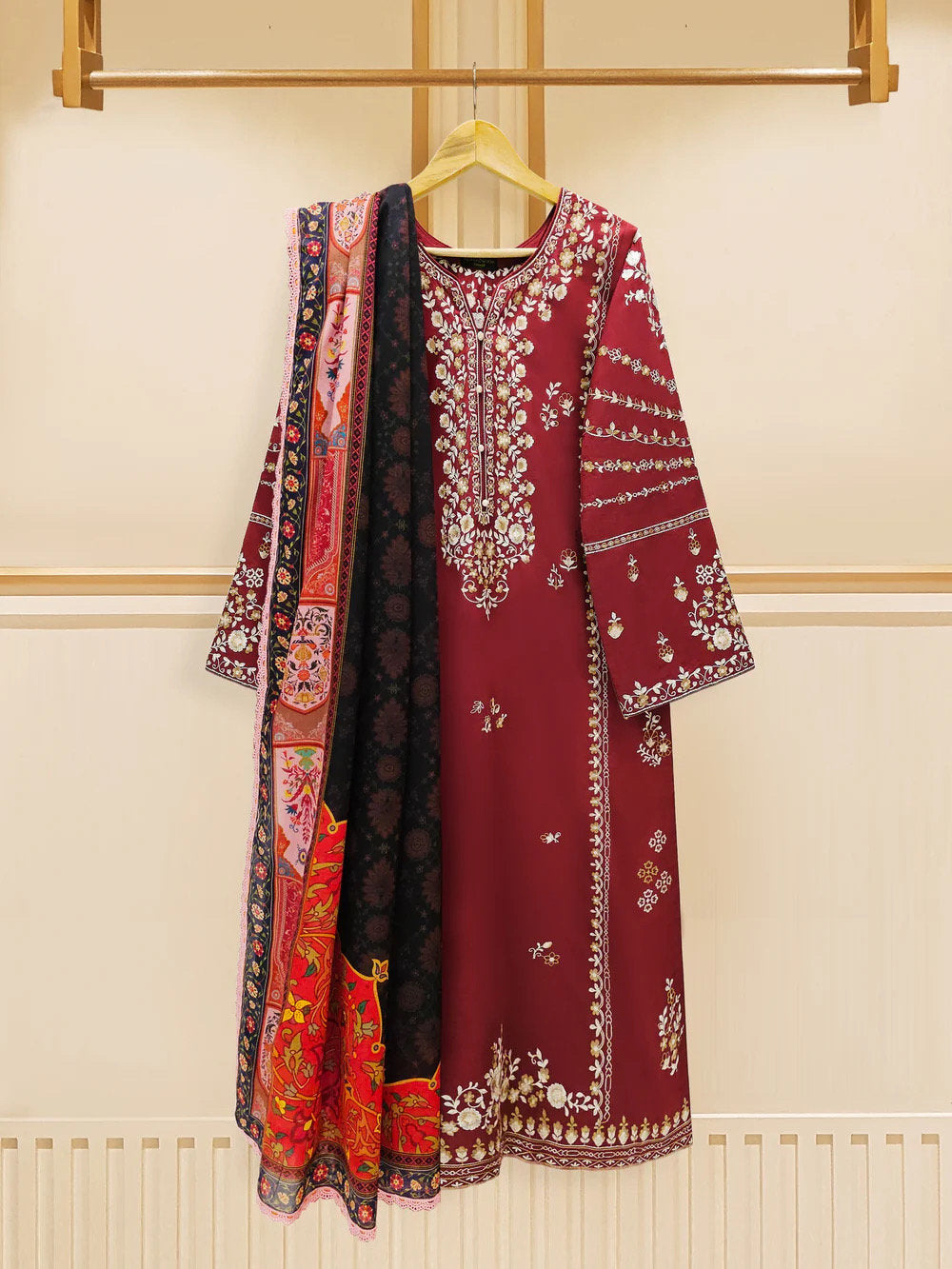 3 Piece Lawn Dress Lawn Fully Embroidered Shirt front & back plain lawn pant and printed lawn dupatta