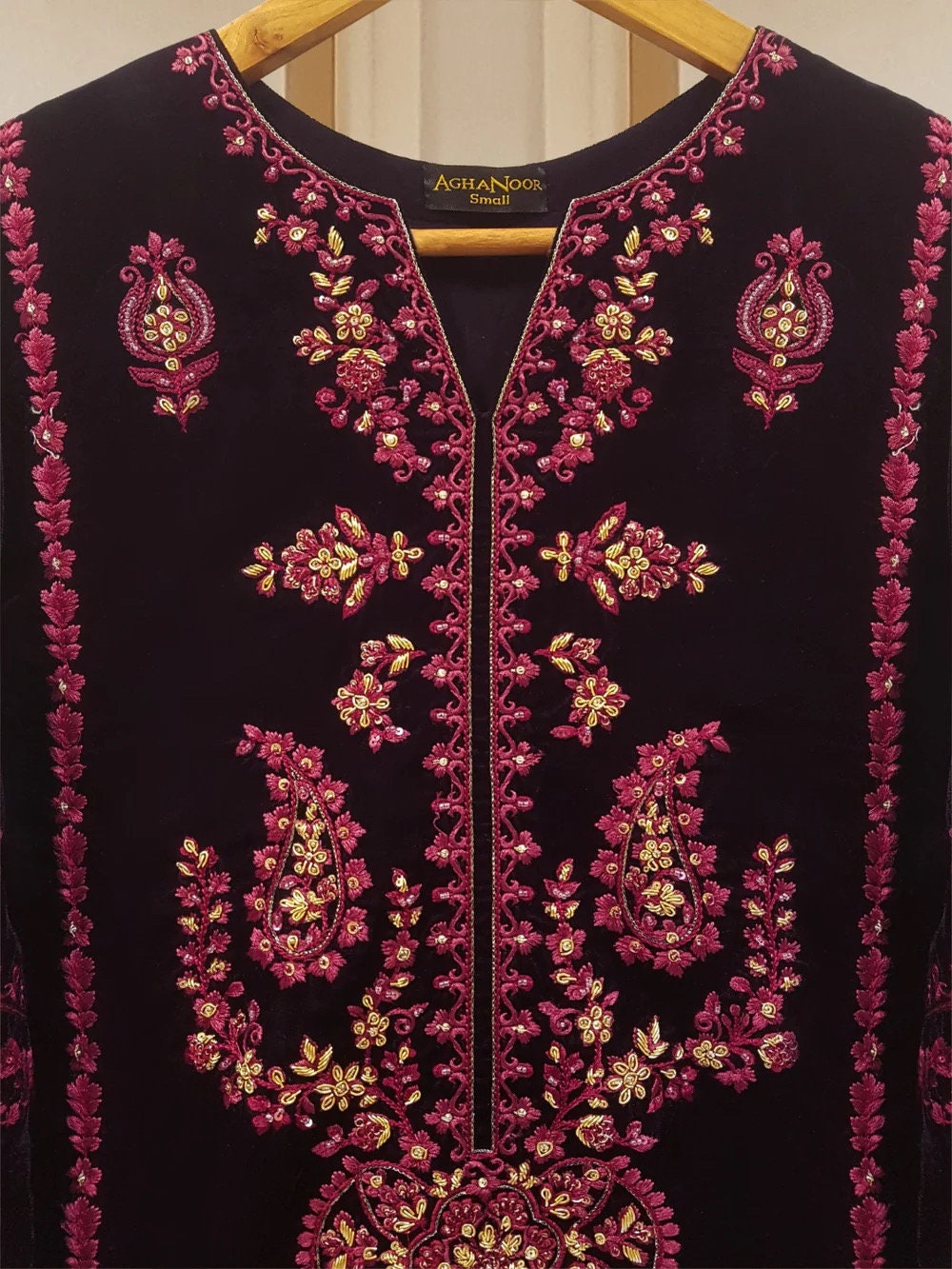 Shirt:Velvet Embroidered With Dabka Pearls and Sequins Work
