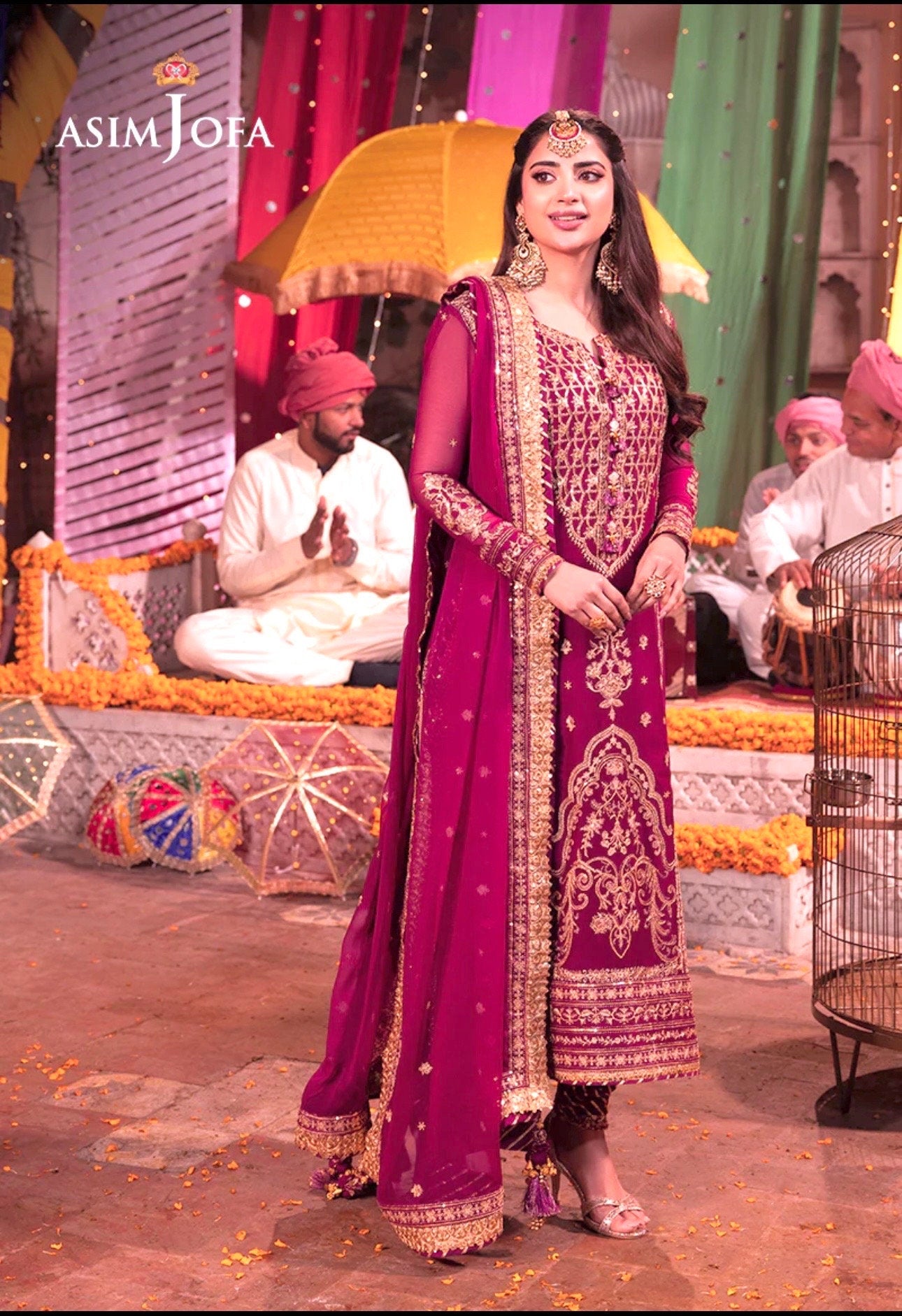 Asim Jofa Original Chiffon Embroidered Chamak Dhamak Collection Pakistani Designer Wear Size Medium