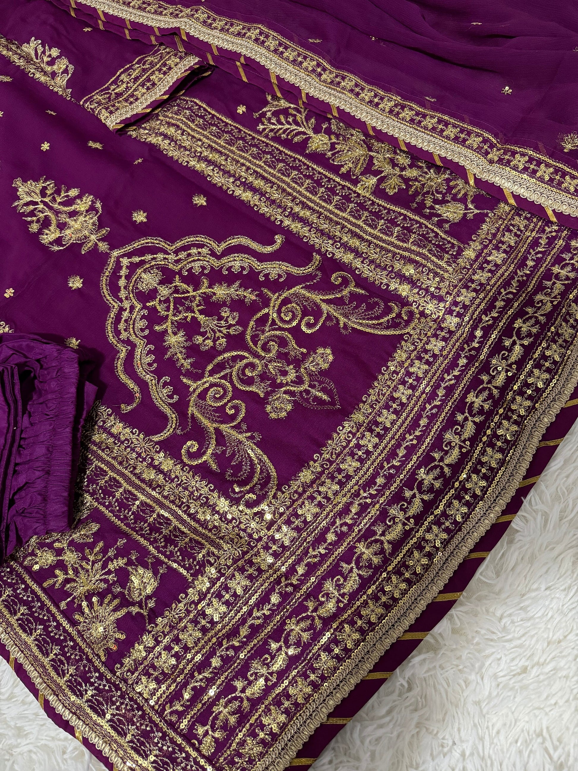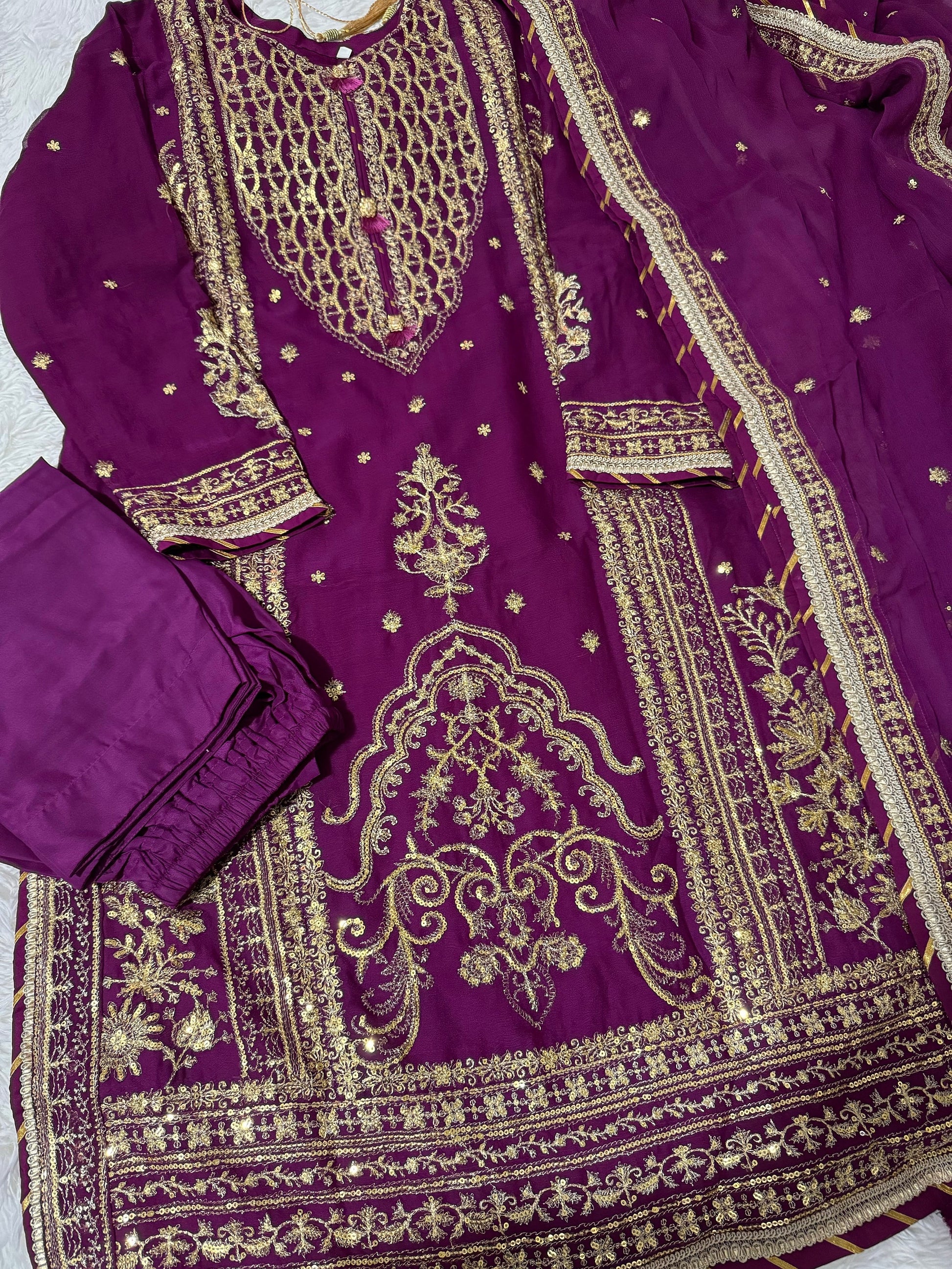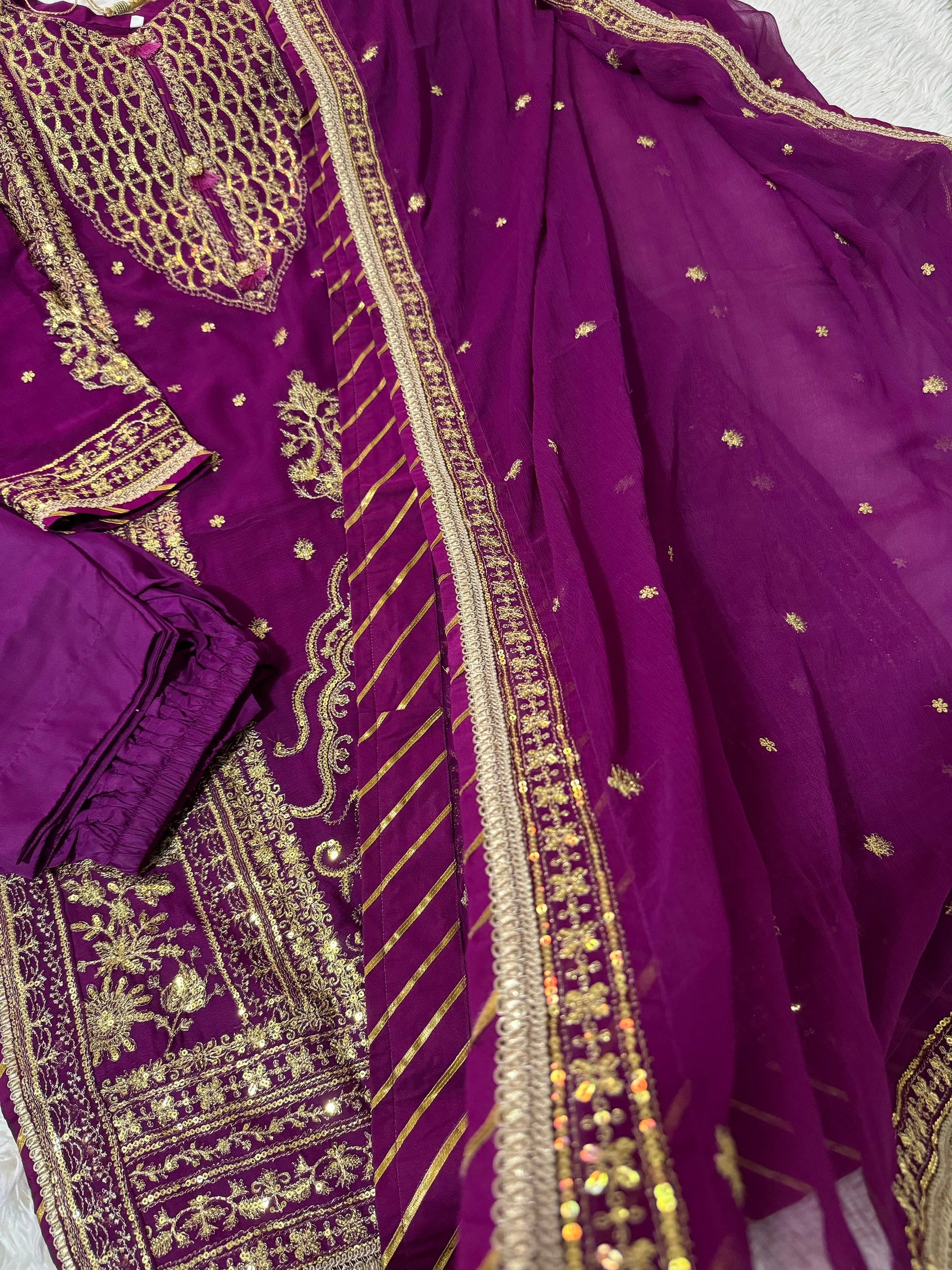 Dupatta:Chiffon Embroidered With Sequins Work.Fully finished with lacing