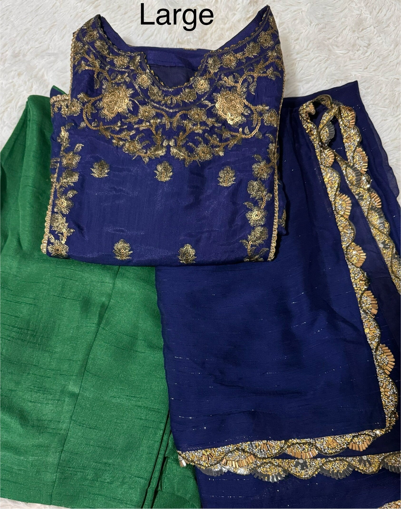 Asim Jofa Original Indian Raw Silk Embroidered Zari Sitara Collection Pakistani Designer Wear Size Medium & Large