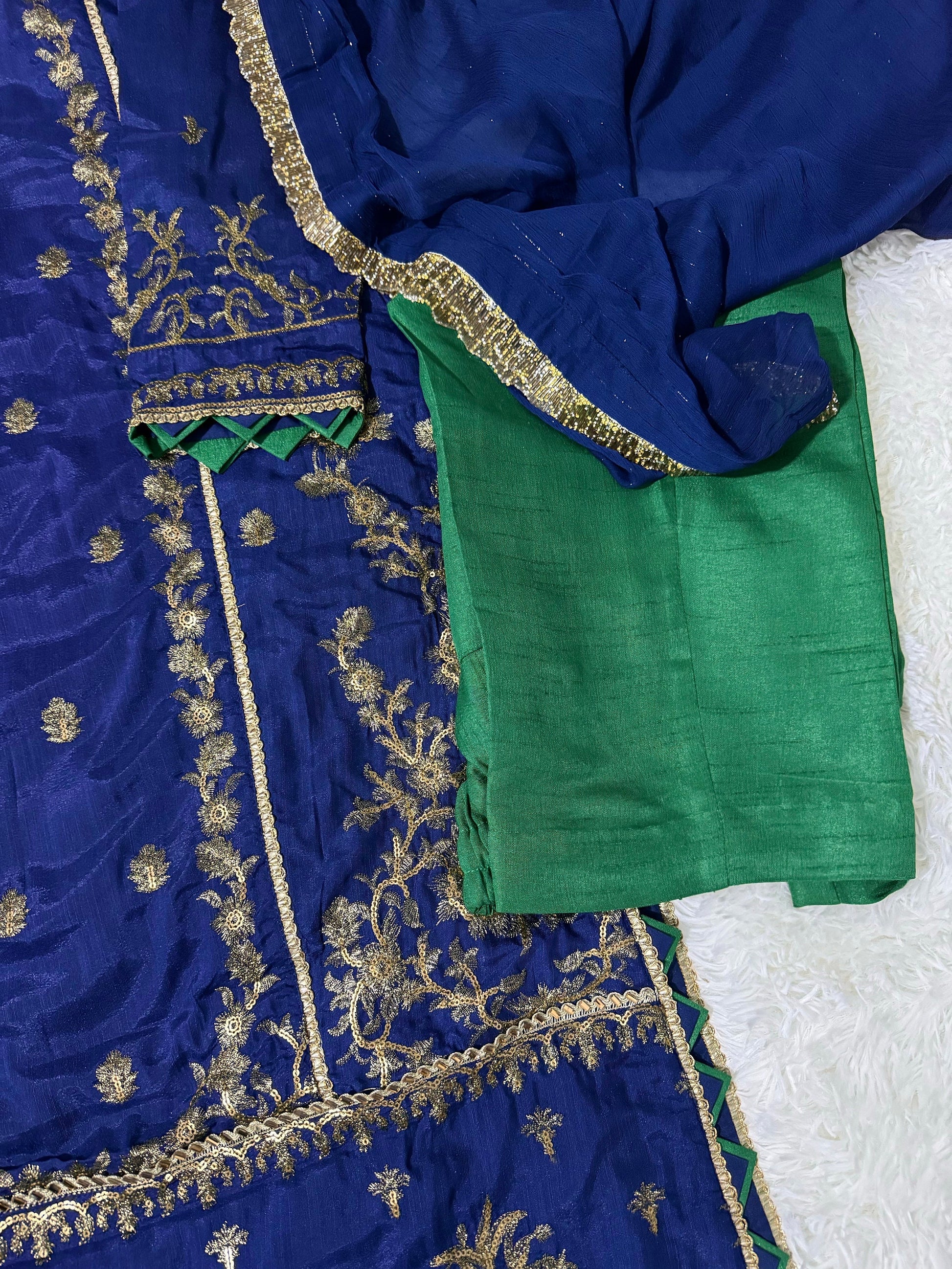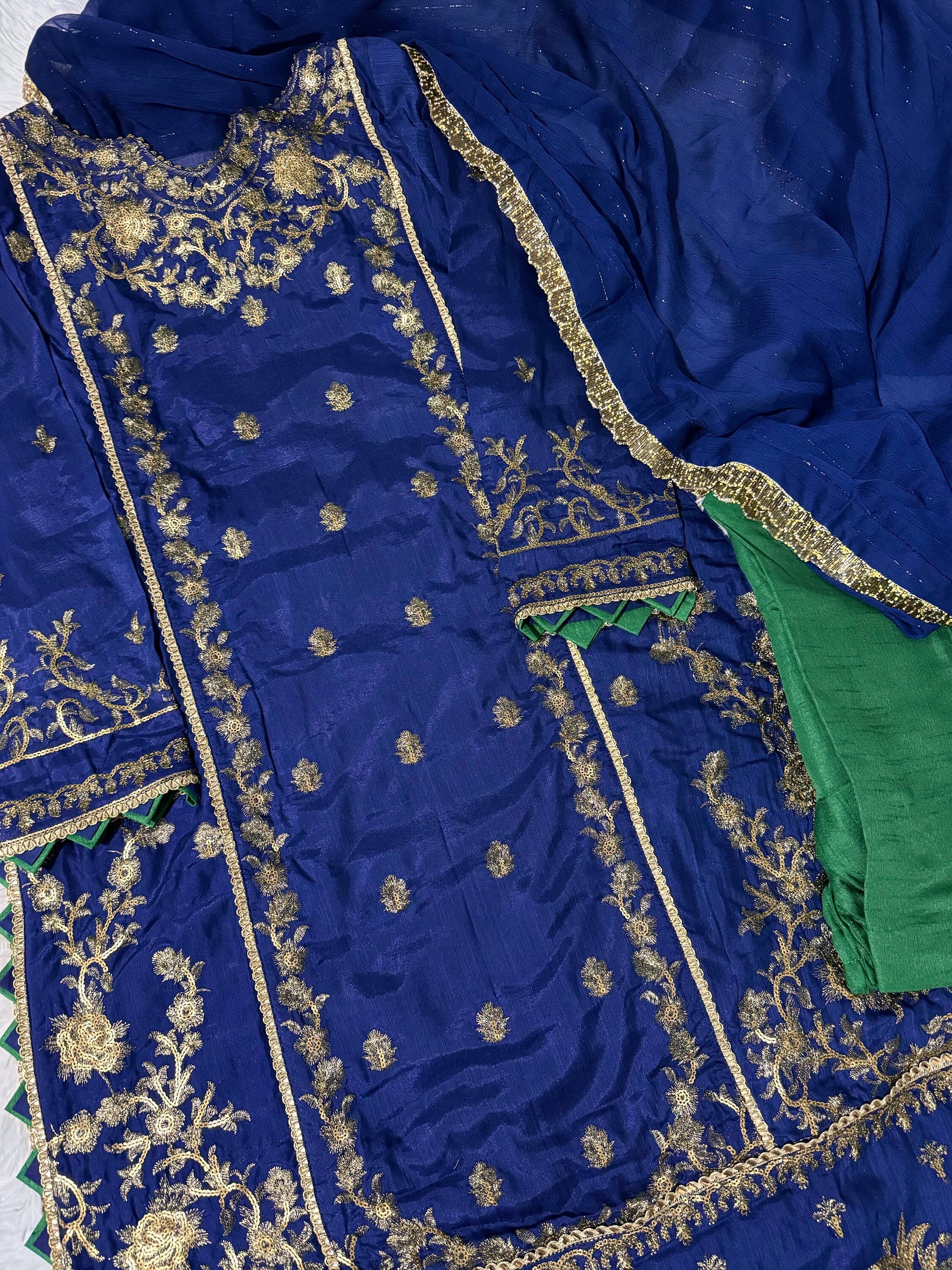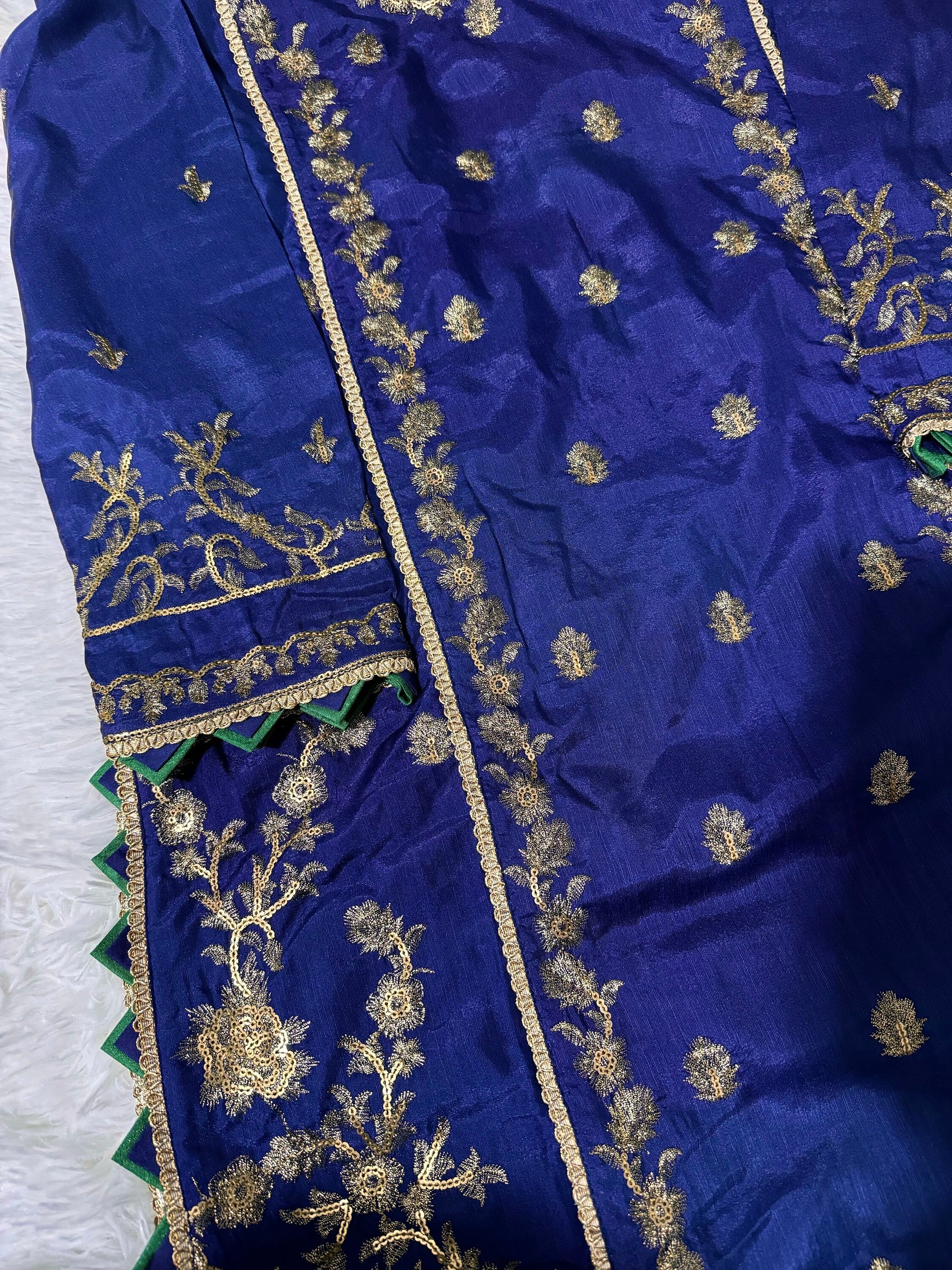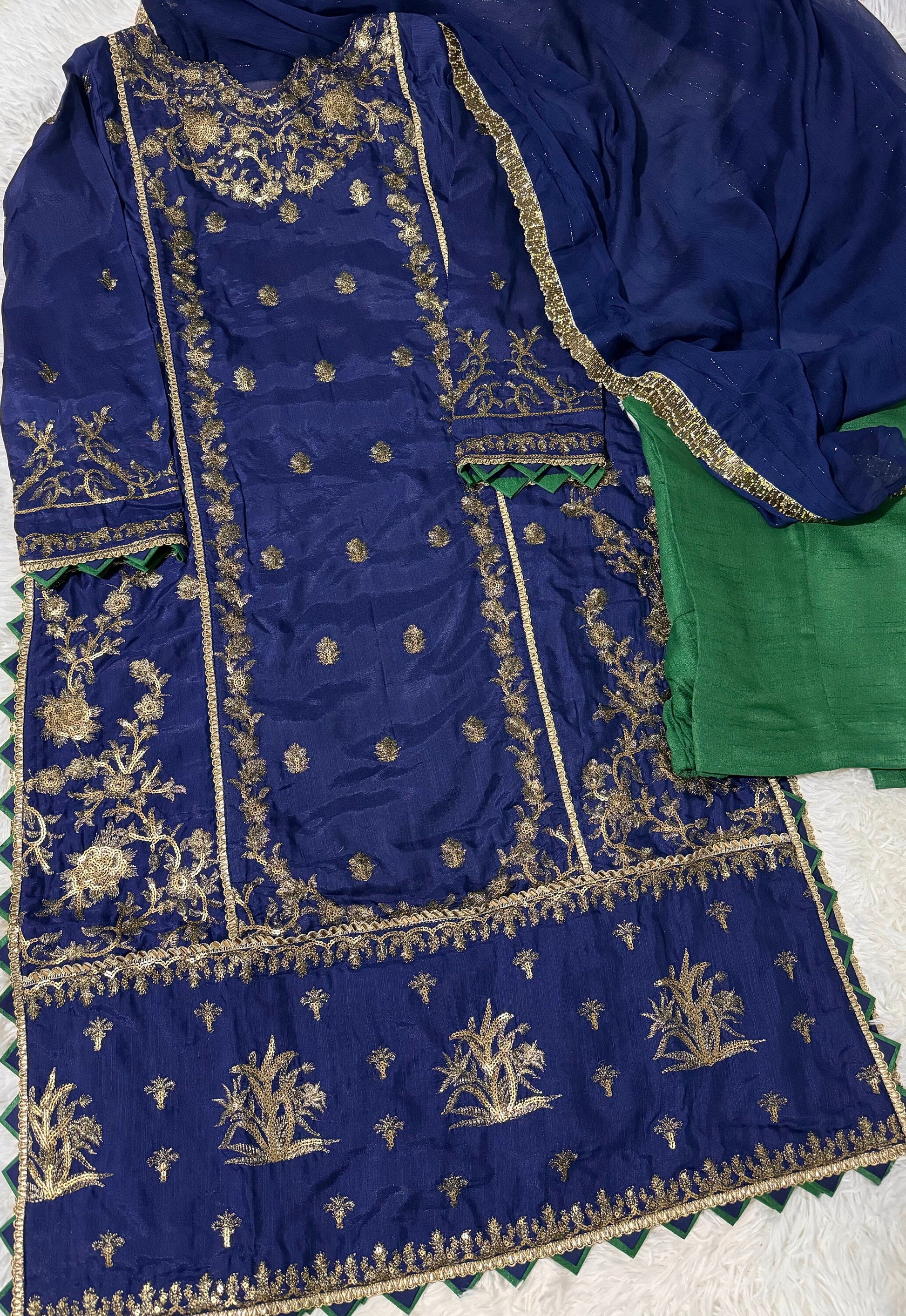 Indian Raw Silk Embroidered 3 Piece Stitched Dress