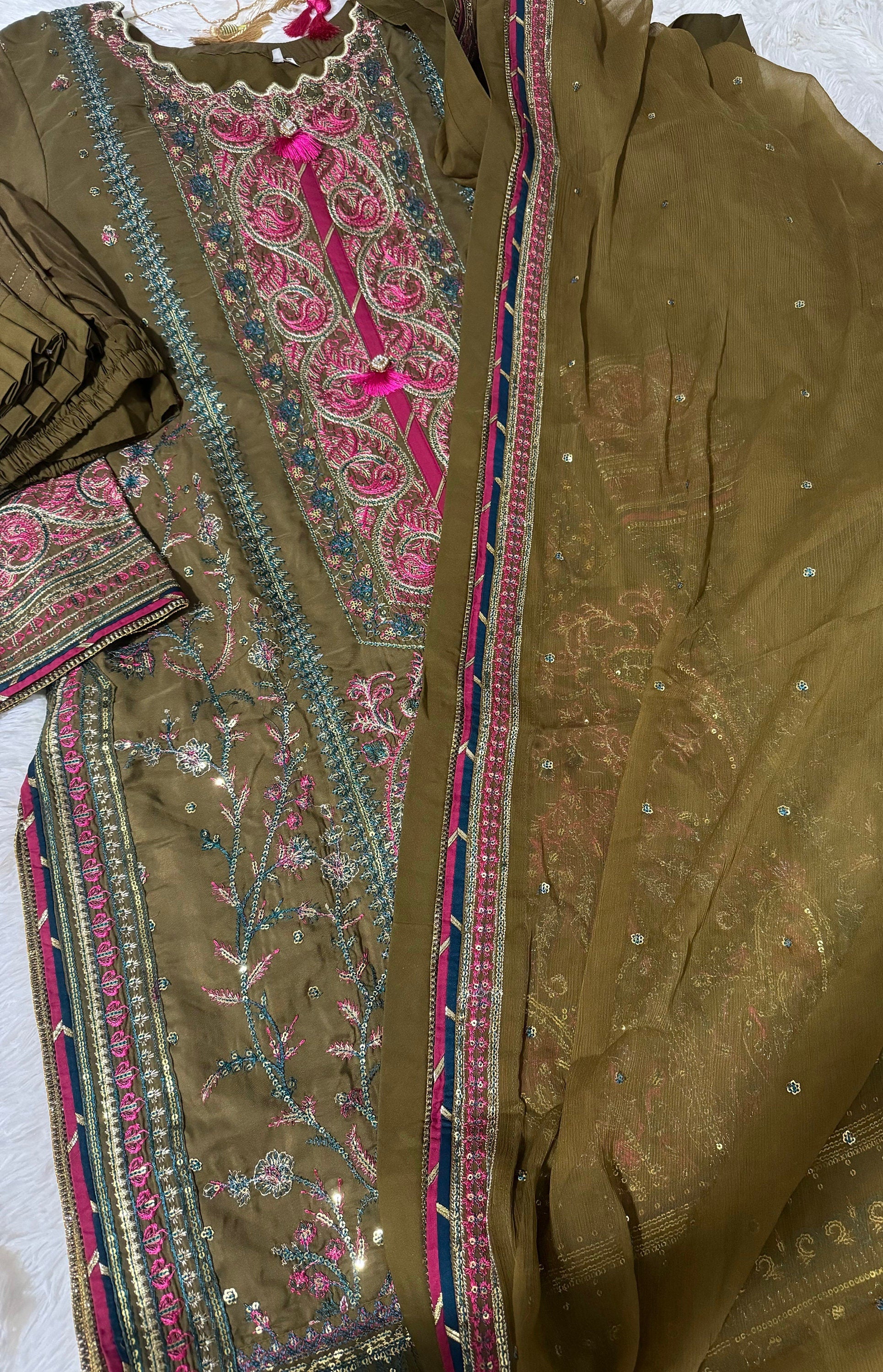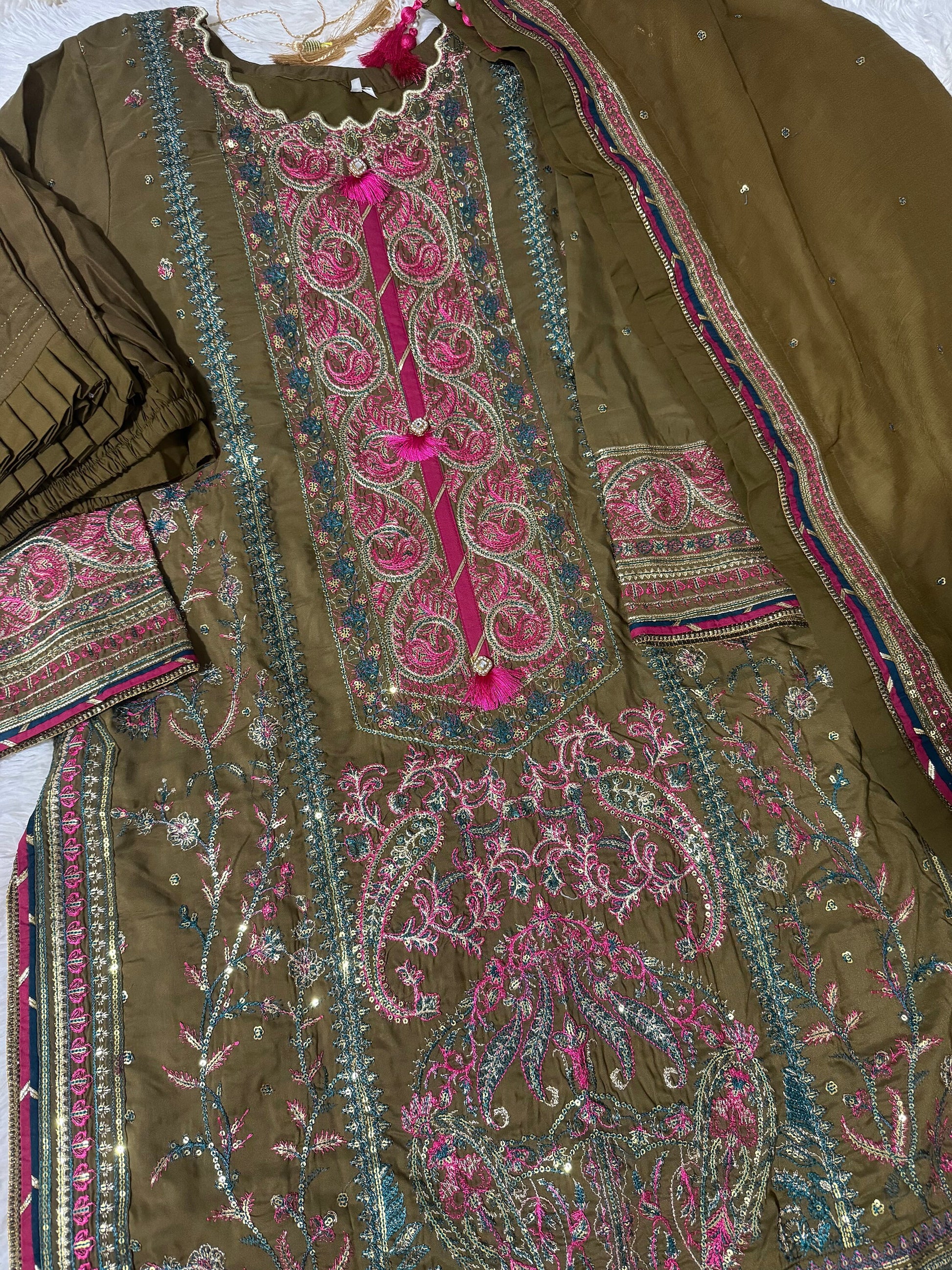 Dupatta:Chiffon Embroidered With Sequins Work.Fully finished with lacing