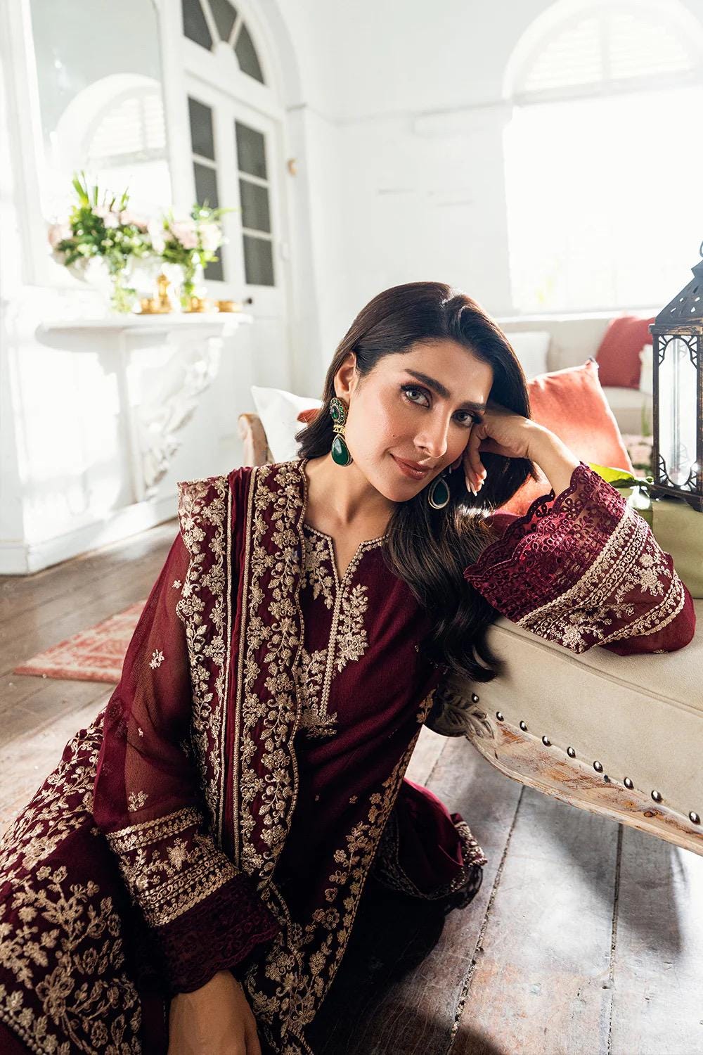 Azure Farshi Shalwar Dress Khadi Net Embroidered Latest Collection 2025
