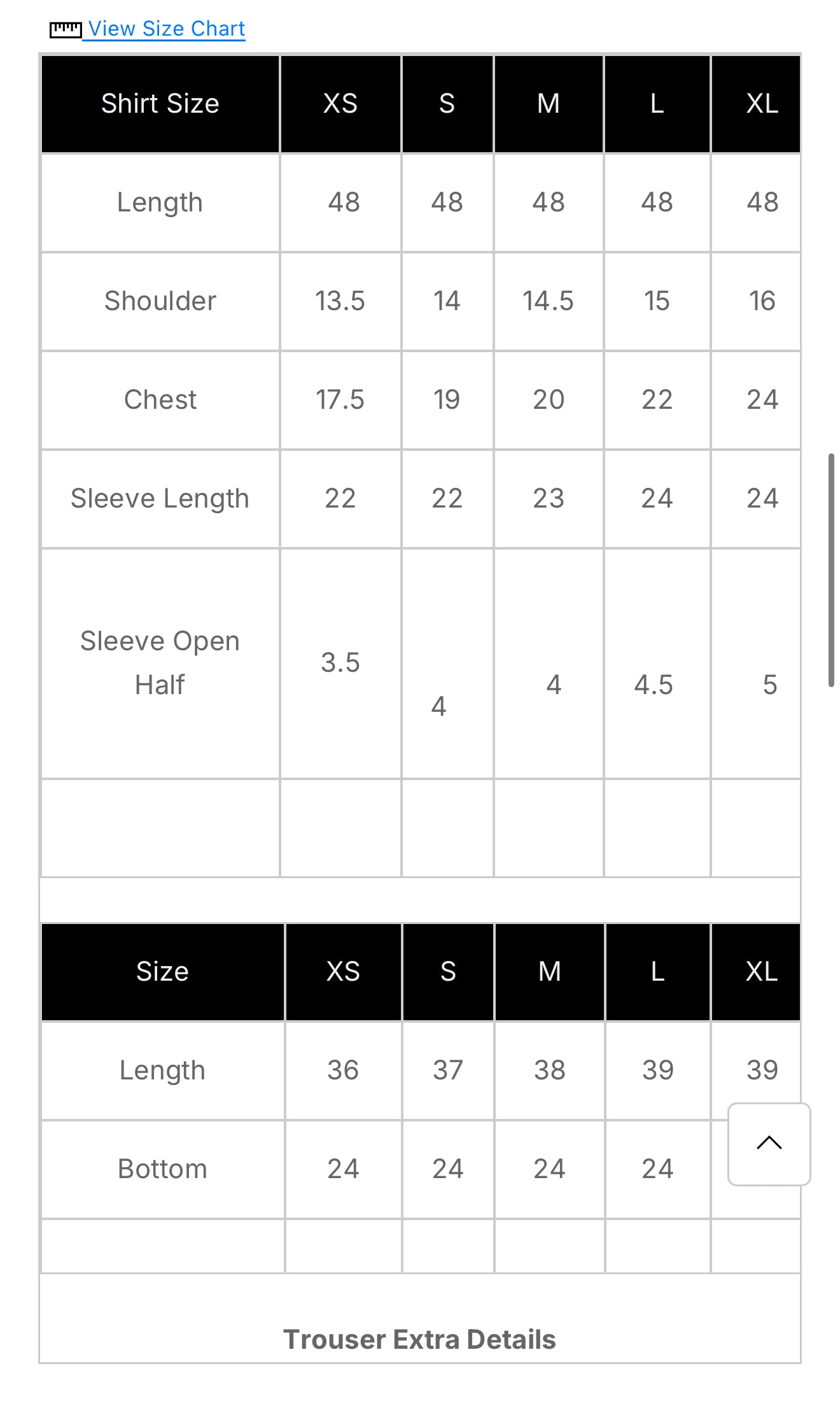 XS Small Medium Large & XL