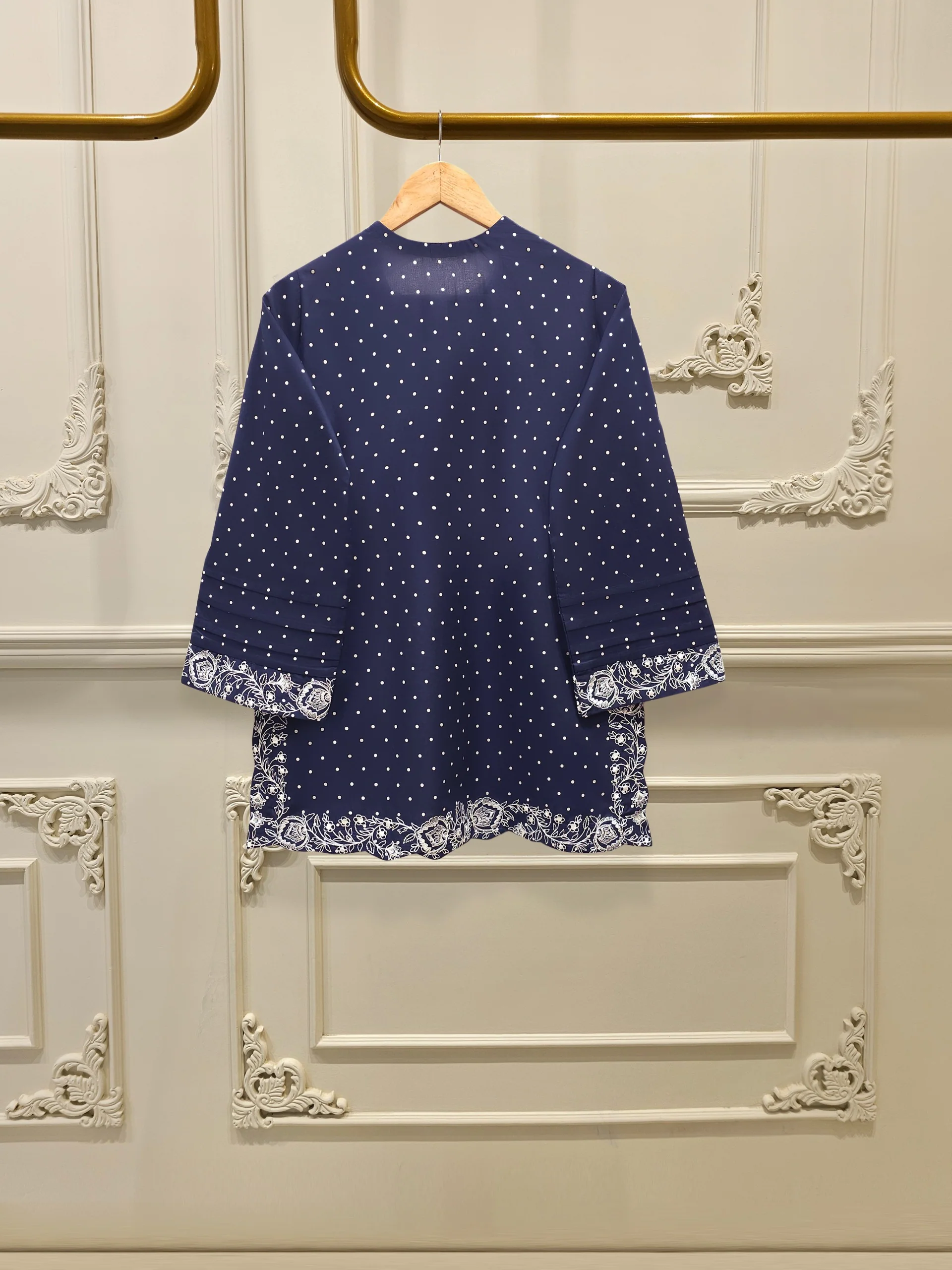 Dry clean recommended. Iron the clothes at moderate temperature. Do not use any type of bleach or stain removing chemicals