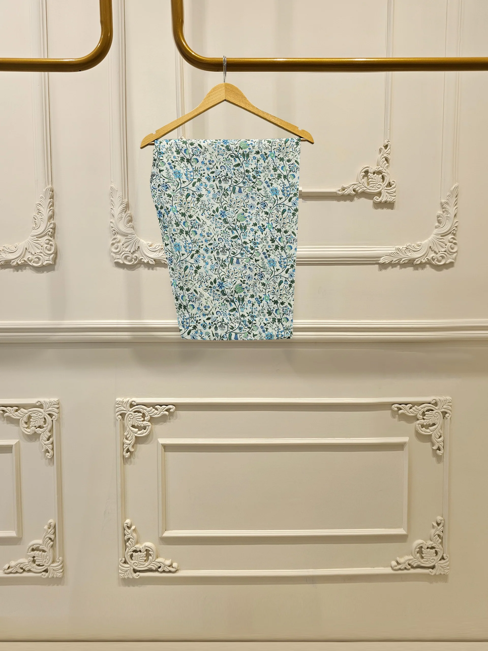 Dry clean recommended. Iron the clothes at moderate temperature. Do not use any type of bleach or stain removing chemicals