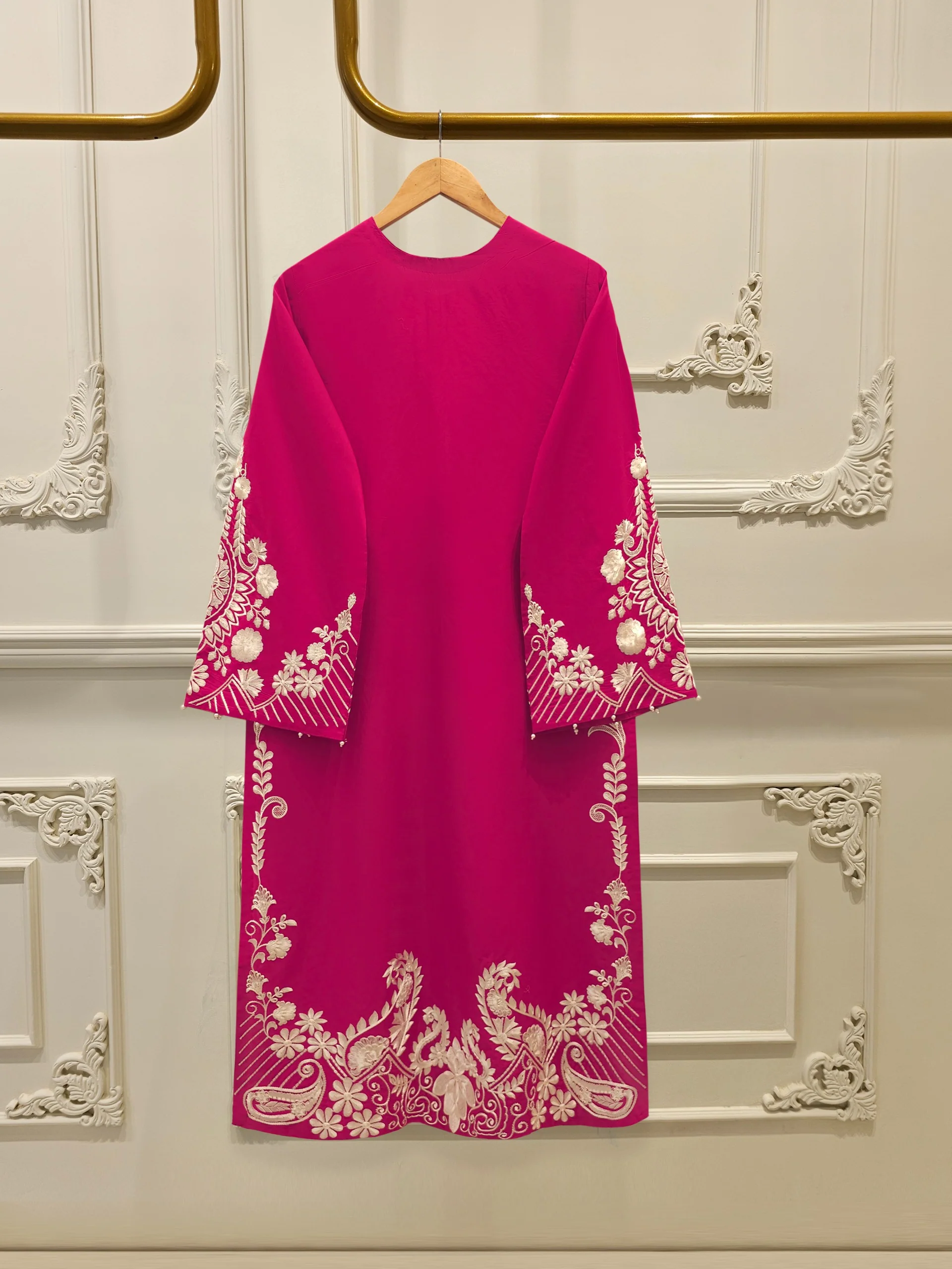 Dry clean recommended. Iron the clothes at moderate temperature. Do not use any type of bleach or stain removing chemicals