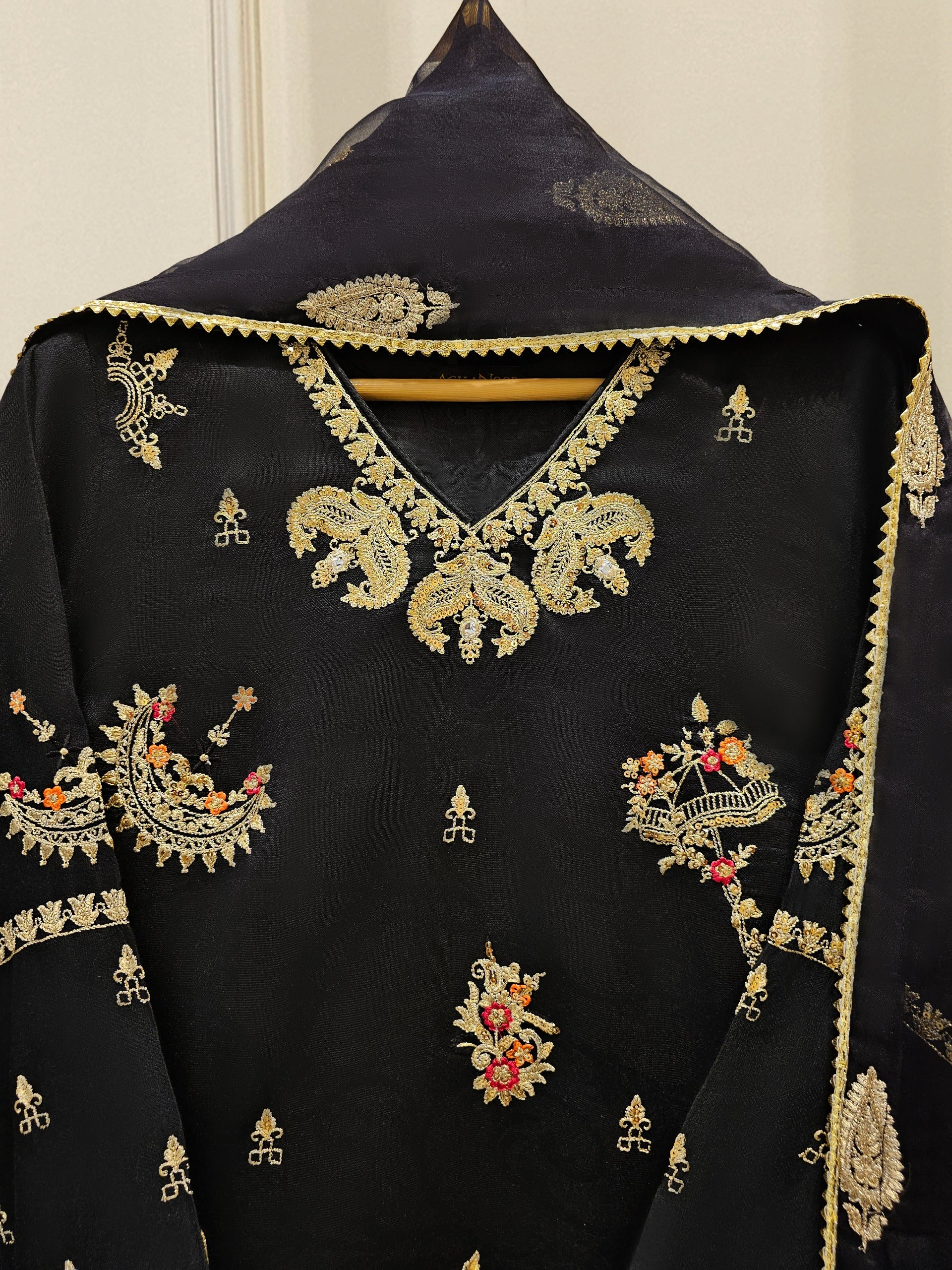 Agha Noor 3 Piece- Pure Silk Net Embroidered Suit S111669