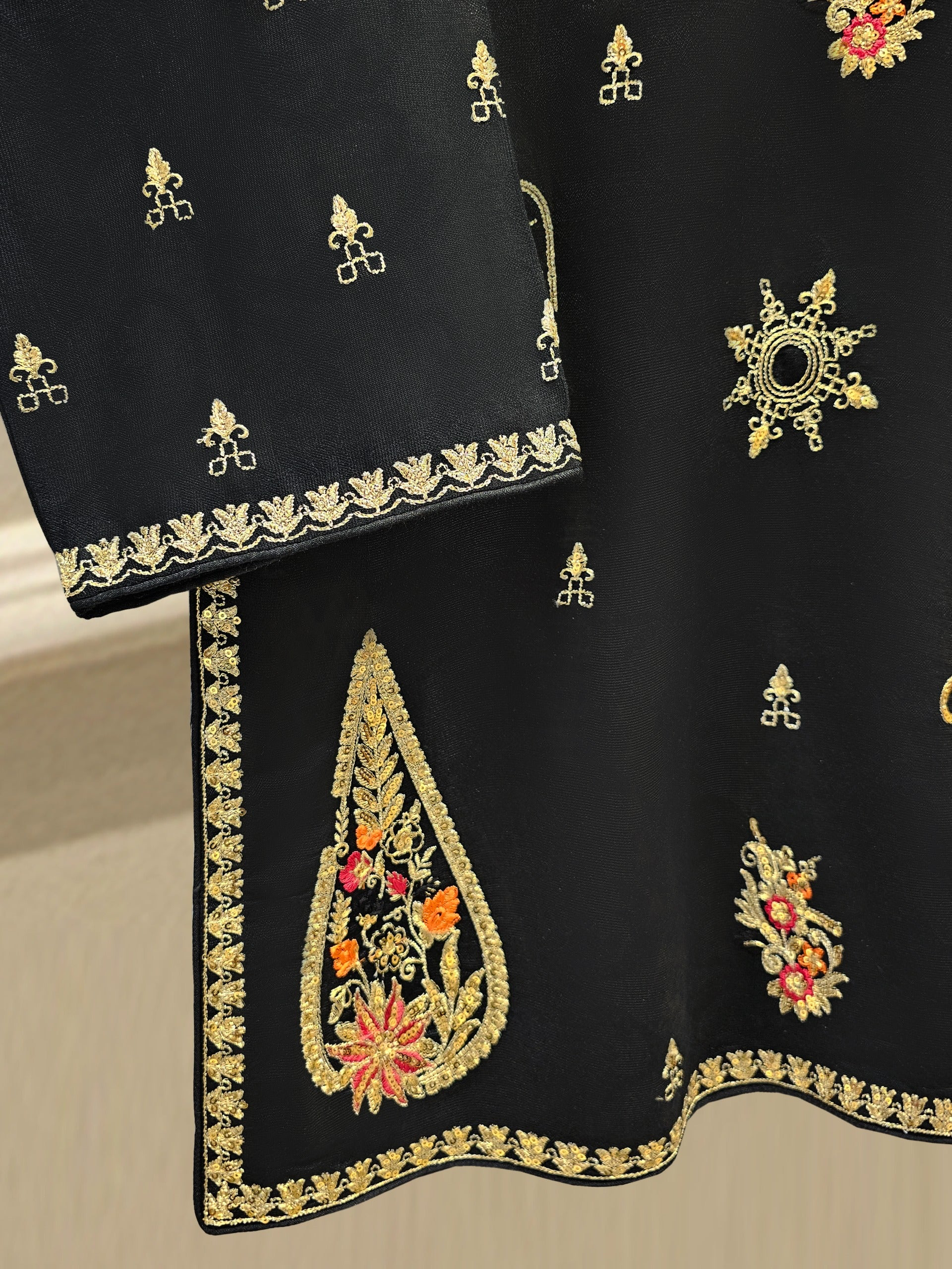 Shirt:Silk Net Embroidered With Sequins Work(Attached Lining )**No sleeves lining**
