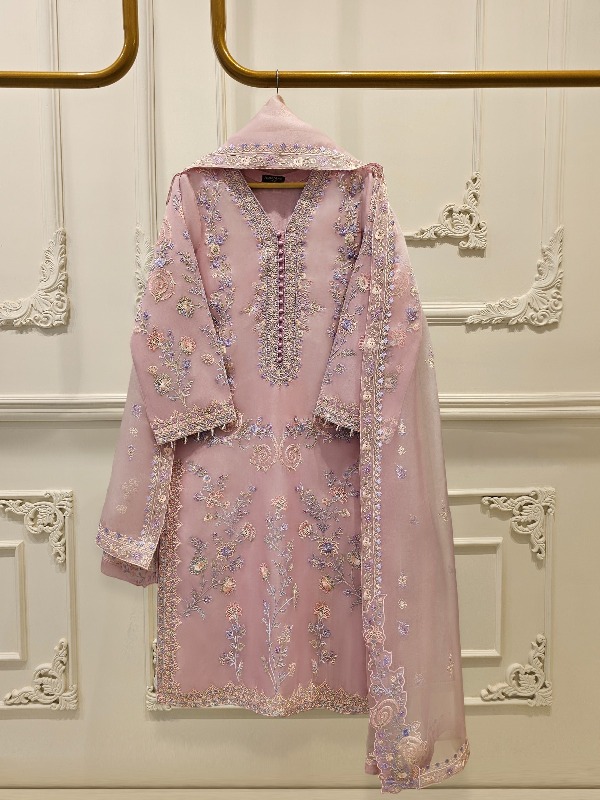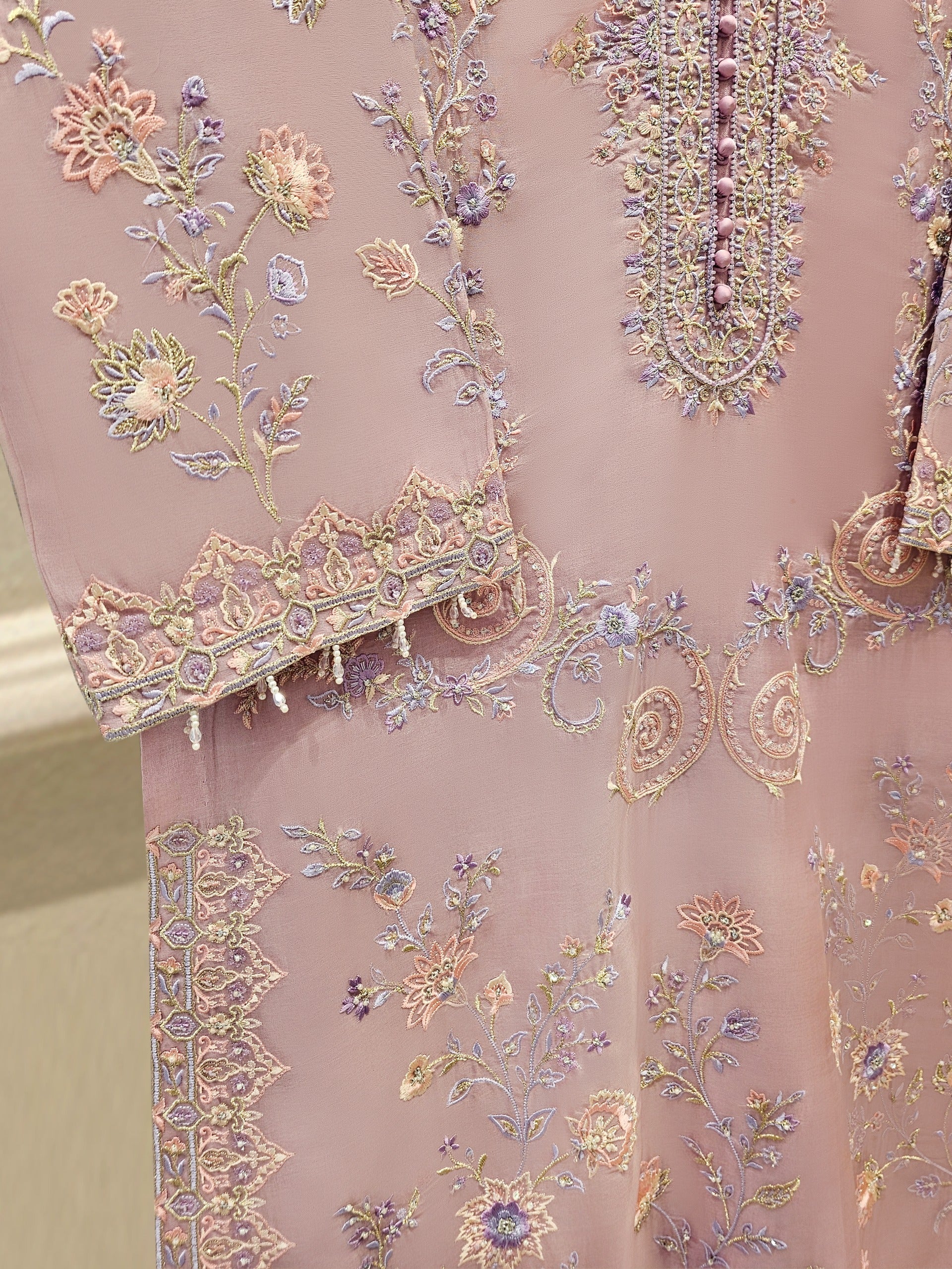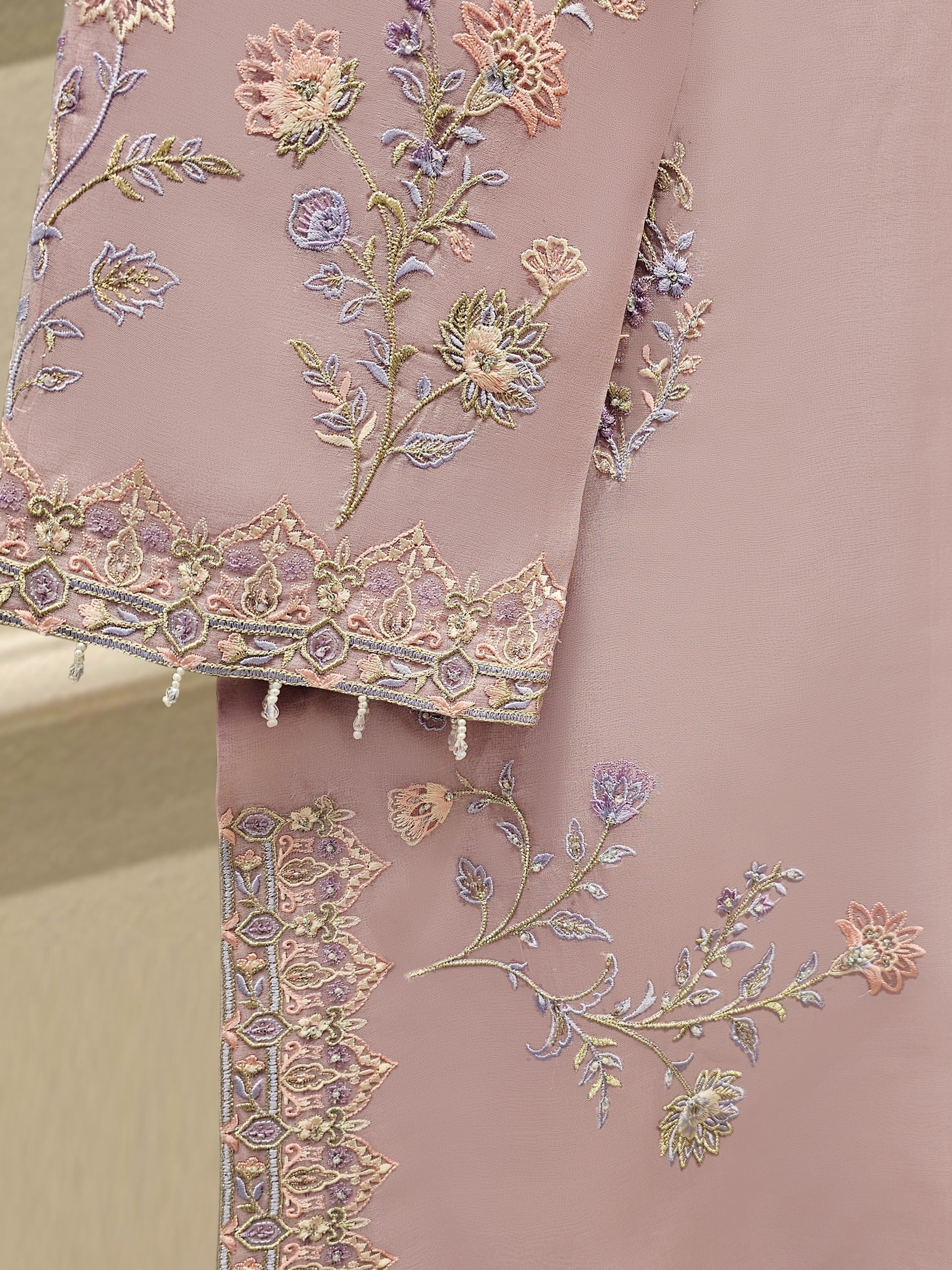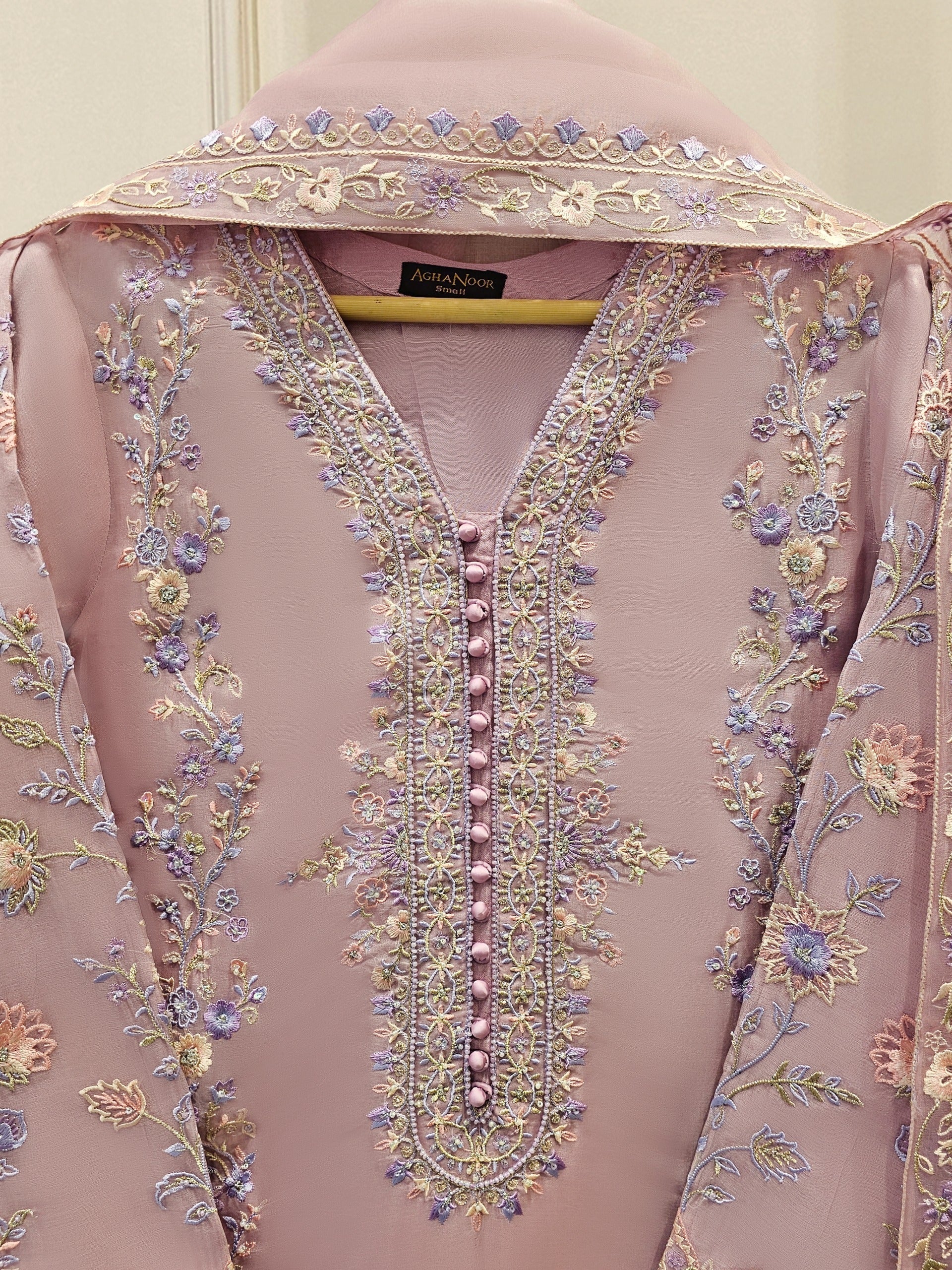 Agha Noor 3 Piece - Pure Organza Embroidered Dress S111626