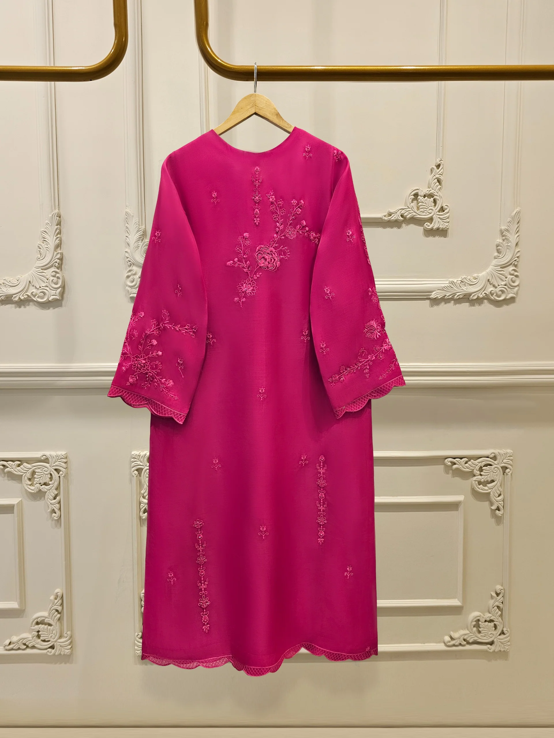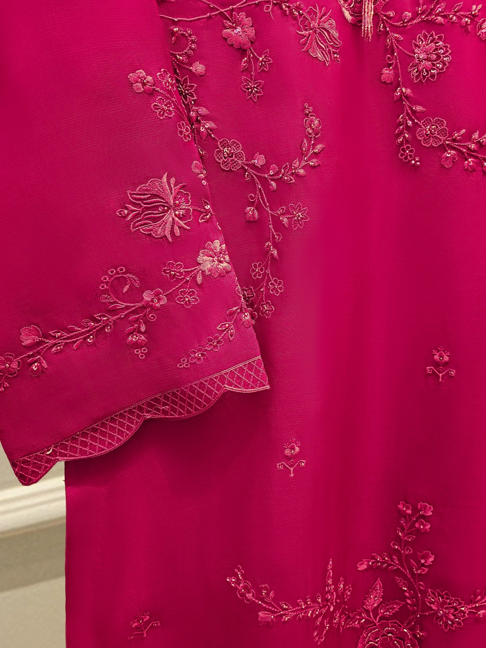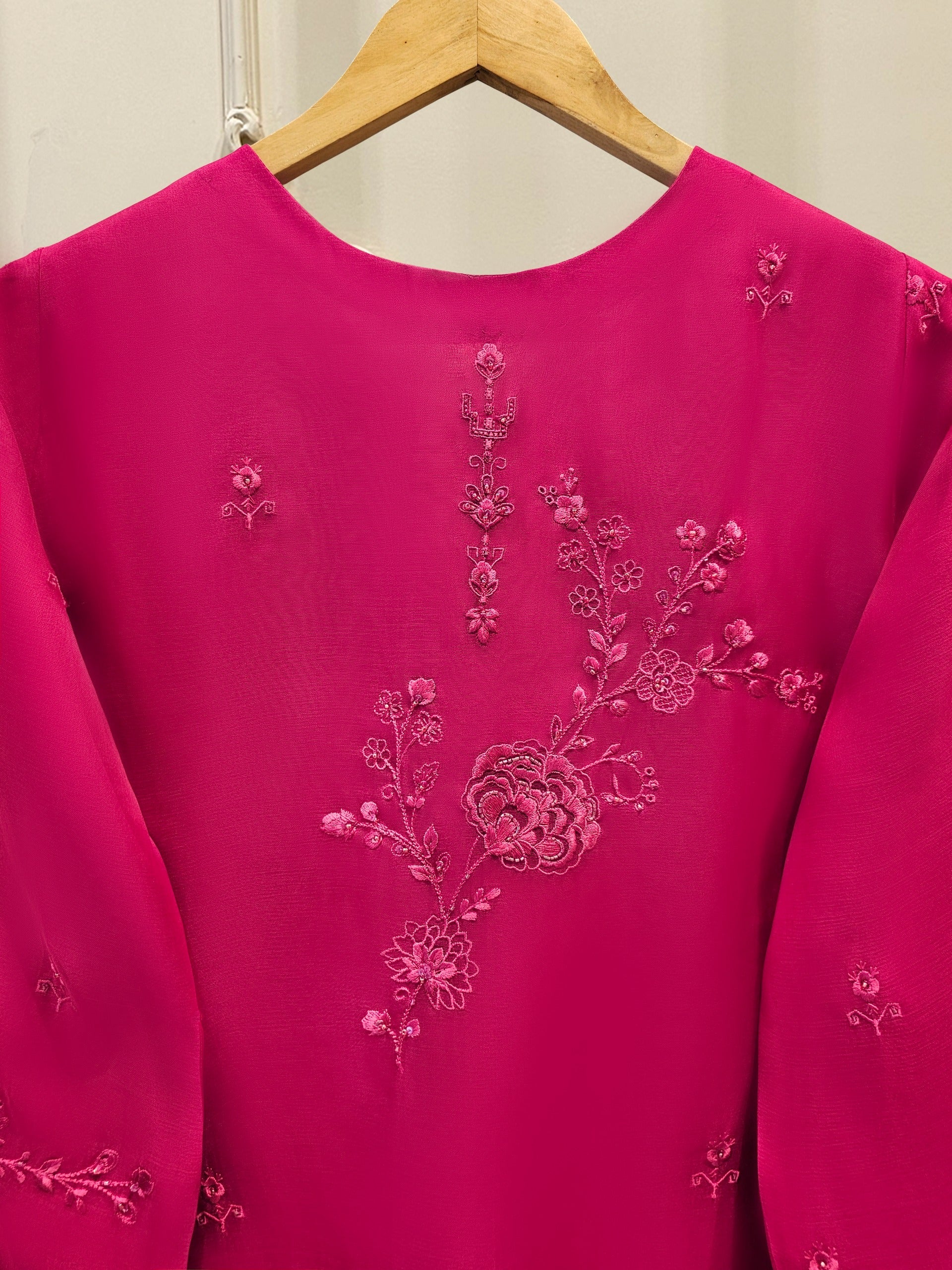 Shirt:Organza Embroidered (Attached Lining )**No sleeves lining **