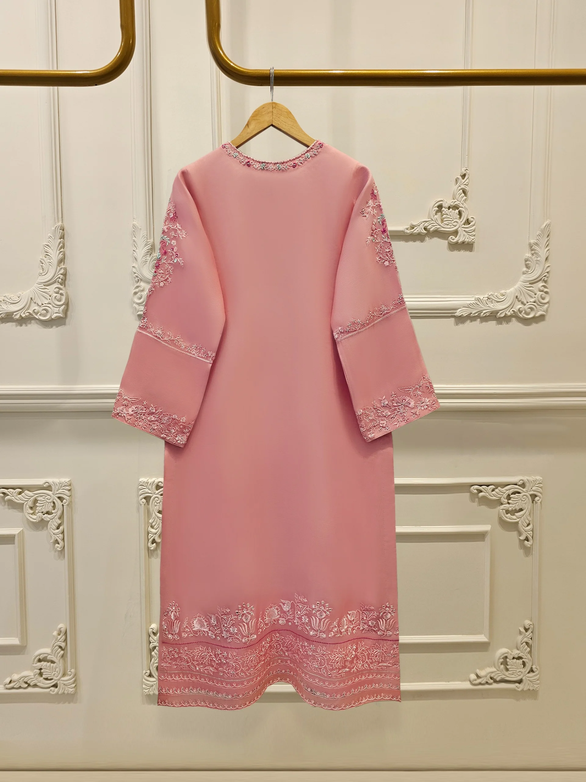 Shirt:Organza Embroidered (Attached Lining )**No sleeves lining **