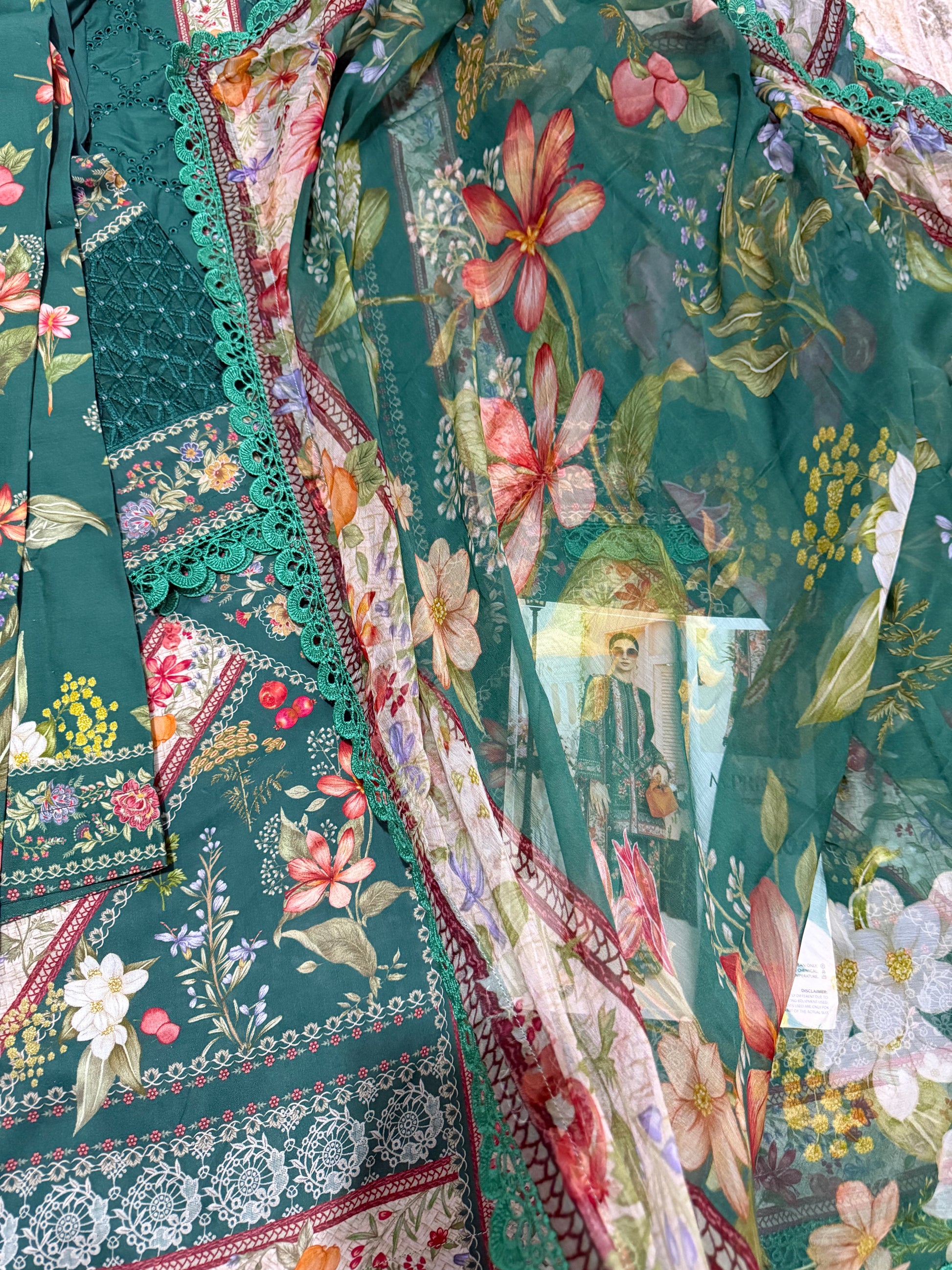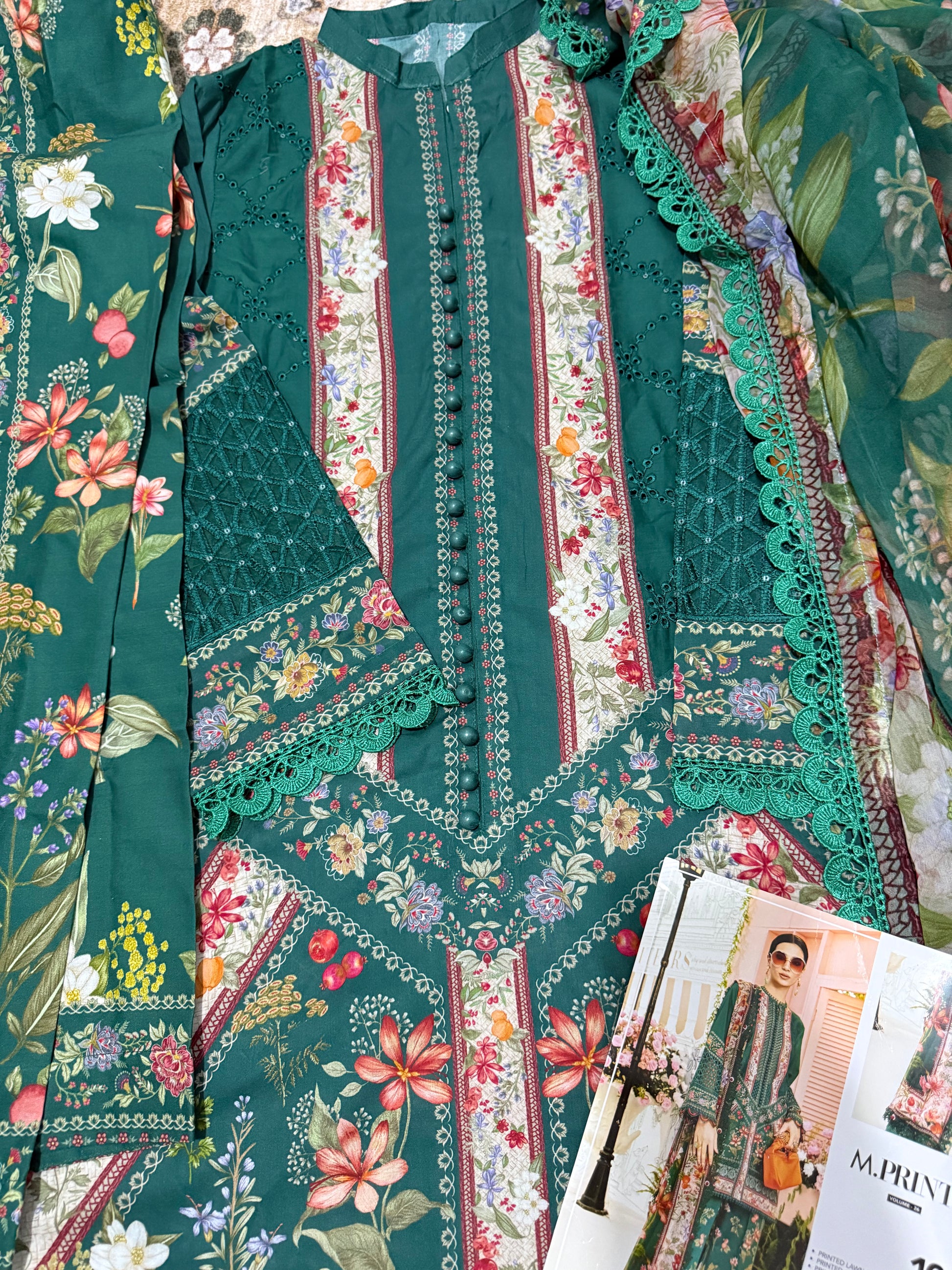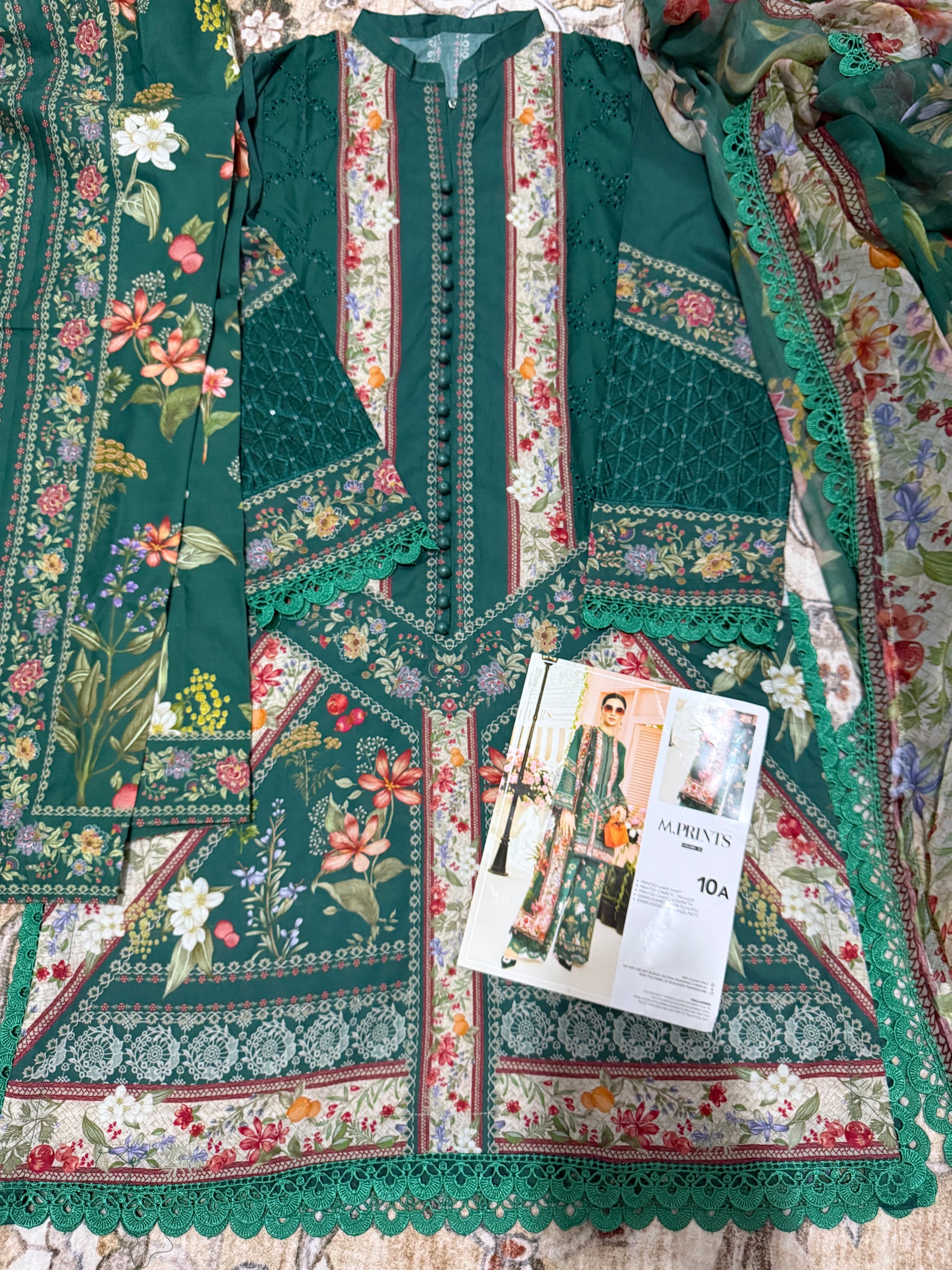 Maria B M Prints 3 Piece Stitched Embroidered Lawn Suit | MPT-2610-A