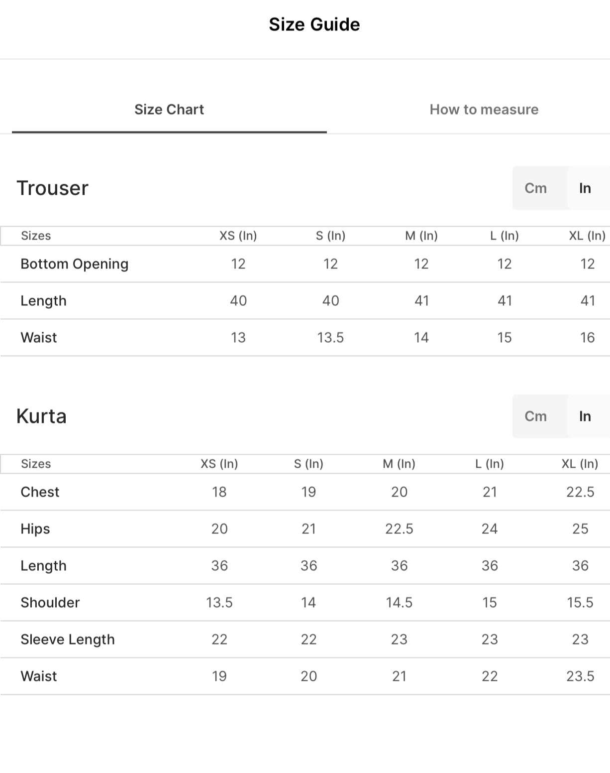 Dry clean recommended. Iron the clothes at moderate temperature. Do not use any type of bleach or stain removing chemicals.