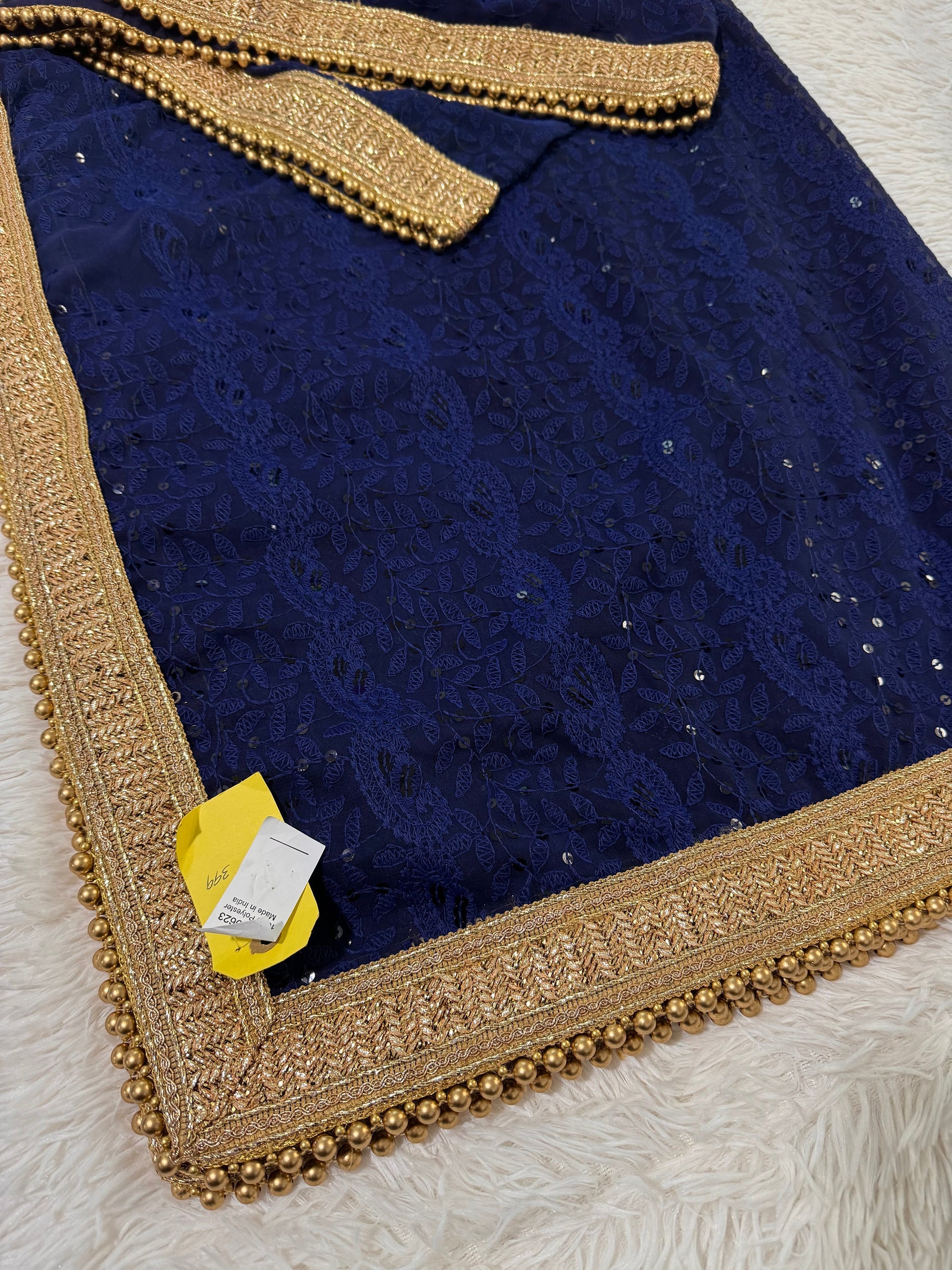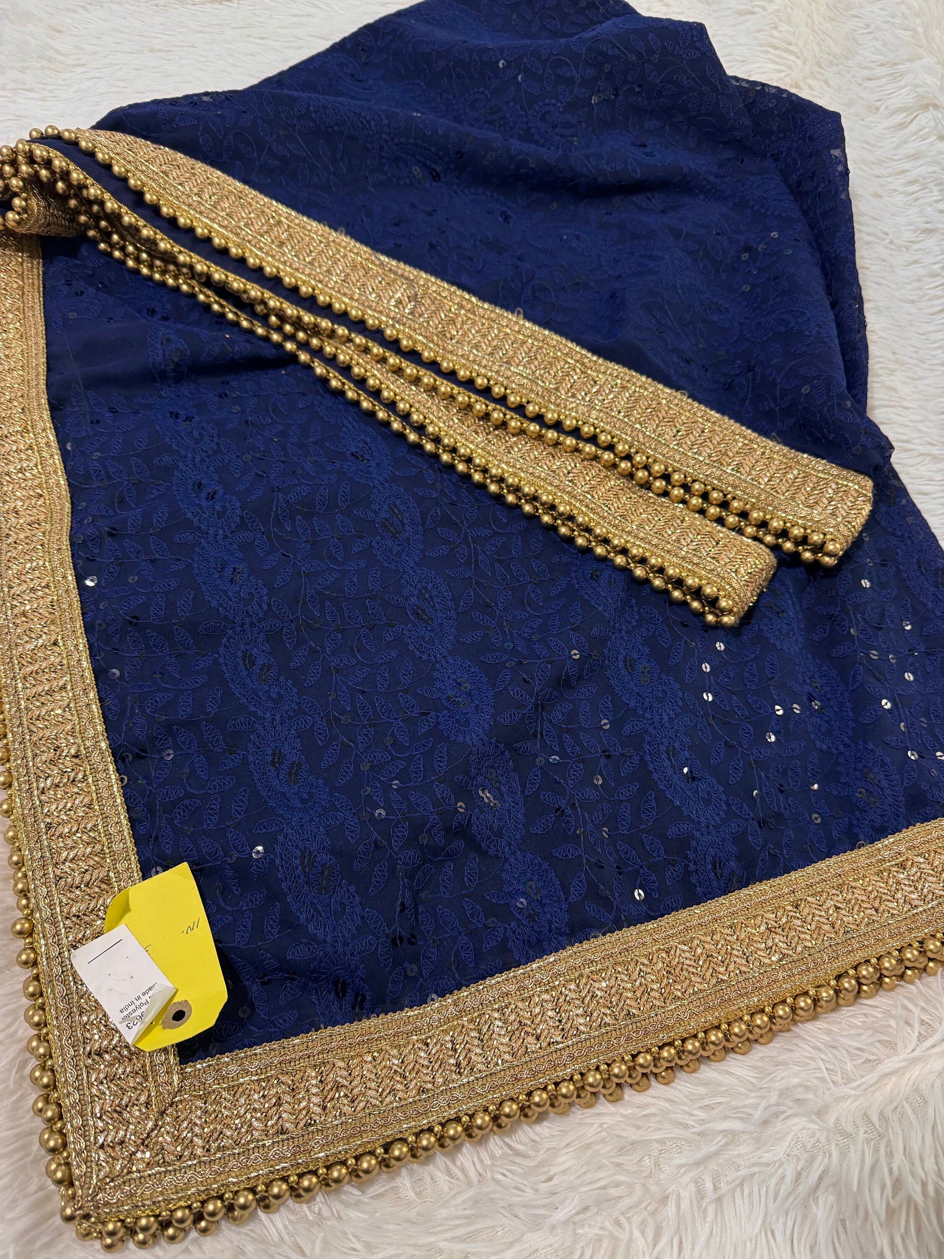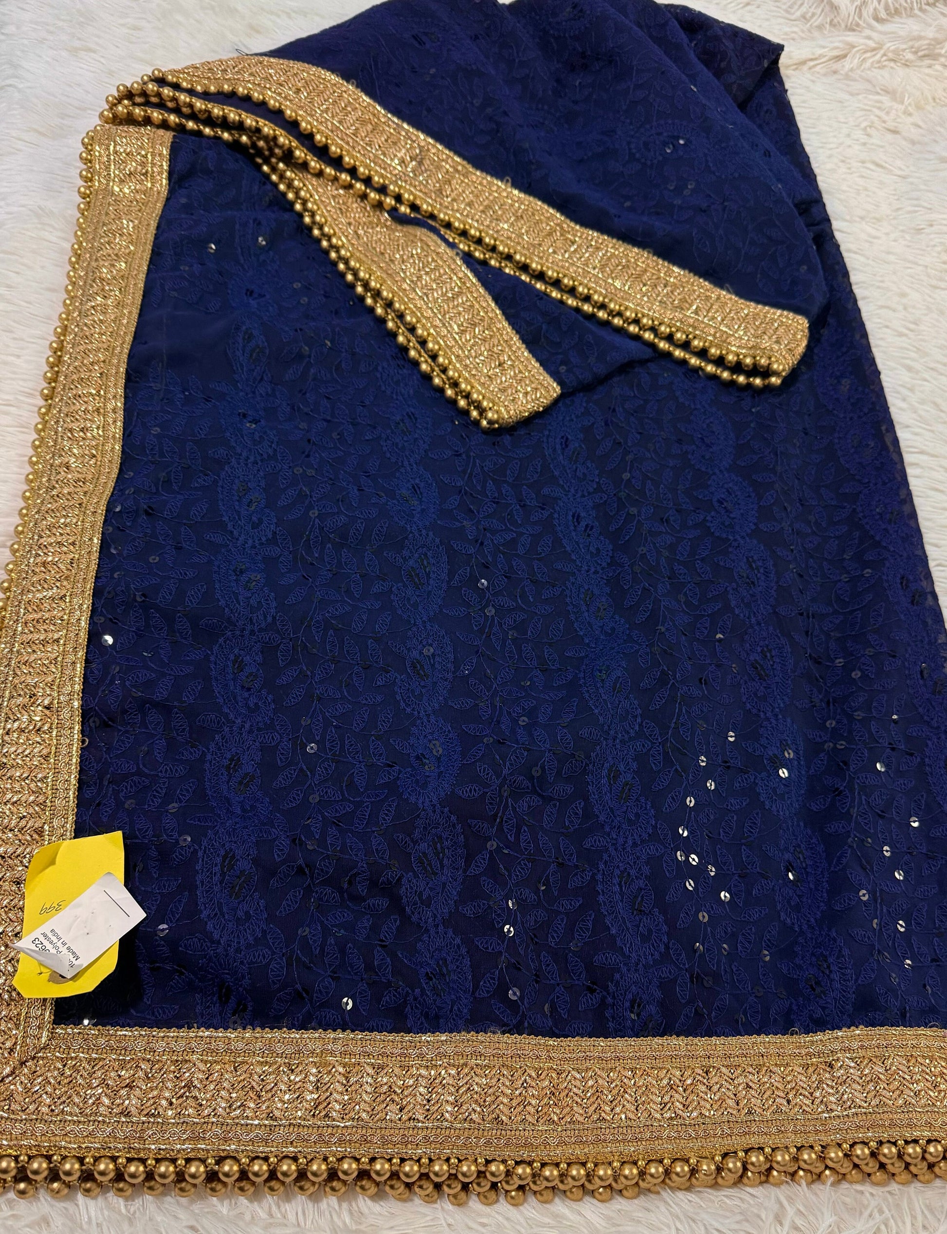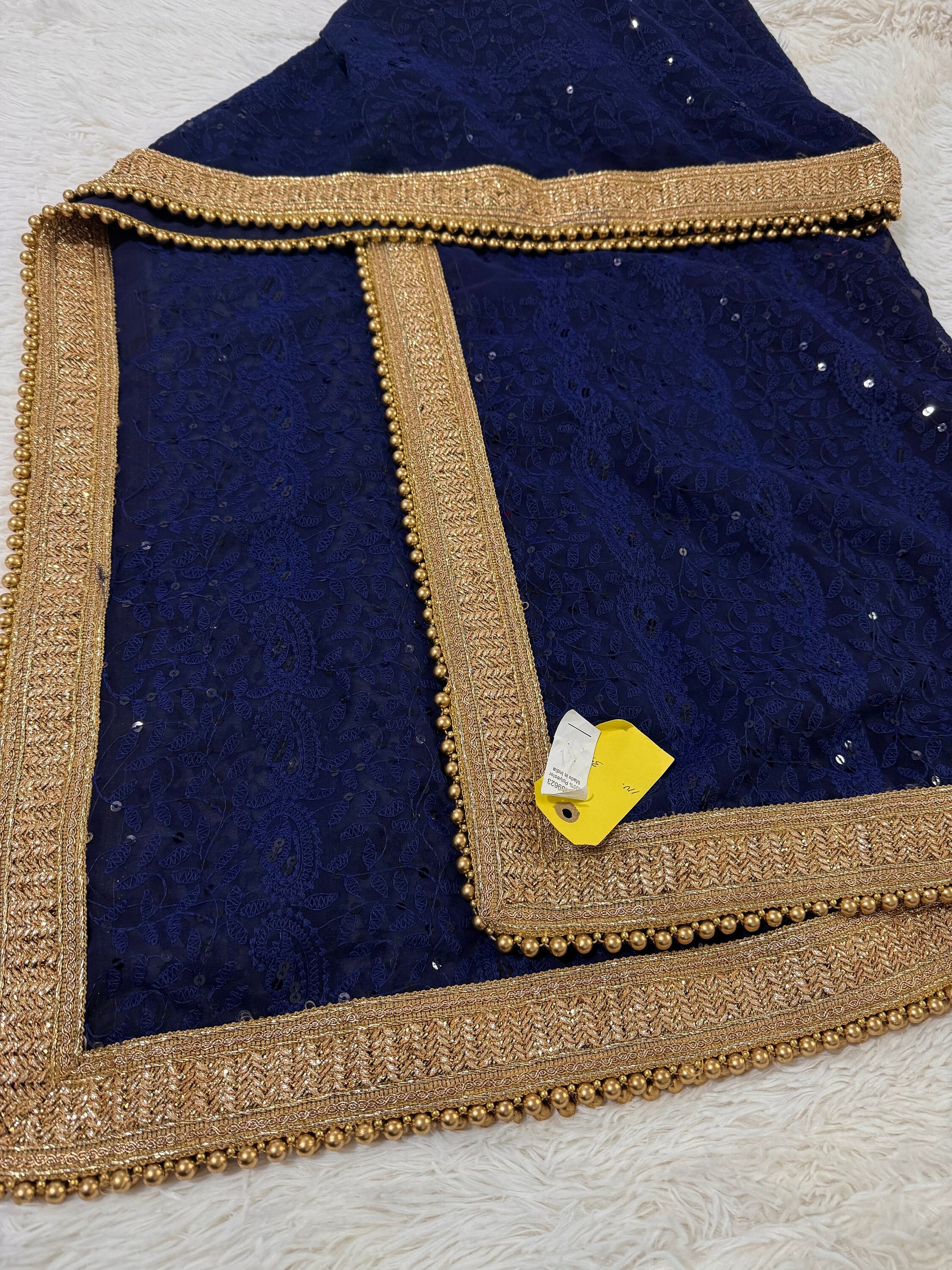 Heavily sequins embroidered dupatta finish with gota lacing and ball lace Size: 2.4 metres,
