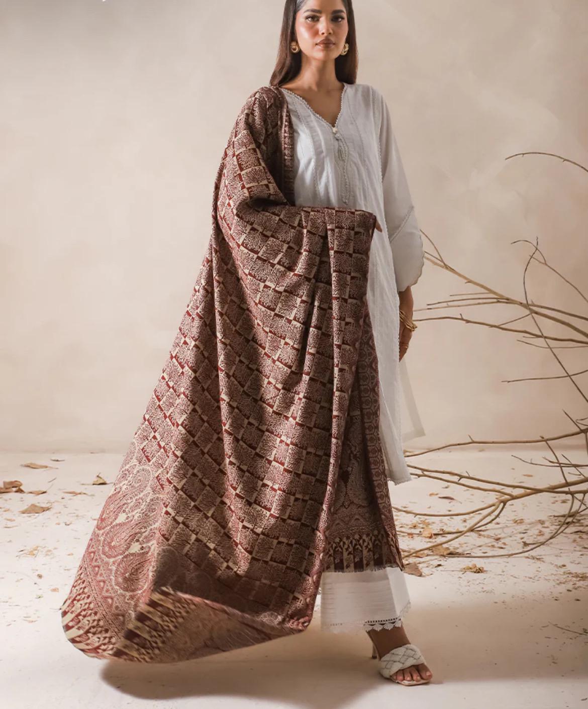 Jacquard Shawl Pashmina Asim Jofa Brand Pakistani Indian Ready To Wear Winter Collection