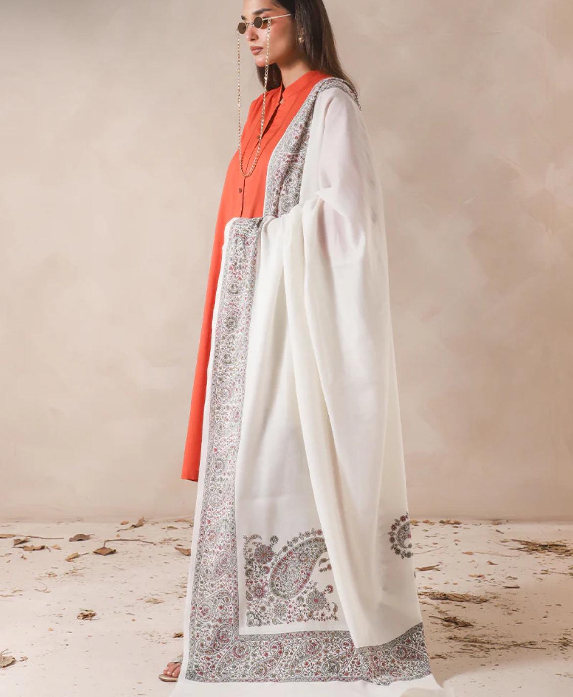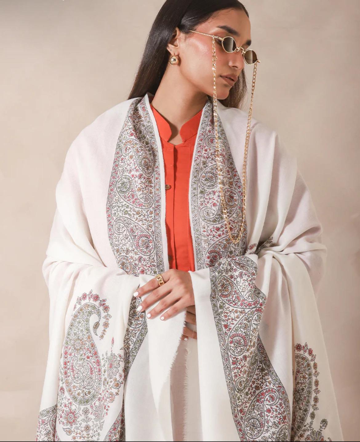 Kashmiri Hand Embroidered Shawl Pashmina Asim Jofa Brand Pakistani Indian Ready To Wear Winter Collection