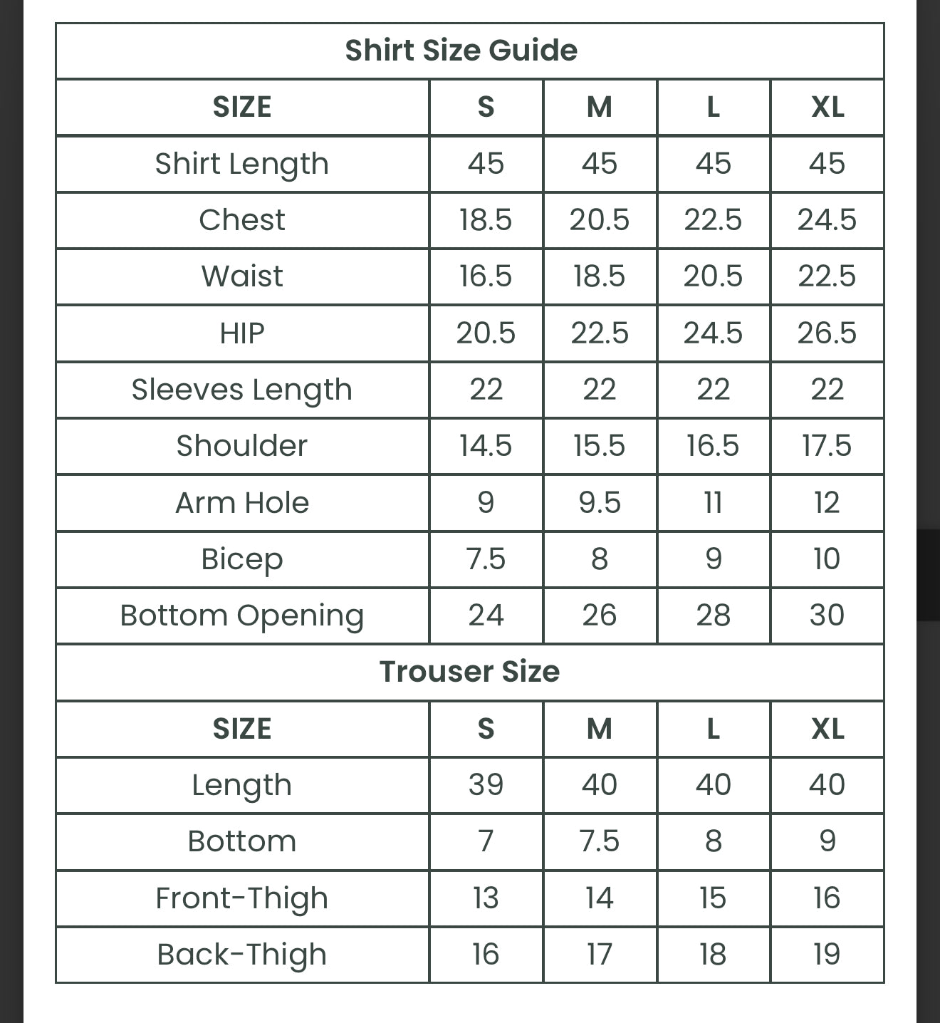 Dry clean recommended. Iron the clothes at moderate temperature. Do not use any type of bleach or stain removing chemicals.