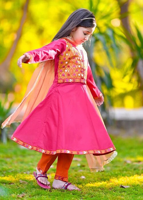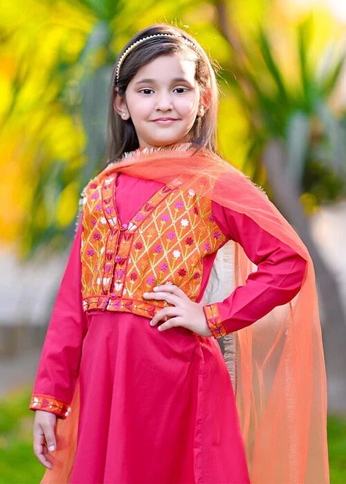 Sub-Category: Pishwas Package Includes: 4 Piece - Top Bottom Dupatta & Jacket Fabric: Frock: Lawn, Shalwar, Lawn, Dupatta :Net Color Type: Pink Work Technique: Embroidered