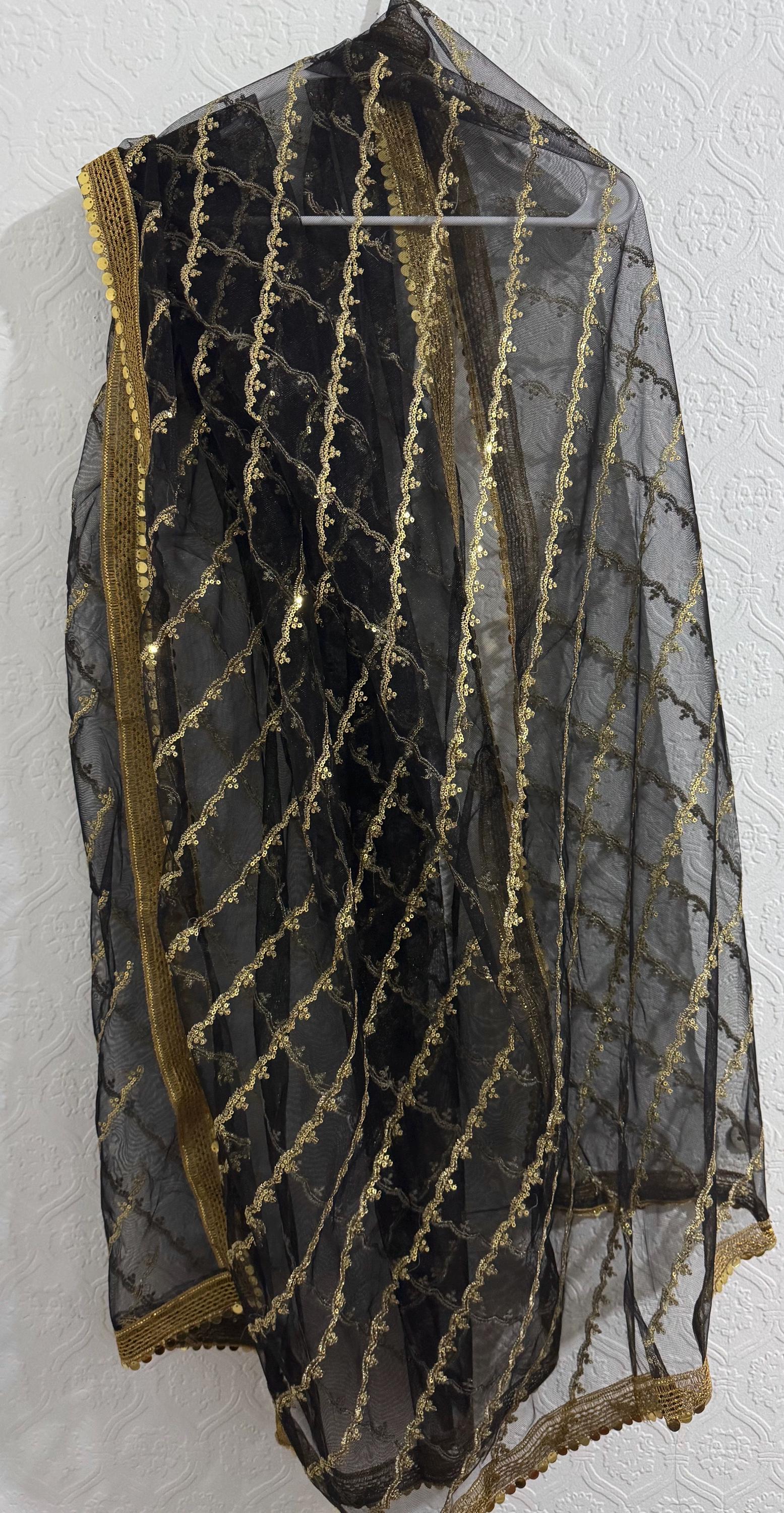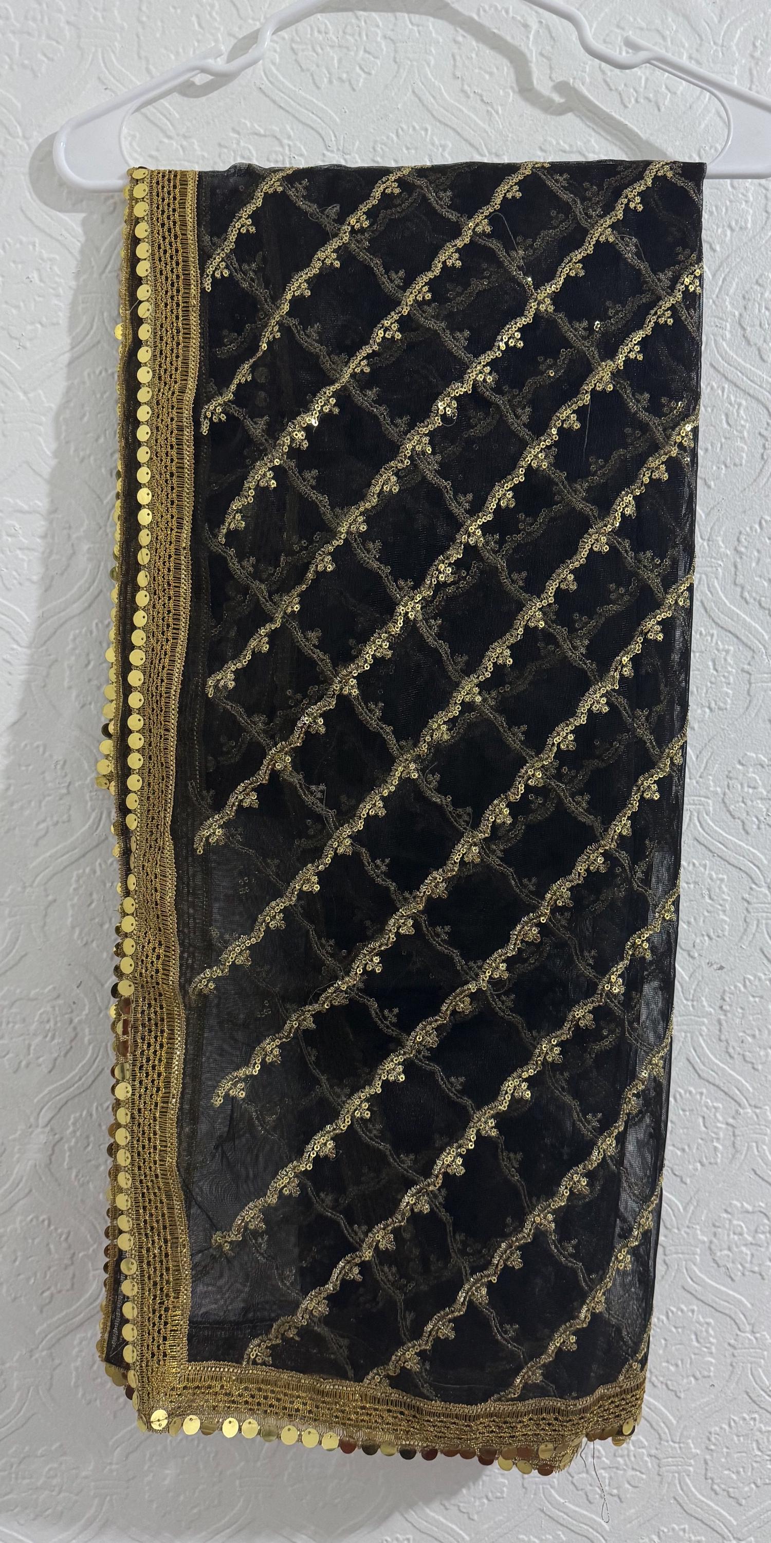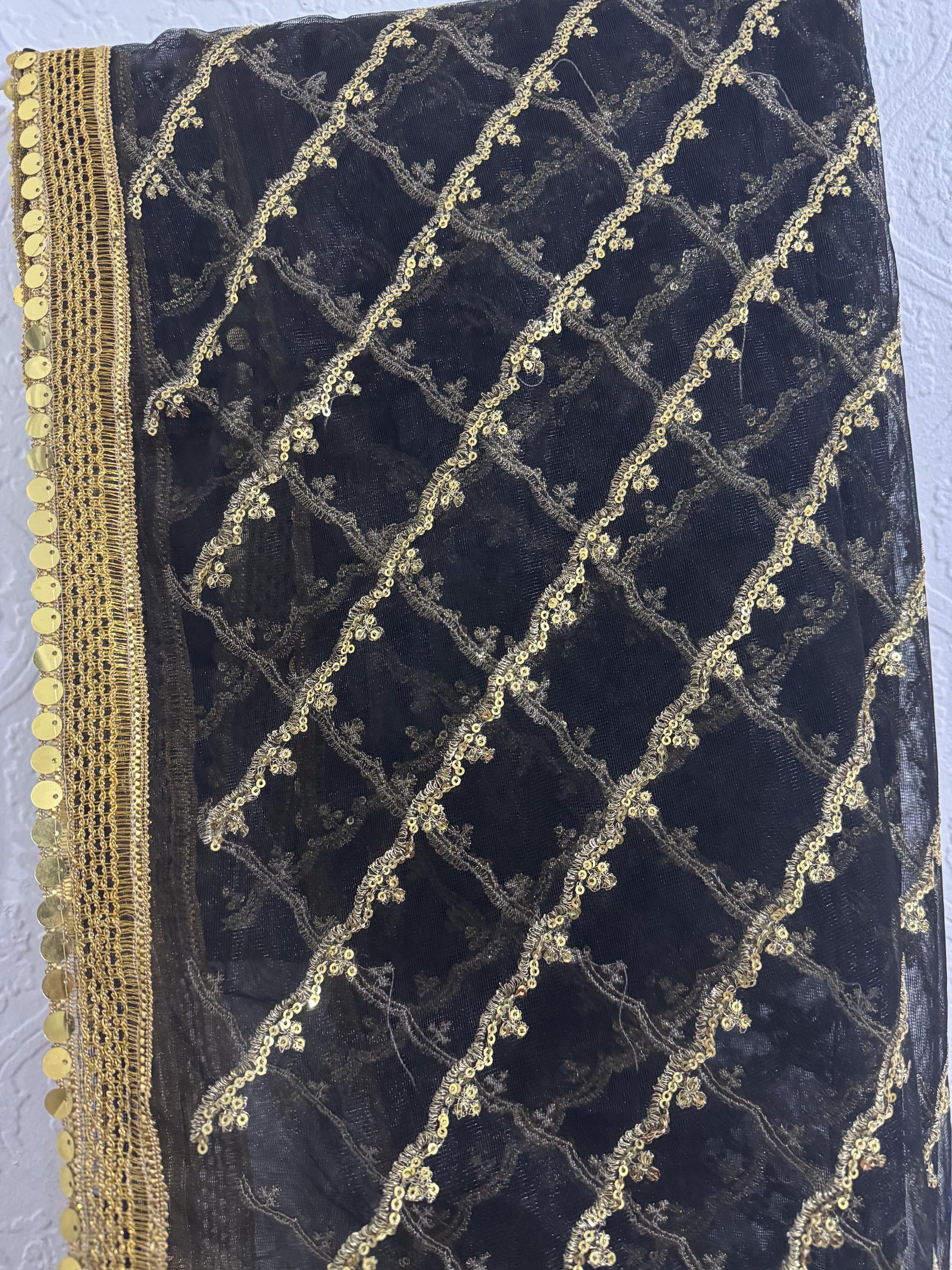 Net Fully Sequins Embroidered Dupatta Black & Gold