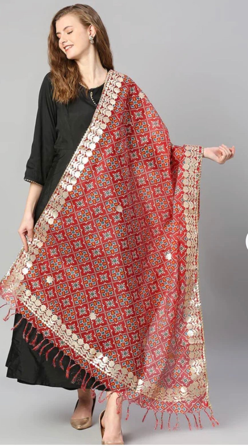 Printed Kota Cotton Dupatta With Gotta Patti Border Indian Dupatta