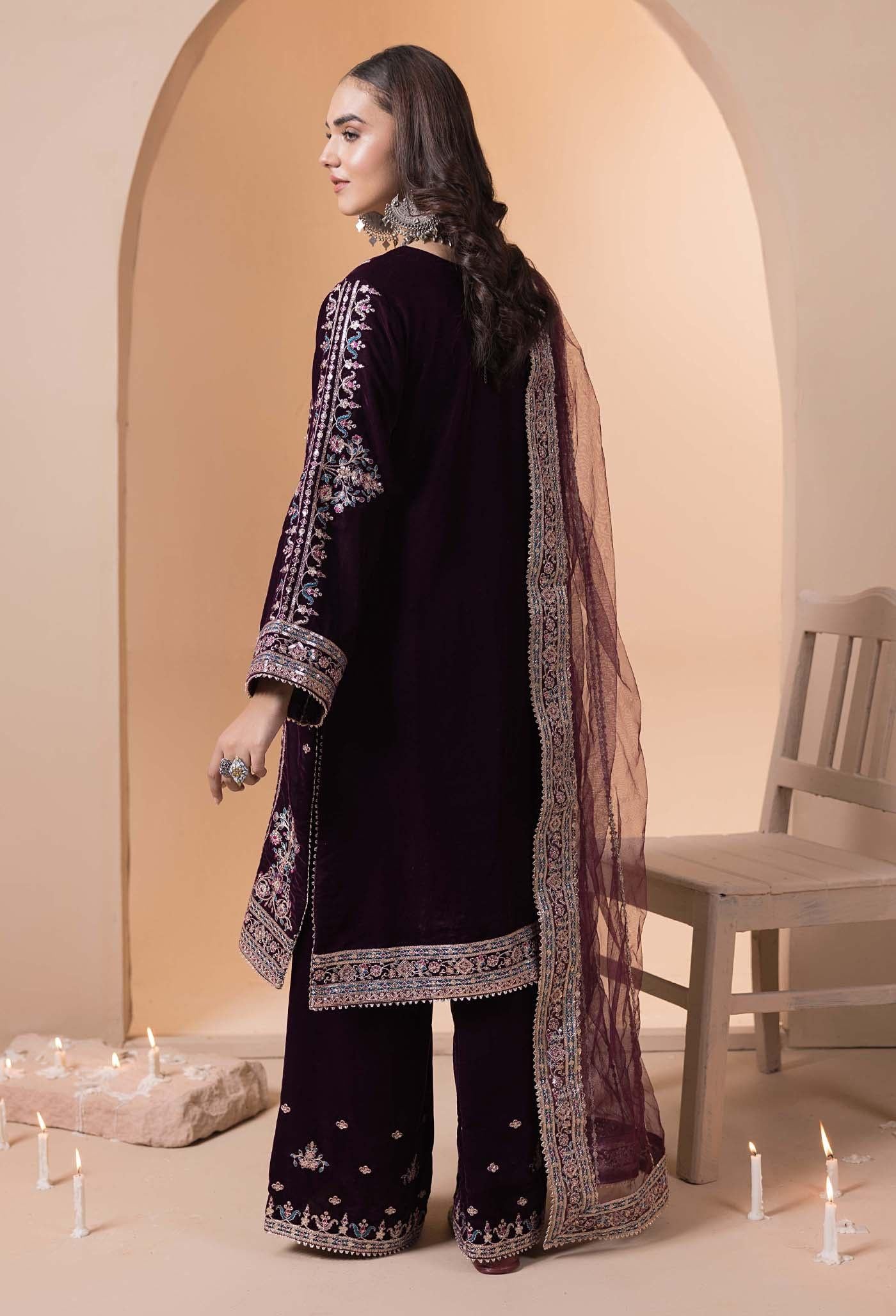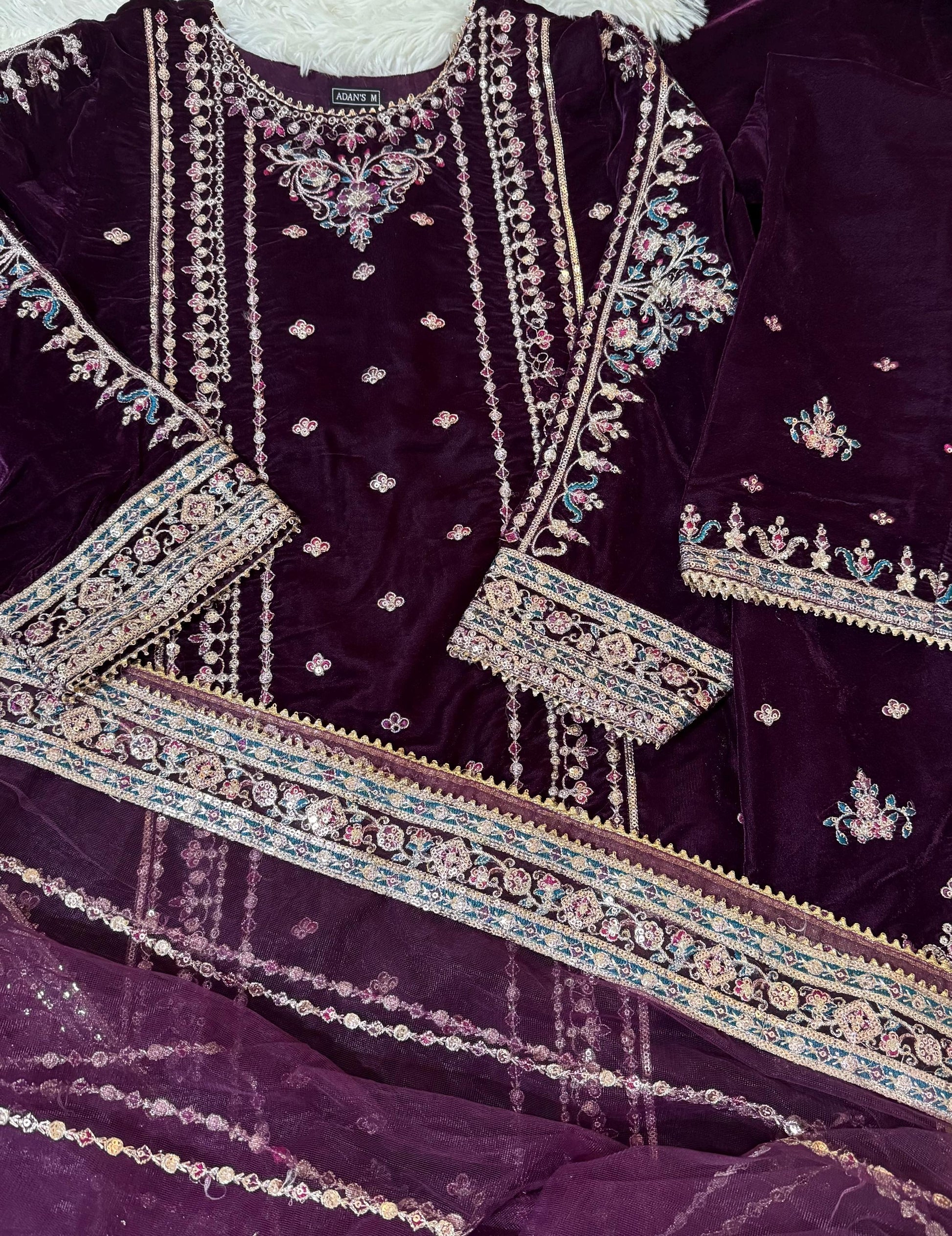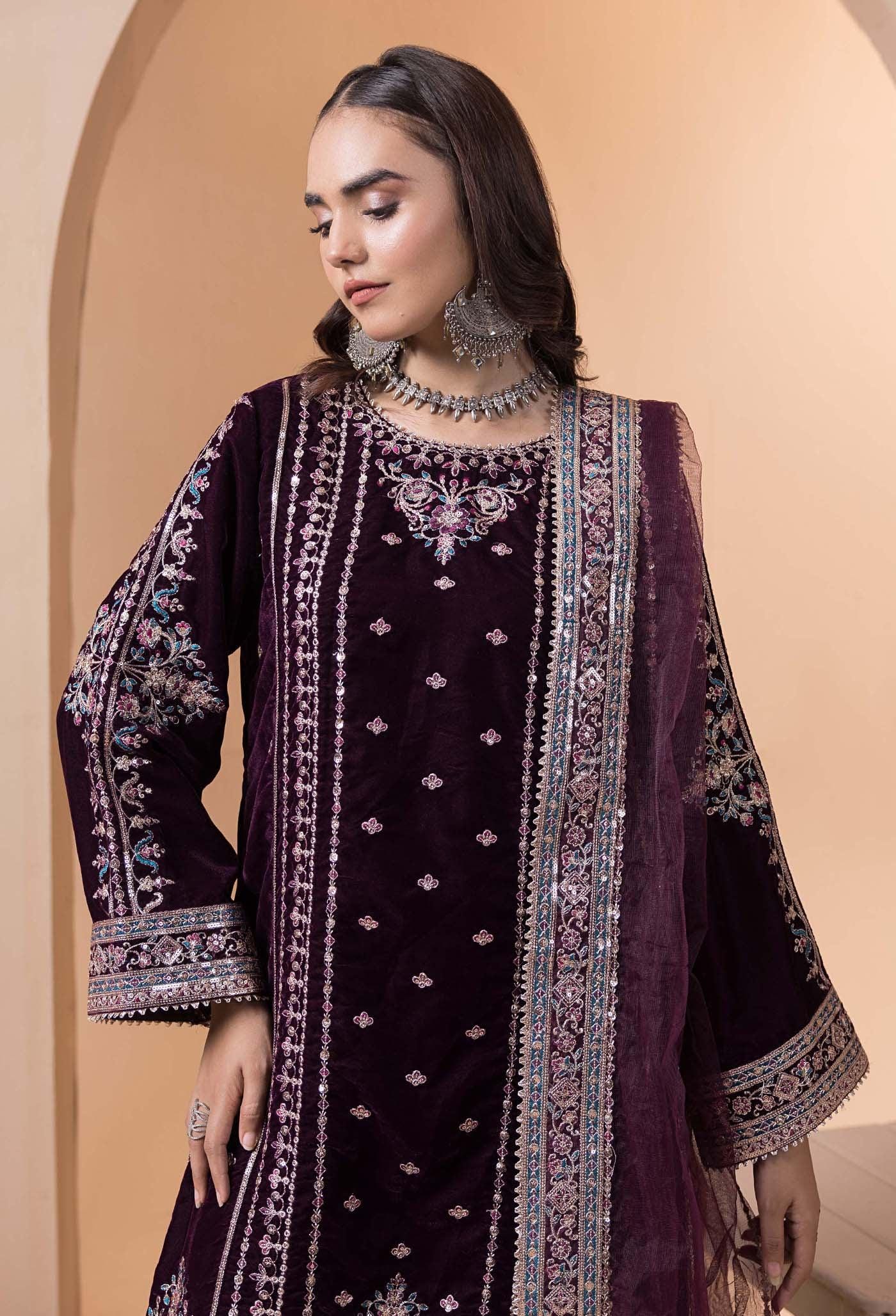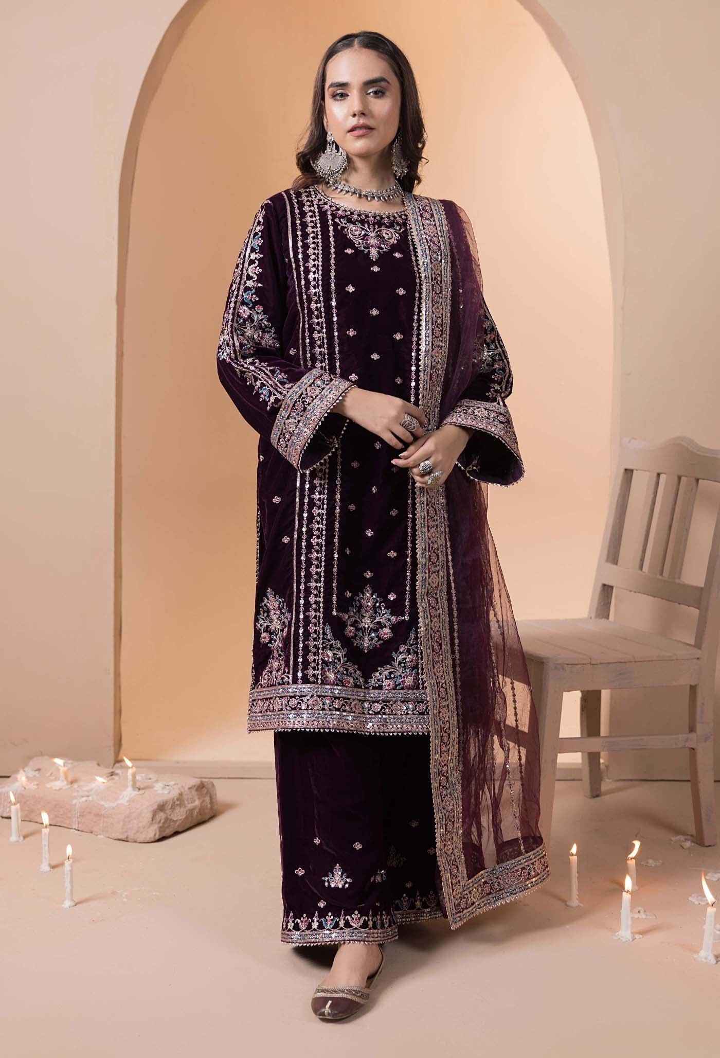 Velvet 3 Piece Embroidered Dress Pakistani Designer Ready To Wear
