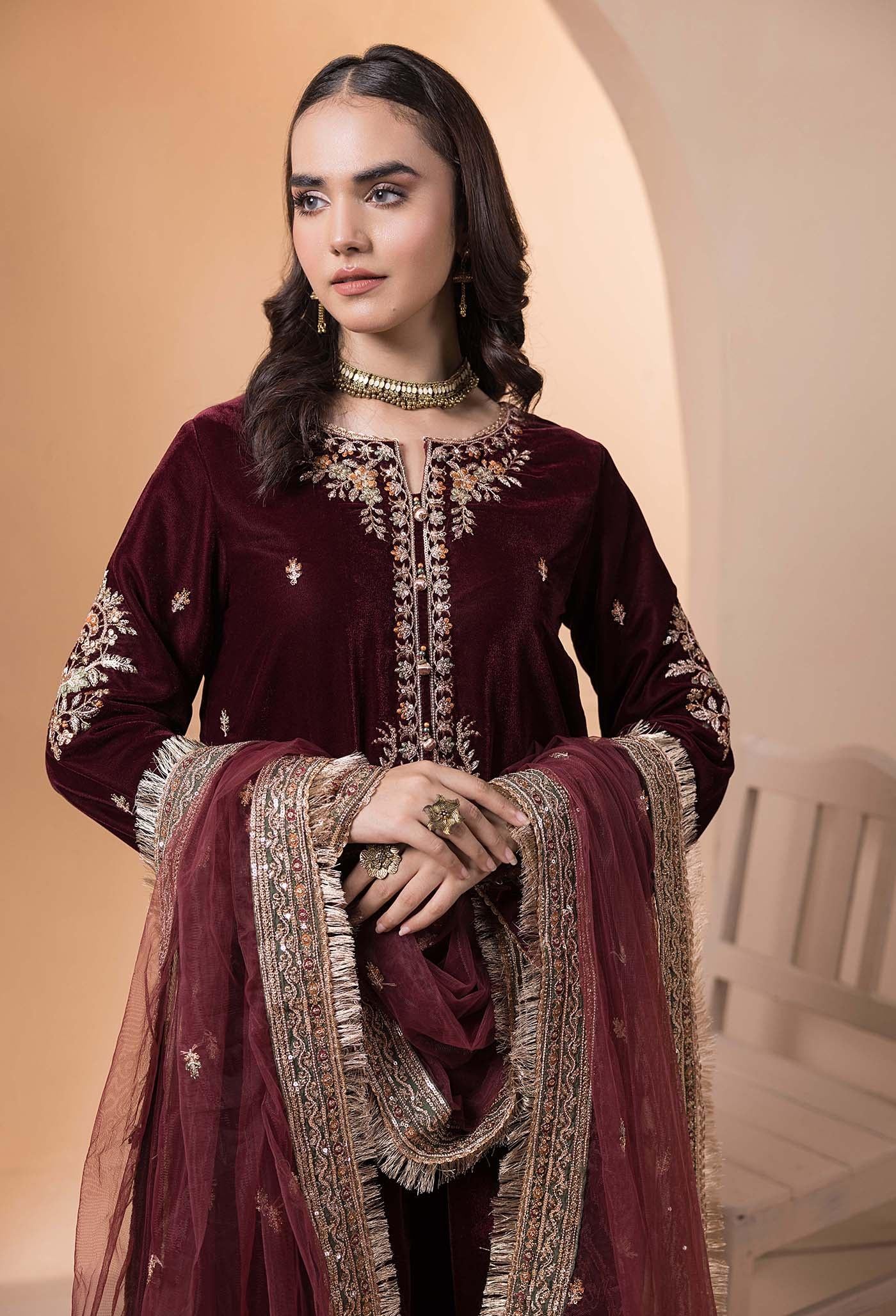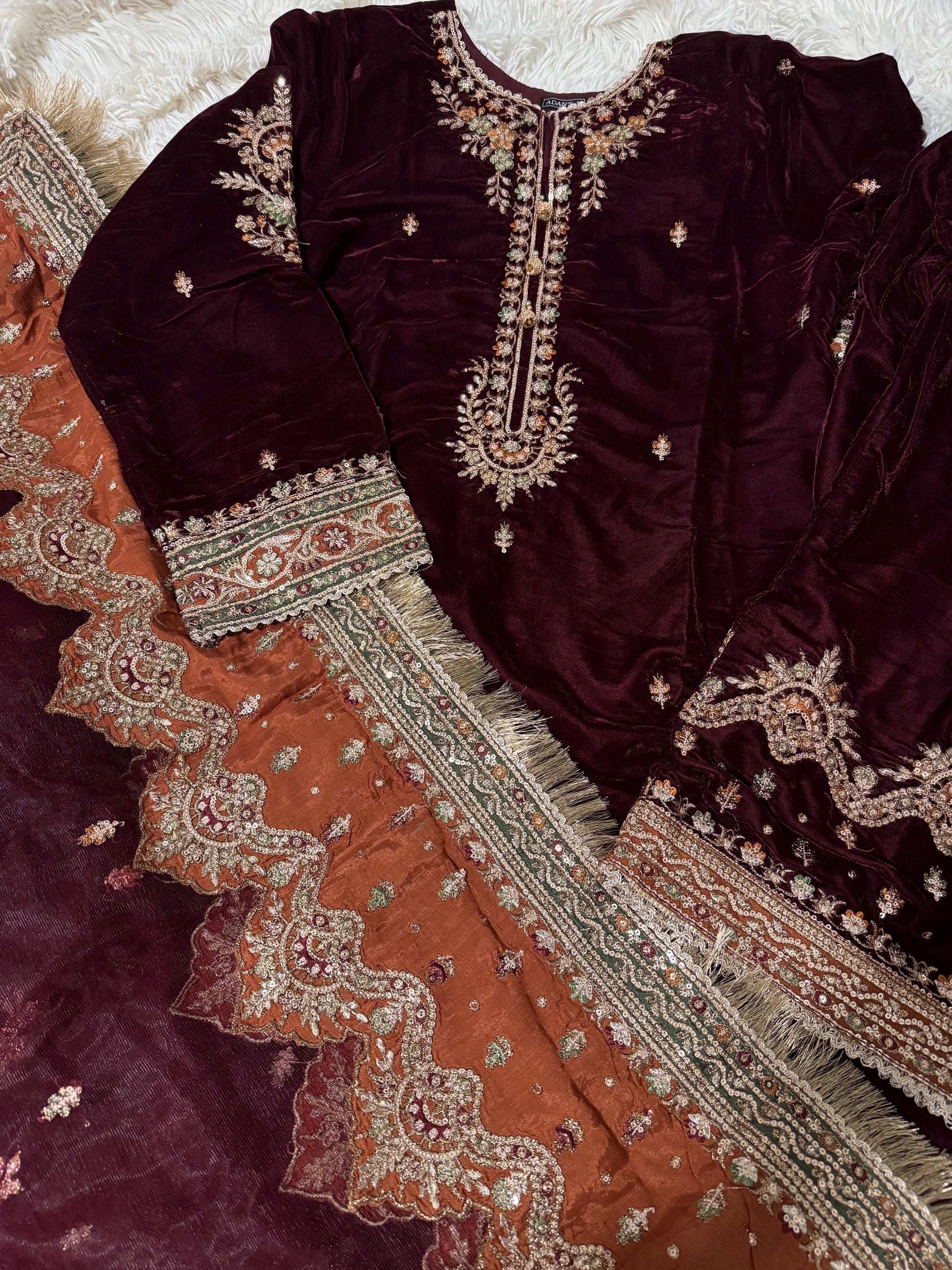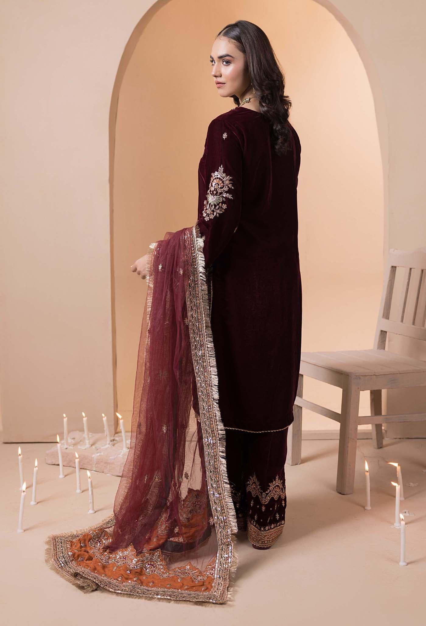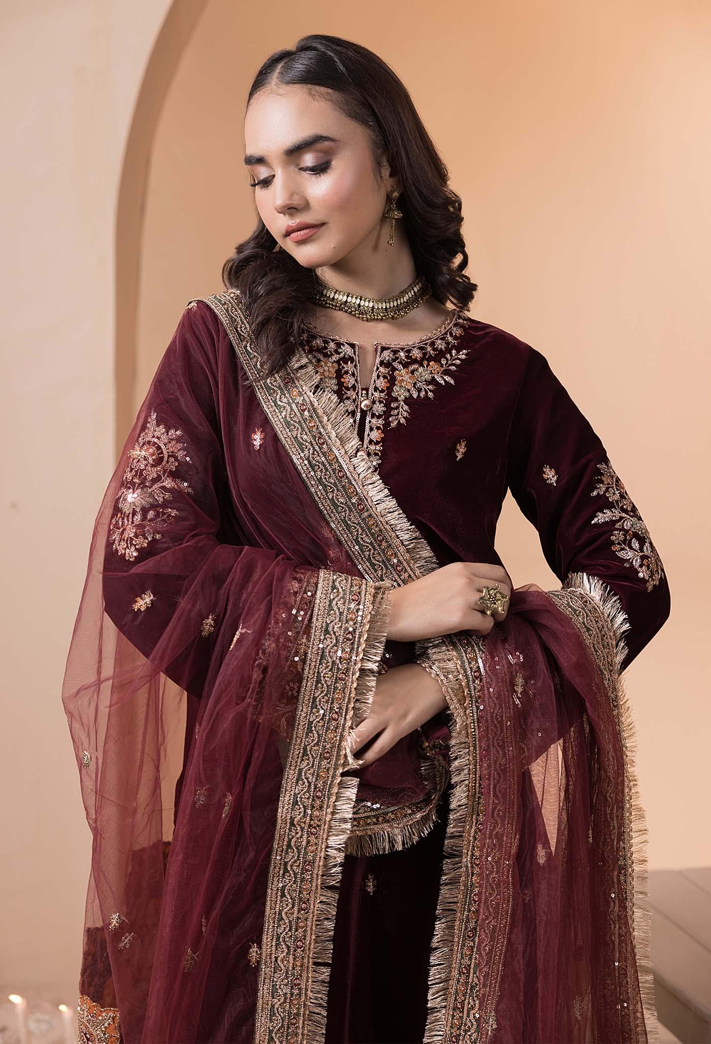 Velvet 3 Piece Embroidered Dress Pakistani Designer Ready To Wear