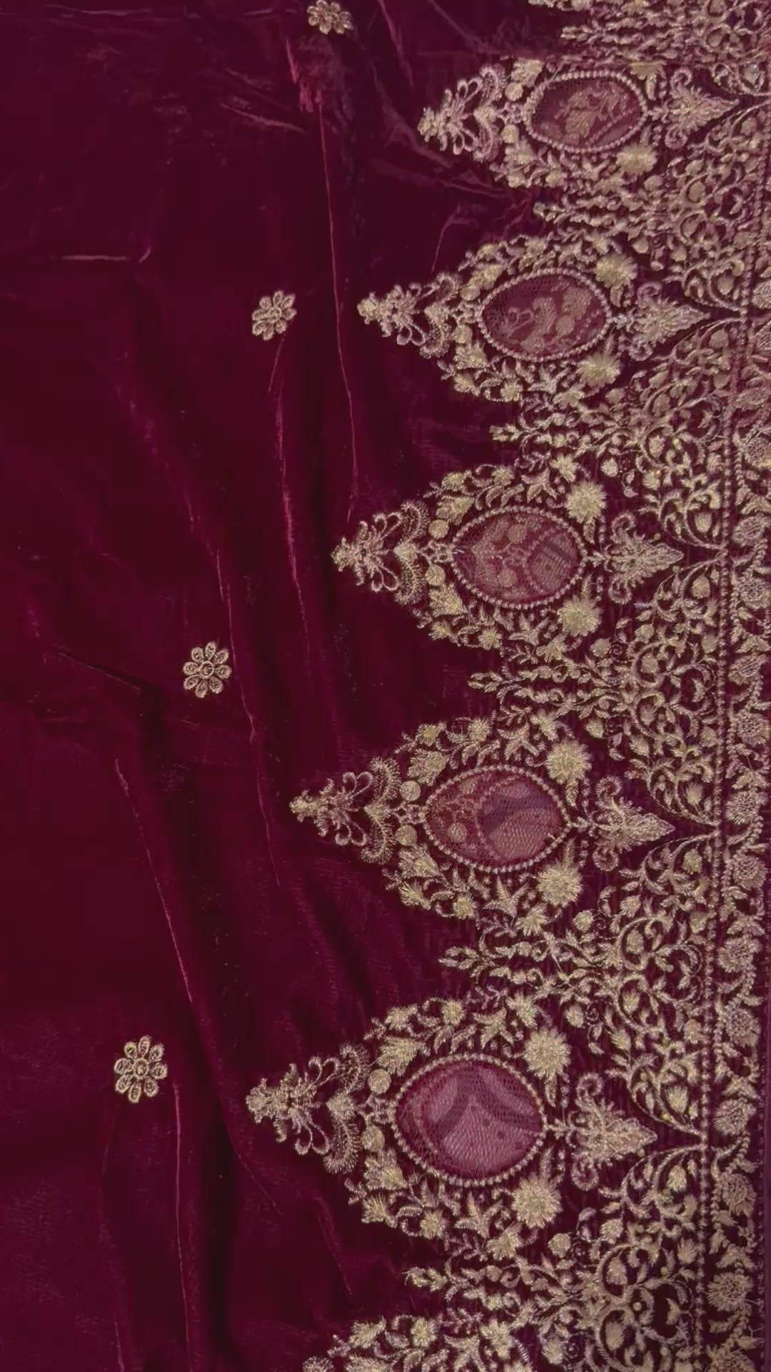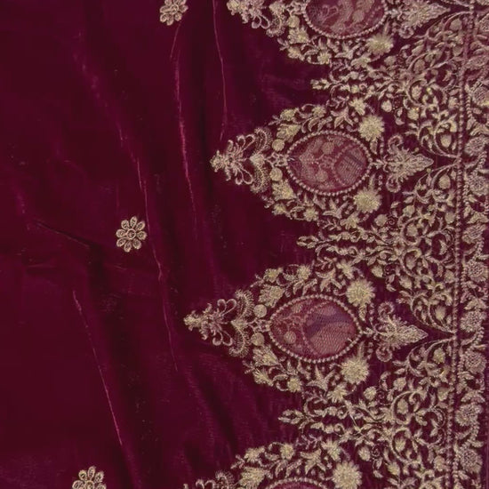 Velvet Zari Embroidered Shawl Maroon
